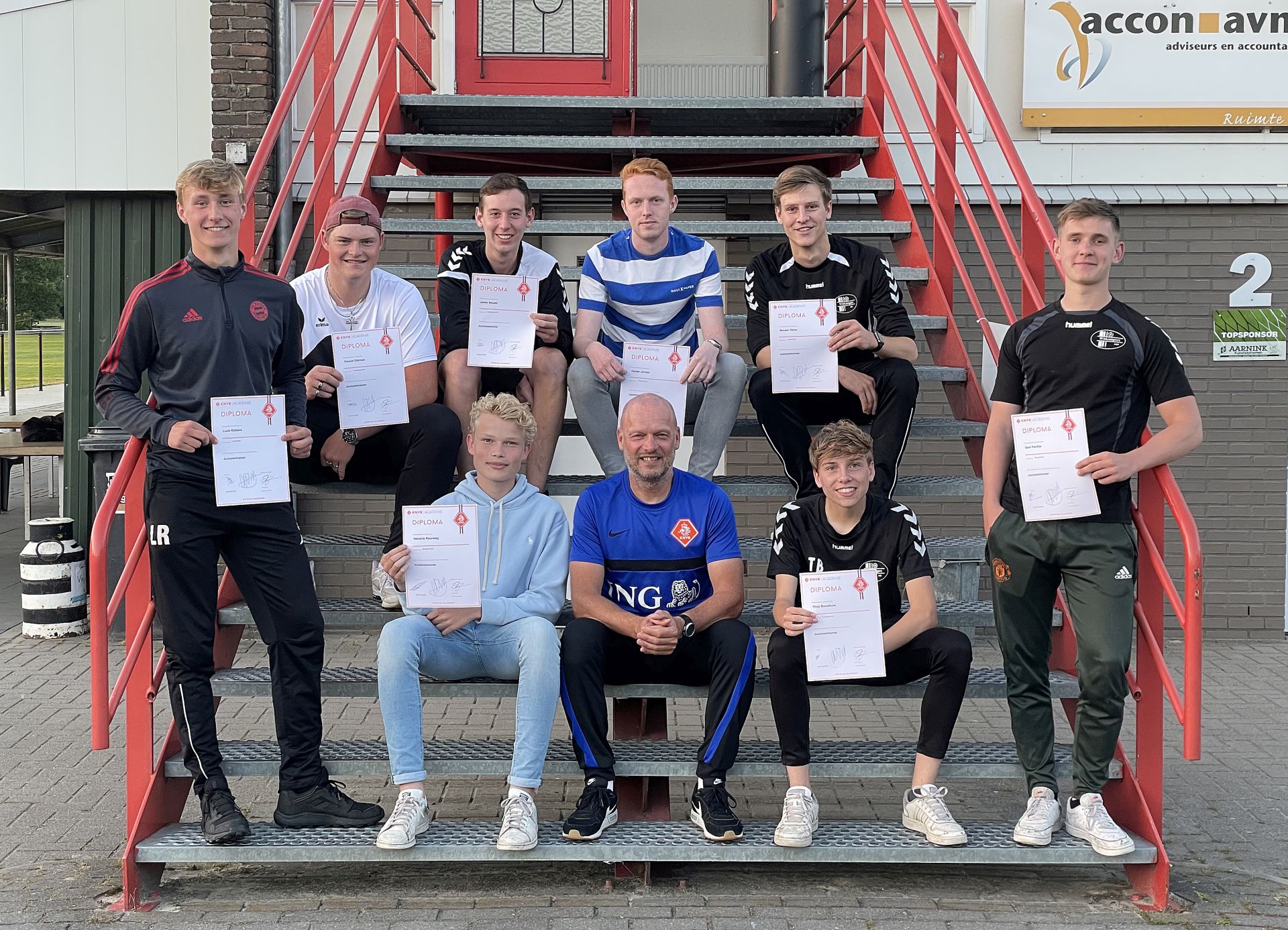 Ewoud Dijkman, Johan Beuzel, Gerjan Jansen, Wouter Okma, Luuk Ribbers, Hendrik Reurslag, Thijs Bouwhuis en Sem Pardijs zijn geslaagd voor de KNVB juniorentrainer cursus. Deze cursus werd afgelopen voorjaar bij vv Witkampers gehouden. Naast deze 8 deelnemers waren er ook deelnemers van Vios B, Sallandia, BWO en Ajax B. Cursusleider van de KNVB was Arthur Isselman, voormalig trainer van FC Zutphen. Leuk om te vermelden is dat Hendrik en Thijs nog maar 15 jaar zijn en nu al deze cursus met goed resultaat hebben gevolgd.