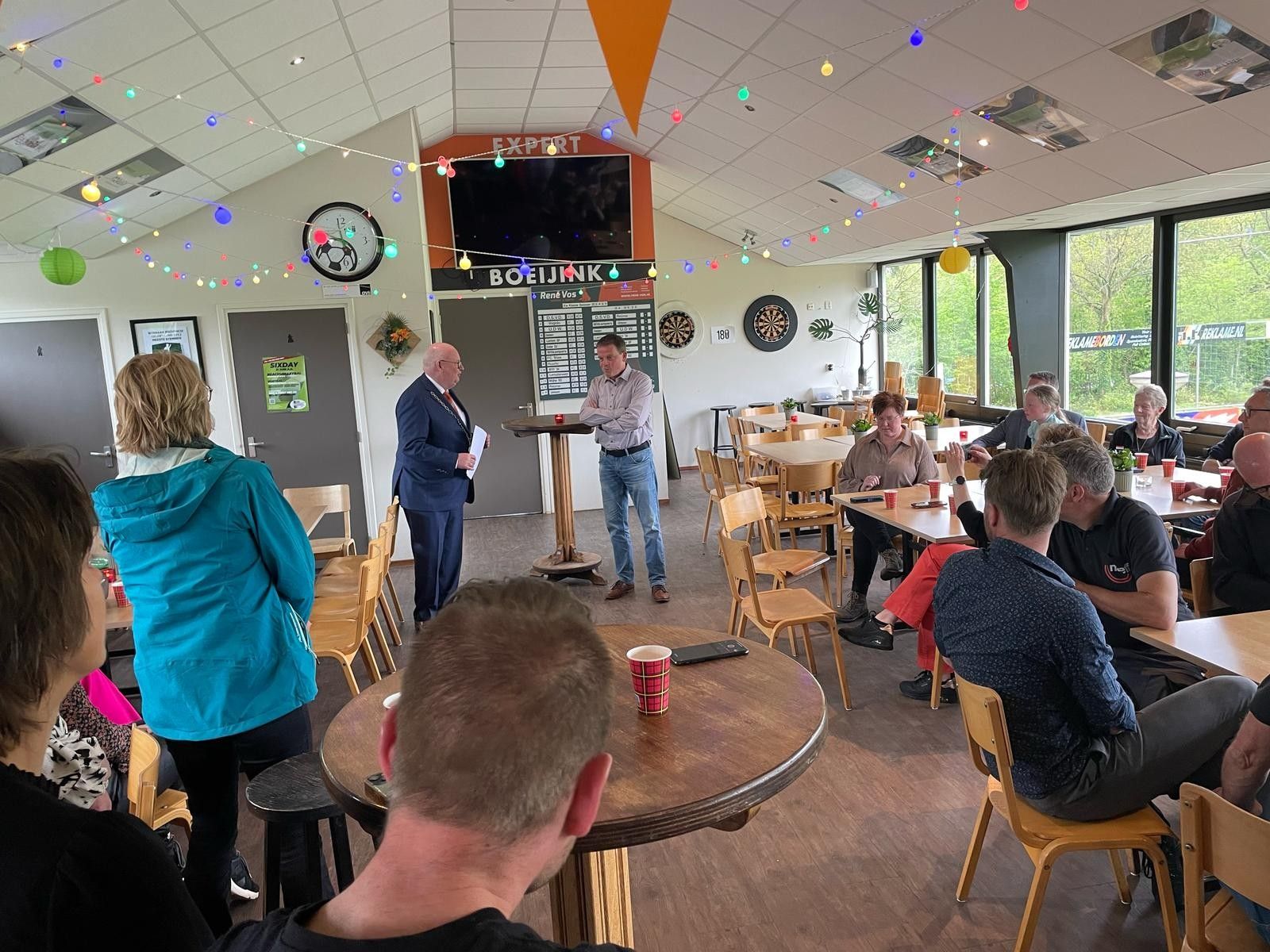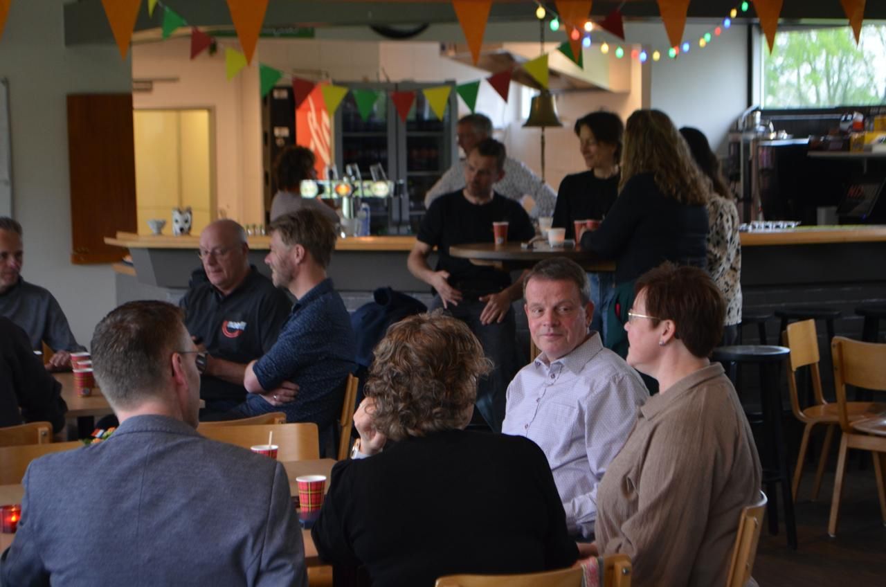 Uiteindelijk waren er enkele cadeaubonnen voor Dinand en natuurlijk bloemen voor Dinand en zijn partner Annet. Natuurlijk werd het traditionele oranjebitter niet vergeten en was er nog gelegenheid om even na te zitten.