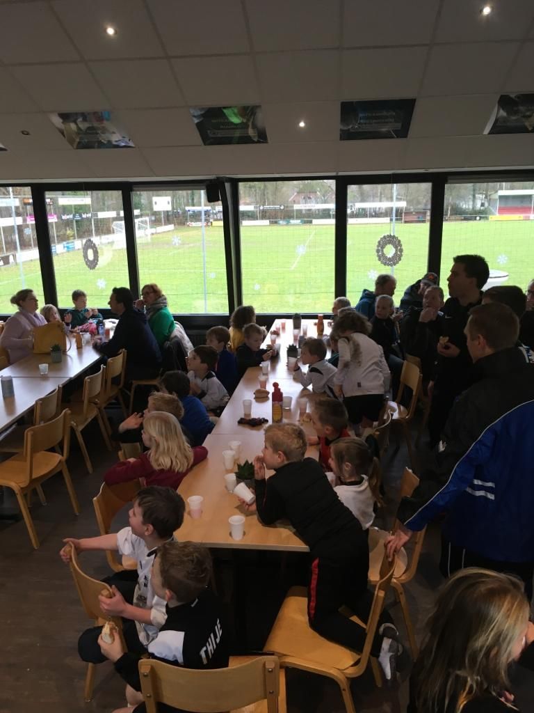 "Sport verbindt!" Een geweldig leuke eerste seizoenshelft met enthousiaste begeleiding en veel support van ouders. Op de foto is zichtbaar dat ook bij de allerkleinste Witkampertjes de nieuwe TV in de kantine goed in de smaak valt.