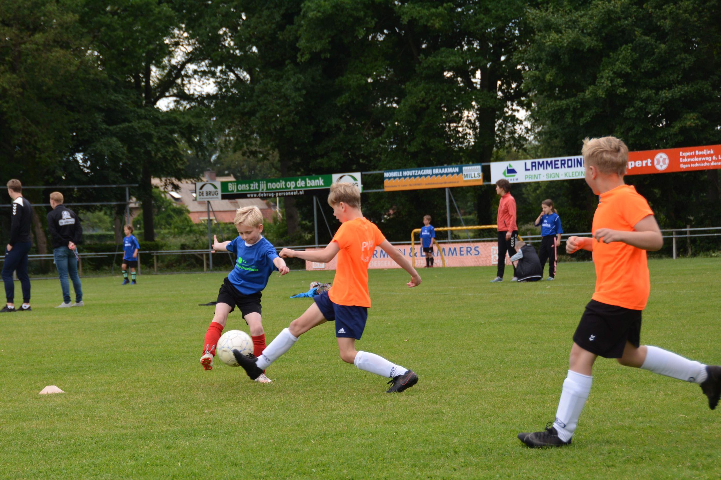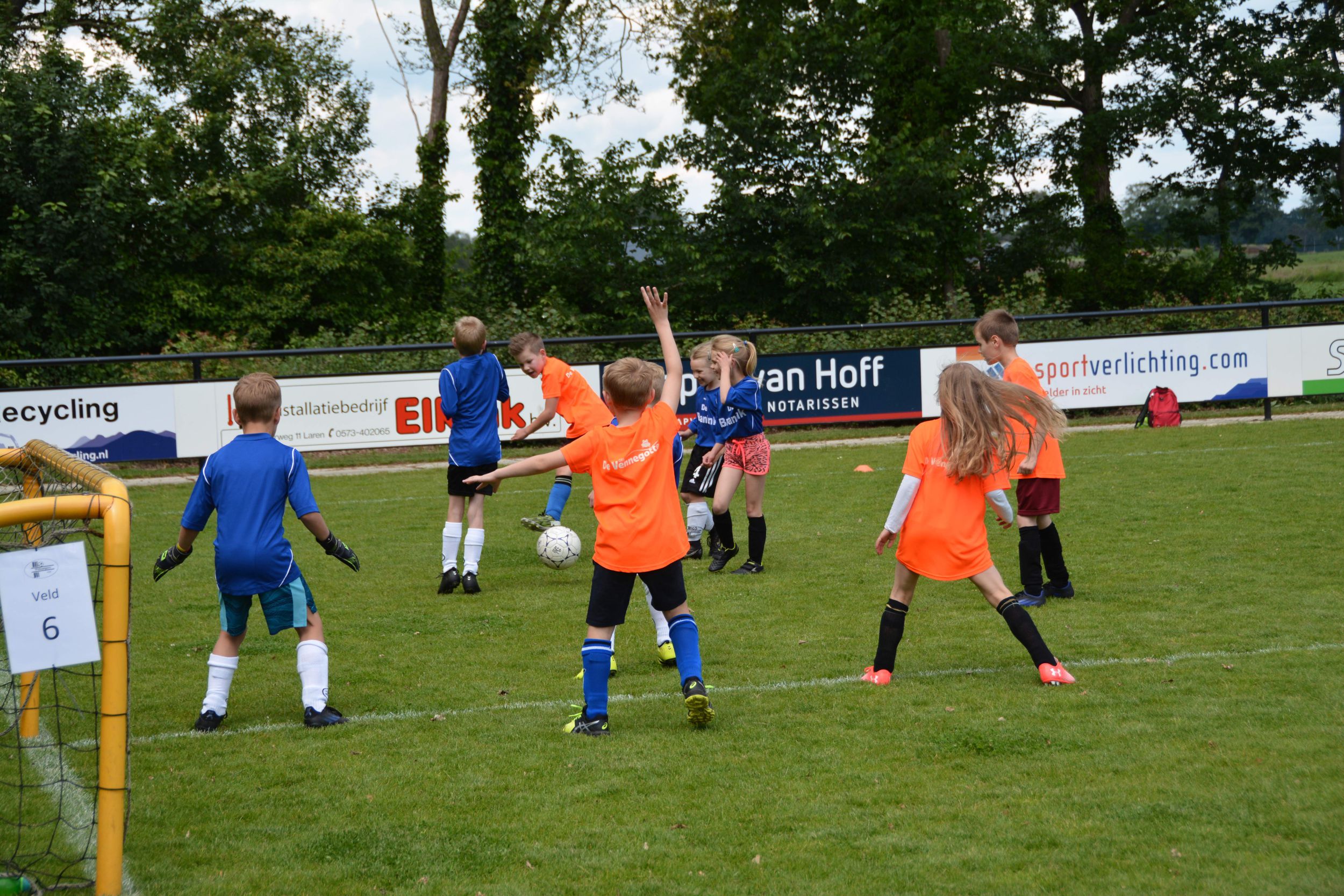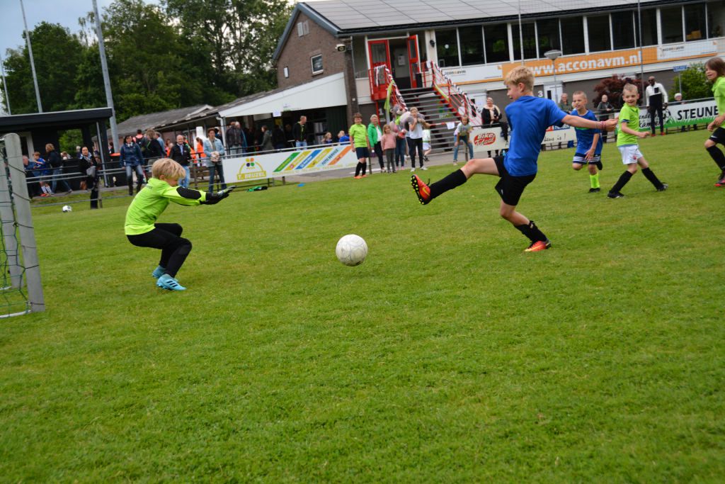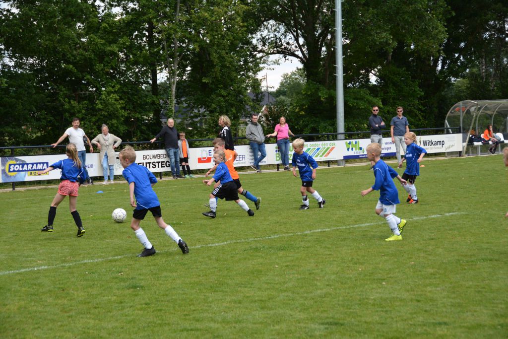 Eerst mochten om 13.30 uur de kinderen van groep 3 aan de bak. Door onweer moesten de wedstrijden even stilgelegd worden. Maar dat mocht de pret niet drukken. De kinderen gingen daarna weer vol enthousiasme het veld op. De groepen 4 en 5 volgden en het toernooi werd afgesloten met de teams van groep 6 zo rond 17.30 uur.