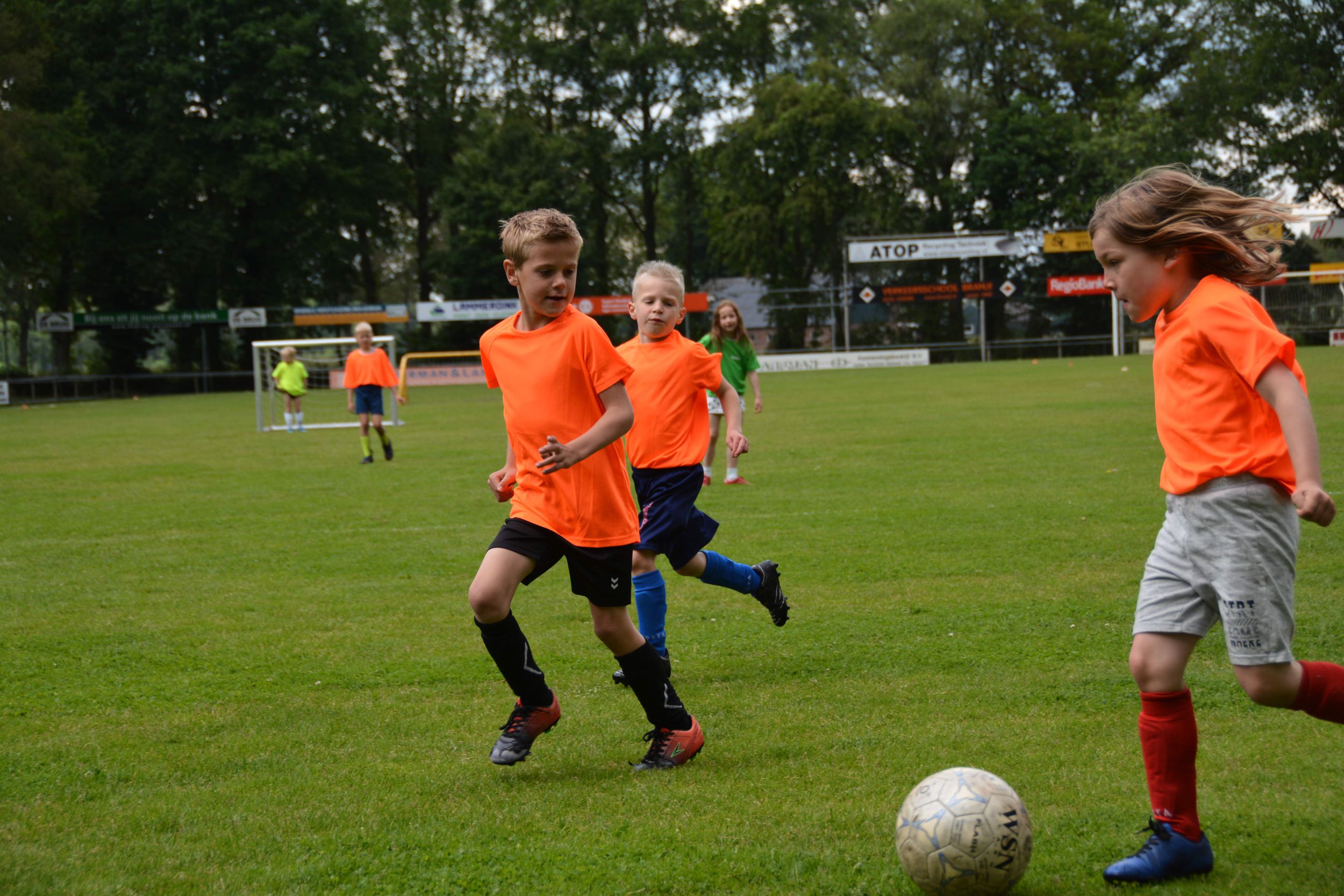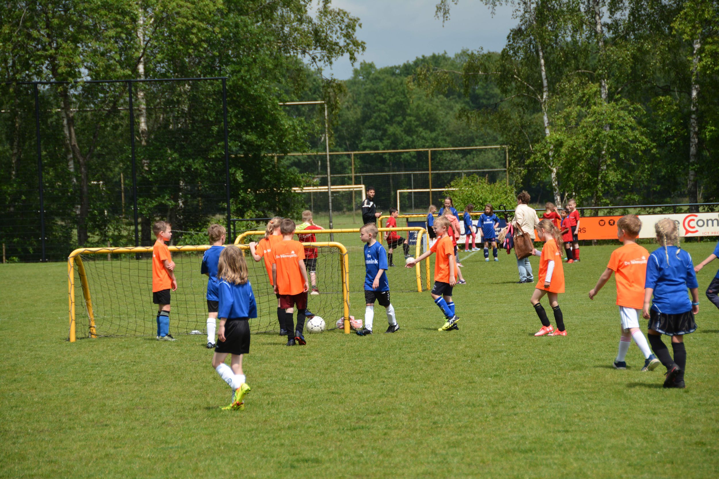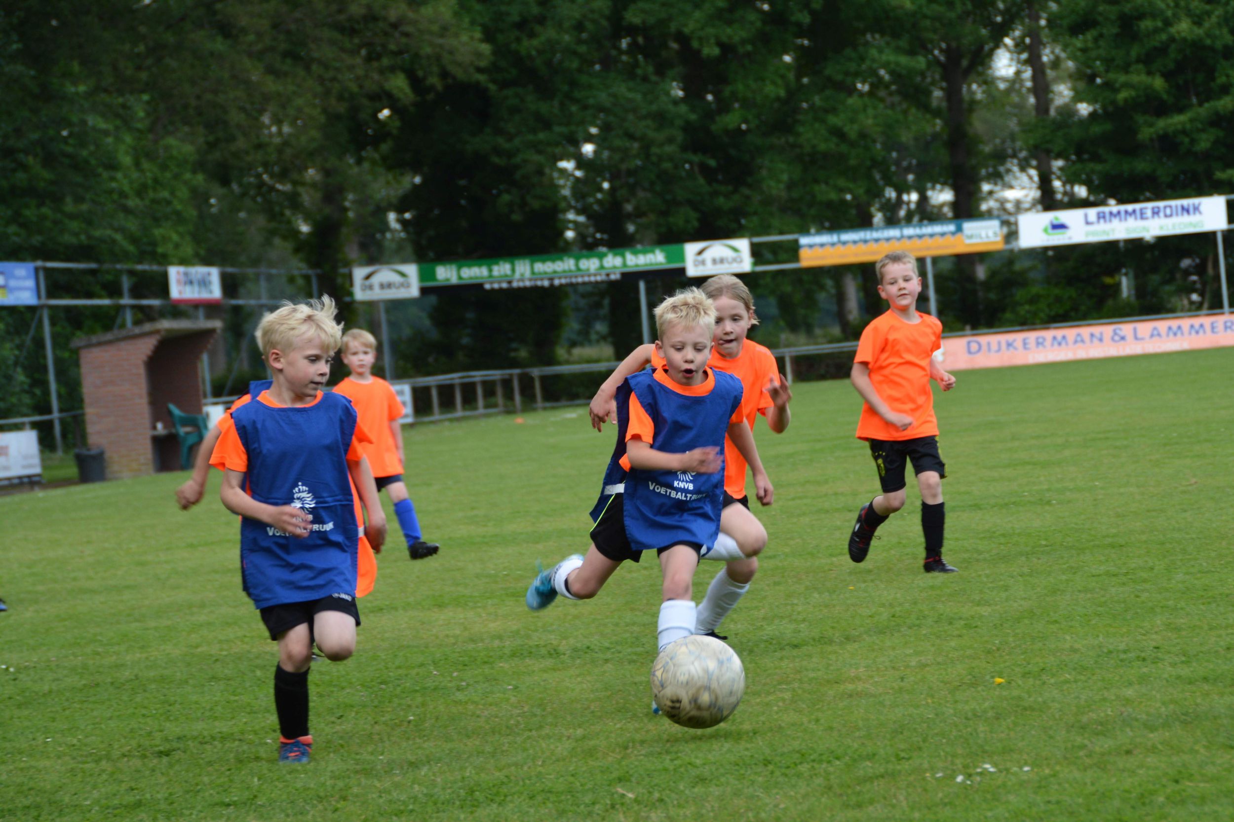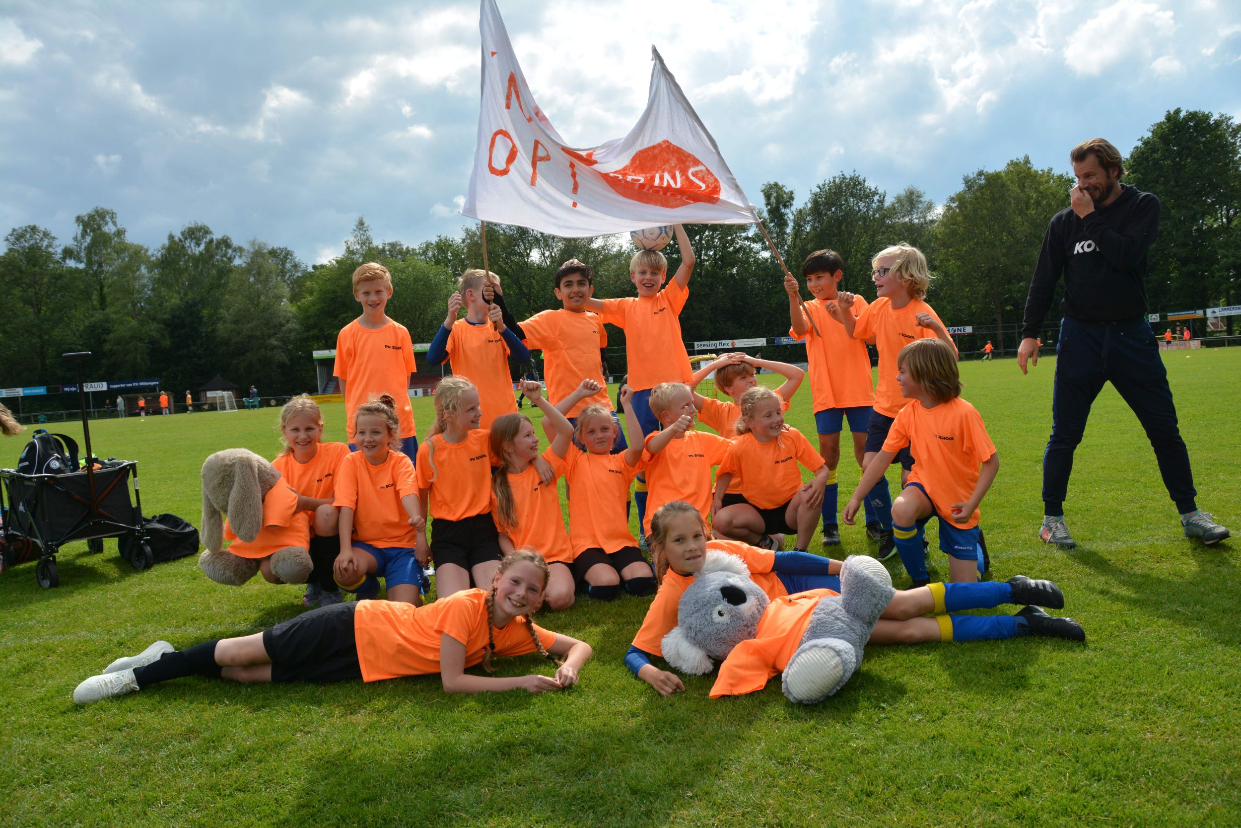 Eerst mochten om 13.30 uur de kinderen van groep 3 aan de bak. Door onweer moesten de wedstrijden even stilgelegd worden. Maar dat mocht de pret niet drukken. De kinderen gingen daarna weer vol enthousiasme het veld op. De groepen 4 en 5 volgden en het toernooi werd afgesloten met de teams van groep 6 zo rond 17.30 uur.