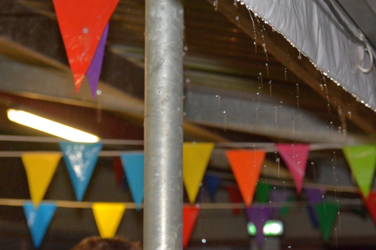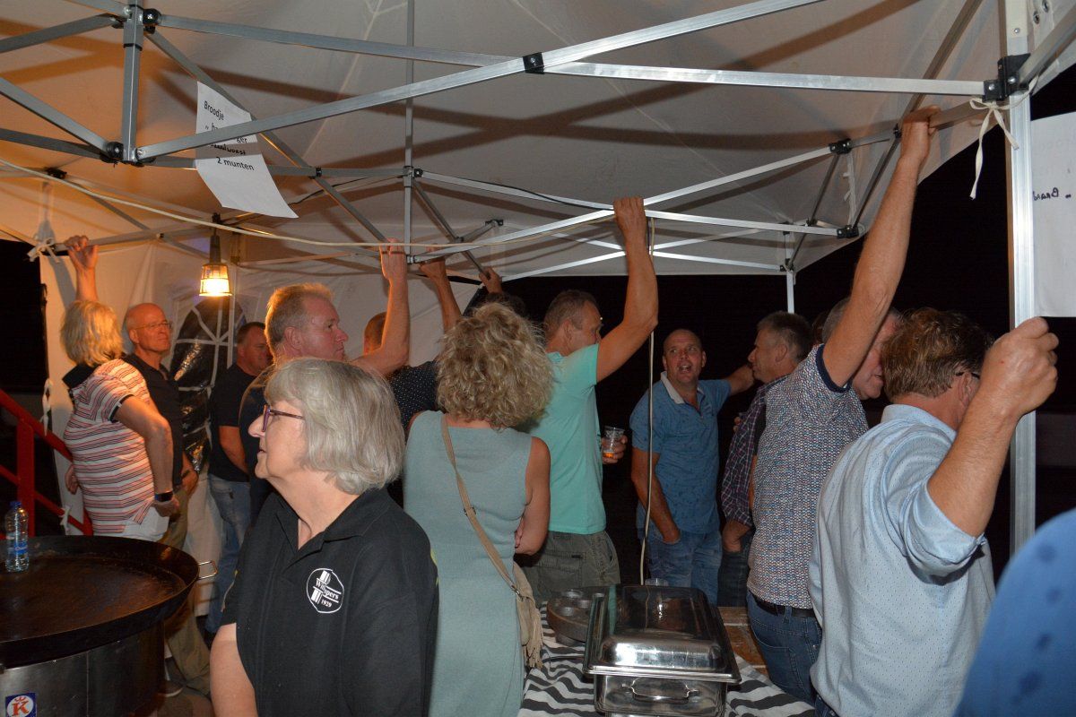 Even leek regen, onweer en wind roet in het feest te gooien, maar de partytent voor de hamburgers en braadworsten van Slager van de Pol kon met enige mankracht overeind gehouden worden.