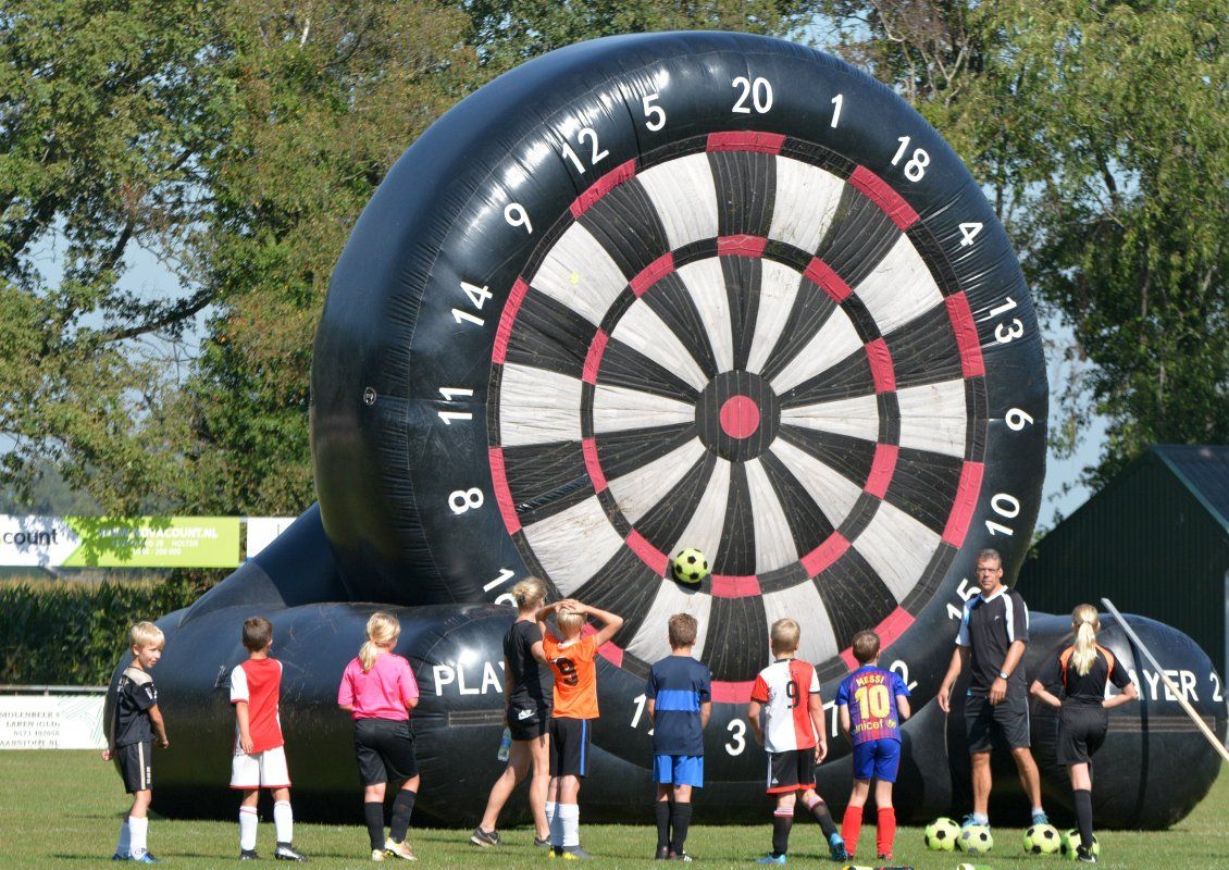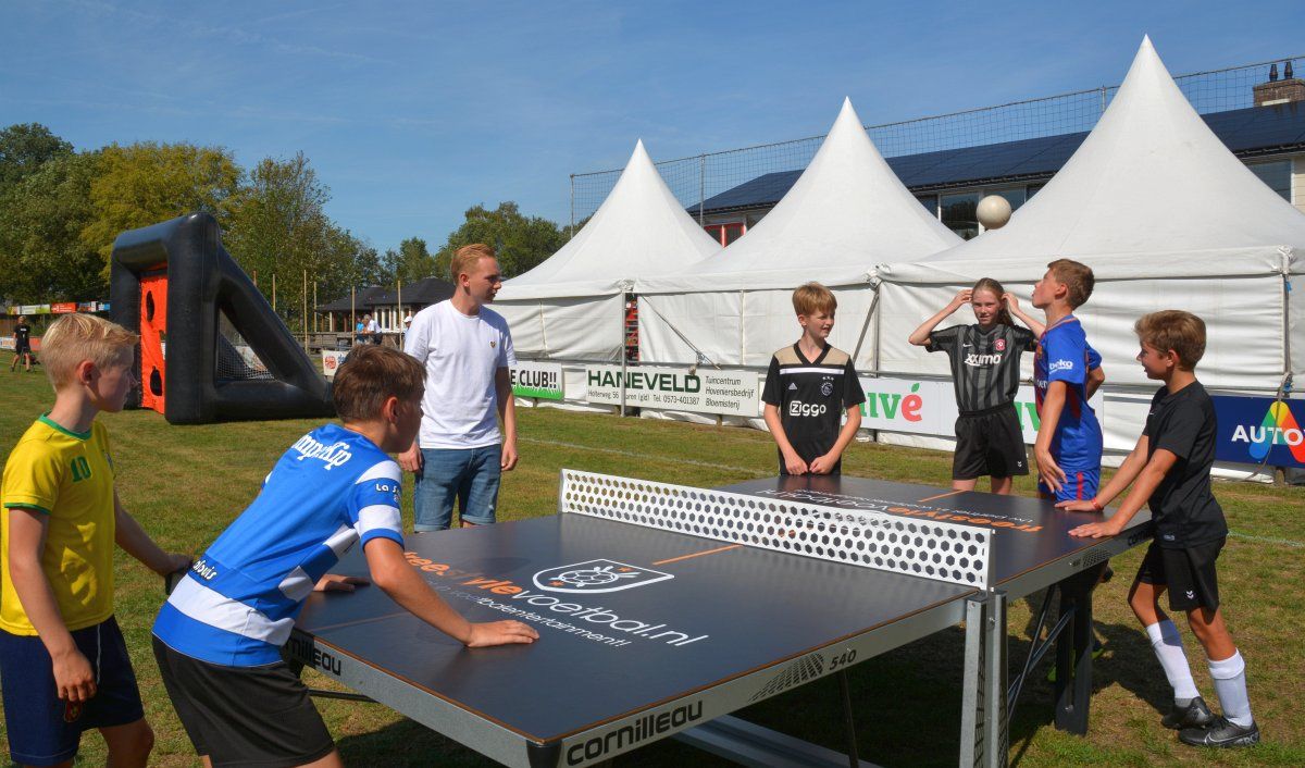 Hierna was het de beurt aan de spelers zelf om aan het circuit deel te nemen. Een greep uit de onderdelen: snelheidsmeter, kegelvoetbal, dartbordschieten, slalom door oplichtende poortjes, één tegen één in het panna veldje en een onderdeel waarbij de spelers de basistechnieken van de trucs van balkunstenaars kregen aangeleerd!