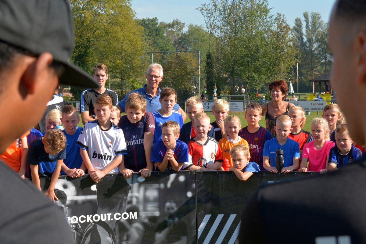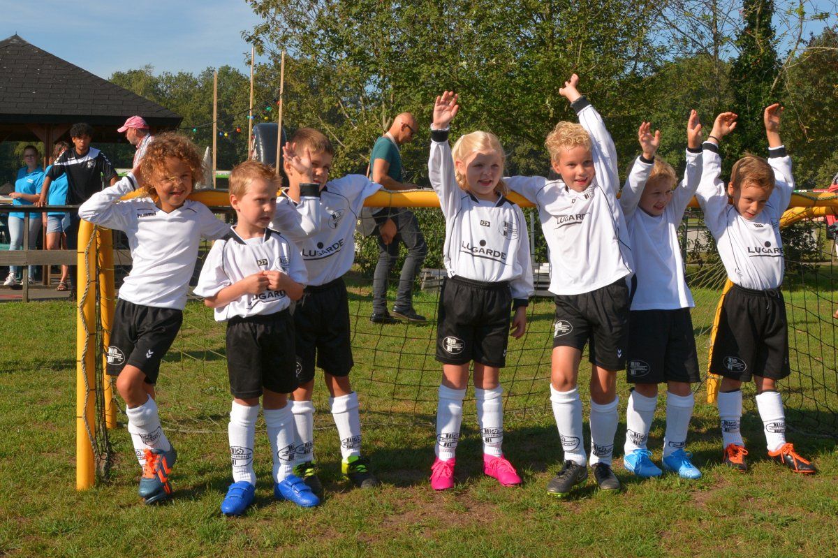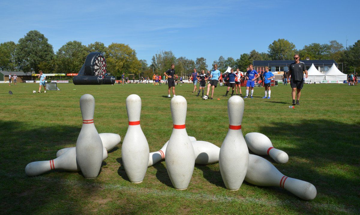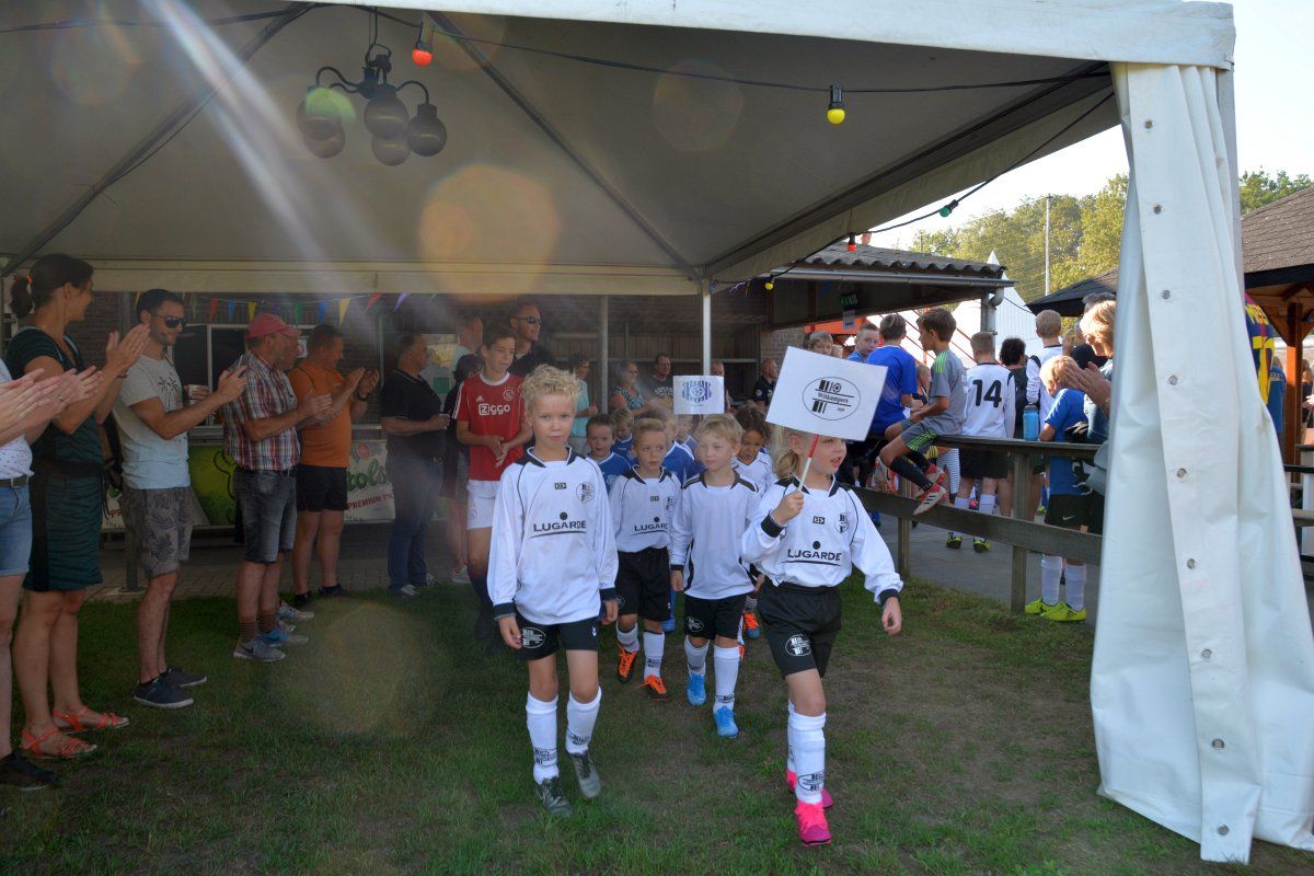 Johan mocht het verhaal niet te lang houden, want de spelers van de teams JO8 tot en met JO12 en die van het Speciaal Voetbal stonden te popelen om deel te nemen aan het eerste onderdeel van de festiviteiten. Een uitdagend en spectaculair spelcircuit van het bedrijf Freestyle Voetbal stond opgesteld op het eerste veld. Maar eerst gingen onder luid applaus en de hymne van de Champions League de minipups het tweede veld op voor een minitoernooi.