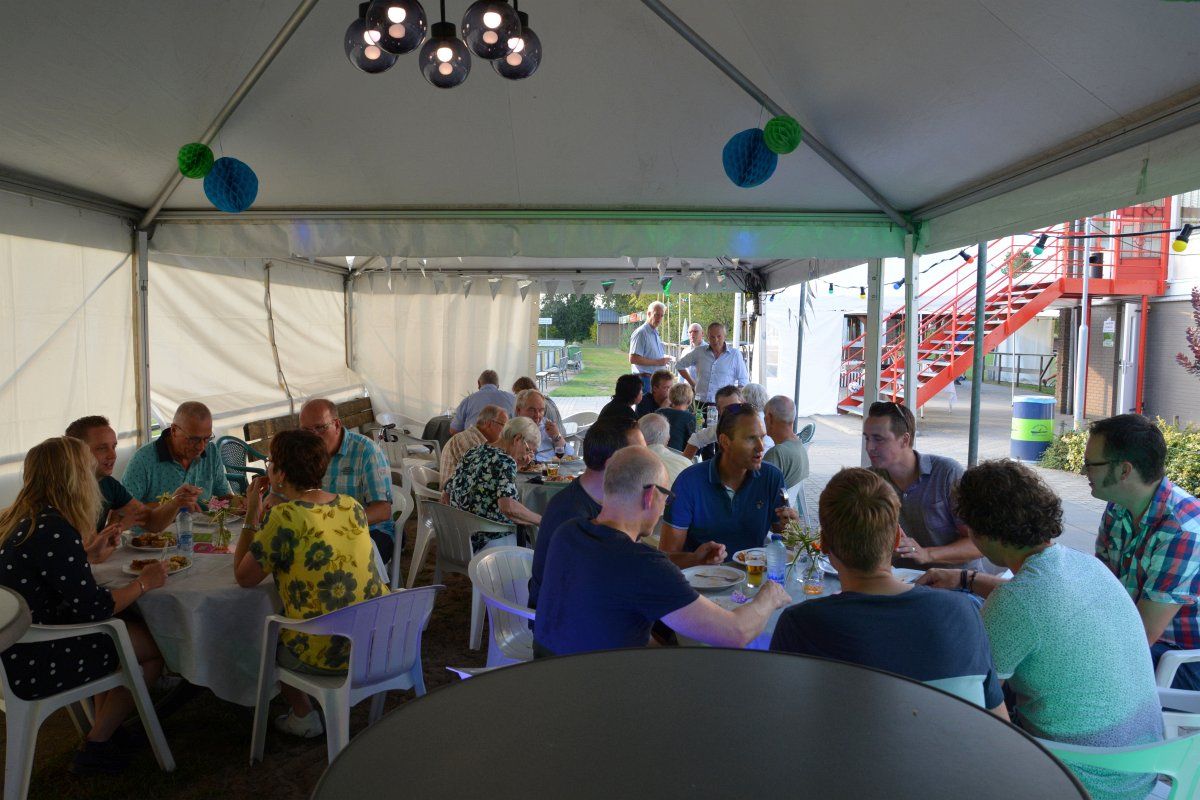 Om 18.00 uur was er een Sponsoravond georganiseerd als dank voor hun inzet en steun aan de Witkampers in de afgelopen jaren. Dit gebeuren was in de kantine, maar door de hitte ging het gezelschap snel naar beneden om in de tent iets verkoeling te zoeken.