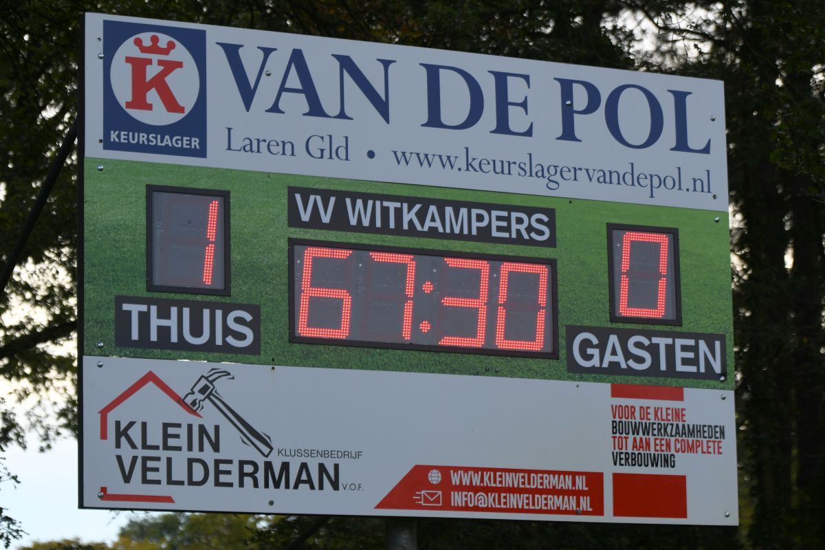 Gelukkig loopt het allemaal net een beetje anders. Eerst kan de doelman van Lemelerveld nog redding brengen op een kopbal van Remco Marsman. In de rebound is hij kansloos. Christian Beuzel schiet vol overtuiging de bal hard en hoog tegen de touwen. Voor het eerst in deze competitie heeft Witkampers vervolgens het comfort van de voorsprong. De Larenaren houden de wedstrijd prima onder controle en geven weinig weg. Lemelerveld probeert met een handvol wissels nog een slotoffensief te starten.