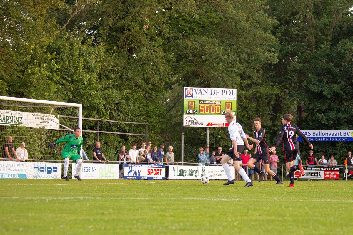 In de tweede helft krijgt het publiek, zowel uit Laren als uit Doetinchem is er veel support, de kans om bij te komen van de enerverende eerste helft. Er gebeurt namelijk niet zo gek veel. Witkampers neemt duidelijk wat gas terug en VIOD blijft aan de bal best comfortabel maar het echte gif om nog iets van de wedstrijd te maken lijkt ook wat te ontbreken bij de gasten. Het is zeker niet zo dat VIOD helemaal geen kansen krijgt, maar het lijkt er ook geen moment meer op dat het nog spannend gaat worden. Vlak voor tijd scoort Witkampers zelfs nog een vierde goal. Invaller Colin Stegeman weet Jordy Woestenenk aan te spelen en hij wandelt de 4-0 binnen voor Witkampers.