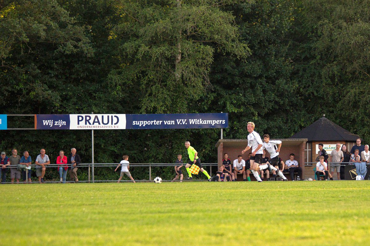 Nadat de eerste actie van Bastian Beuzel al voor wat onrust zorgt in het VIOD strafschopgebied is het bij het volgende moment wel raak. Opnieuw zorgt Bastian voor verwarring bij de tegenstander en schiet Raoul hard en hoog de 1-0 binnen. Na deze goal is Witkampers helemaal vol zelfvertrouwen en een tweede goal hangt ook in de lucht. Een mooi krullend schot van Bastian vliegt net aan de verkeerde kant van de paal naast en een kopbal van Daan Hento treft ook geen doel. Tussen minuut 34 en 37 zorgt Witkampers voor een nog ruimere voorsprong. Allereerst is het de beurt aan Remco Marsman. Binnen het zestien meter gebied krijgt hij de ruimte voor een bekeken schot en heel mooi beheerst schuift hij de 2-0 binnen. Daarna is het feest compleet als Bastian Beuzel aan de zijkant van het veld keihard wordt aangespeeld, met de buitenkant van de voet de bal aanneemt en zijn tegenstander dolt. De voorzet die volgt komt via Daan Hento bij Jordy Woestenenk terecht die zorgt voor de 3-0.