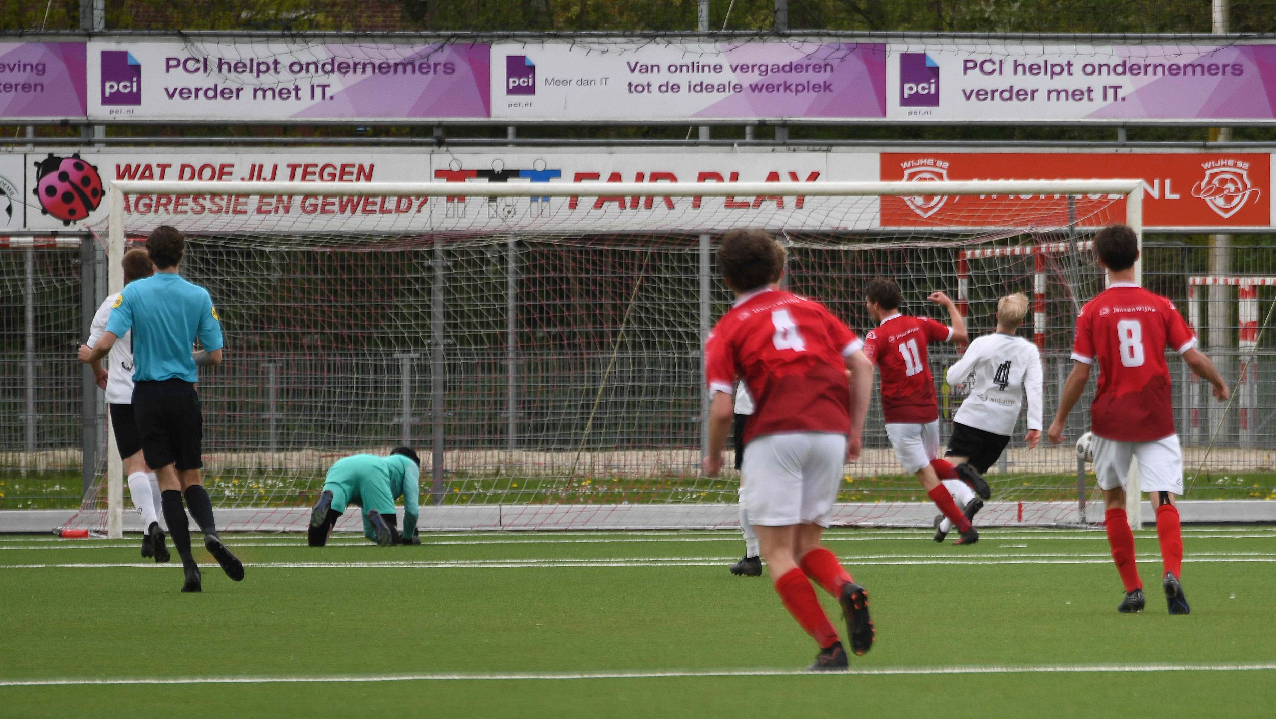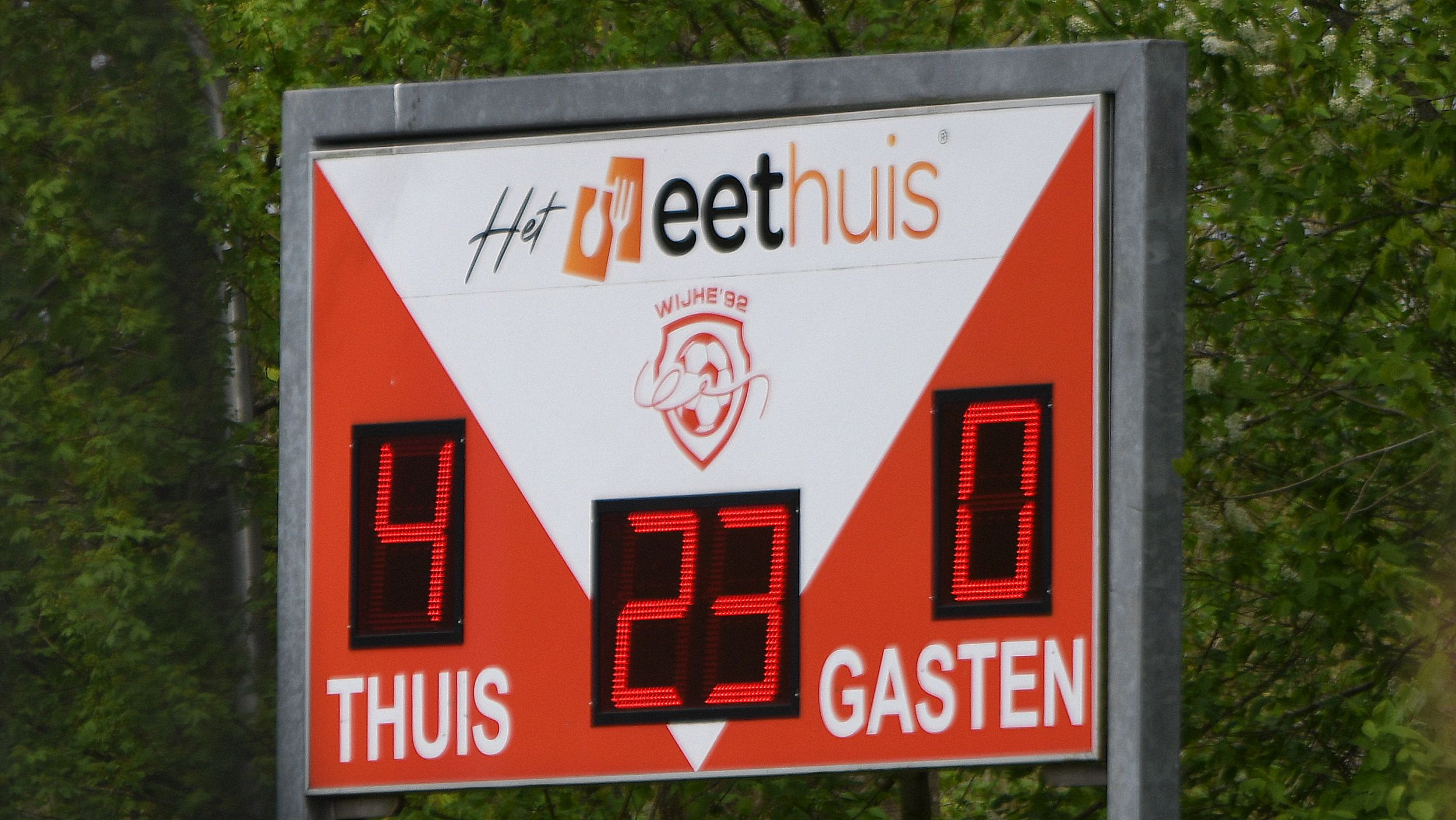 Het goede gevoel verdween echter al snel. Bij aankomst bleek de wedstrijdkleding in Laren achtergebleven, waardoor de wedstrijd een kwartier later begon. Of dat in de hoofden meespeelde was onduidelijk, maar Witkampers speelde een dramatisch 1e halfuur tegen degradatiekandidaat Wijhe. Na 23 minuten stond de 4-0 voor de thuisclub op de borden. Vooral Jordy van Munster liet van zich spreken met drie goals met een aantal mooie doelpunten. Wijhe maakte goed gebruik van de slechte organisatie binnen ons team. We schrijven een makkelijk ingekopt doelpunt vanuit een corner in de 8e minuut. In de 14e minuut was het al 2-0 door een simpele passeerbeweging door de centrale man bij Wijhe. Ook bij de doelpunten in de 19e en 23e minuut zag het er bij Witkampers niet goed uit. Ruststand 4-0. Duidelijk verhaal.