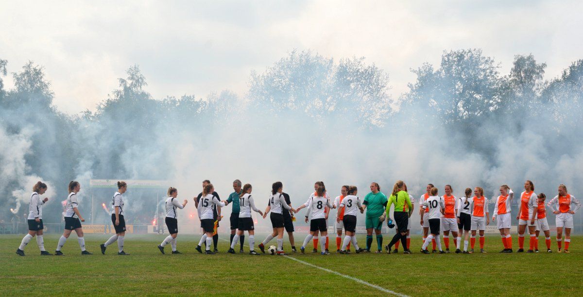 Om 14.00 uur werd er afgetrapt. In de eerste helft waren wij over het algemeen de bovenliggende partij maar we kwamen moeizaam tot echte kansen. Door slordigheden aan de bal en waarschijnlijk ook een beetje spanning konden we niet ons eigen spel maken. Limmen komt daarentegen met een counter tot de 0-1. Niet veel later is het rust en gaan we de kleedkamer in. Kort na rust wordt Elisa na een goede actie gevloerd in het zestien meter gebied en wordt er gefloten voor een penalty. Helaas wordt deze ingeschoten penalty gestopt door de keeper. Niet veel later krijgt Limmen een grote kans op de 0-2, maar deze bal belandde op de paal. Door het gezang en trommels langs de lijn kregen we extra motivatie om nog een stapje extra te doen, waardoor in de 60e minuut Suze zich geen moment bedacht en met een afstandsschot de verlossende 1-1 binnen wist te schieten. Hierna waren de dames uit Laren nog op zoek naar een tweede doelpunt, echter wisten ze ook dat het belangrijk was om geen tegendoelpunt meer te krijgen. Uiteindelijk floot scheidsrechter Wippo af voor het einde van de wedstrijd.