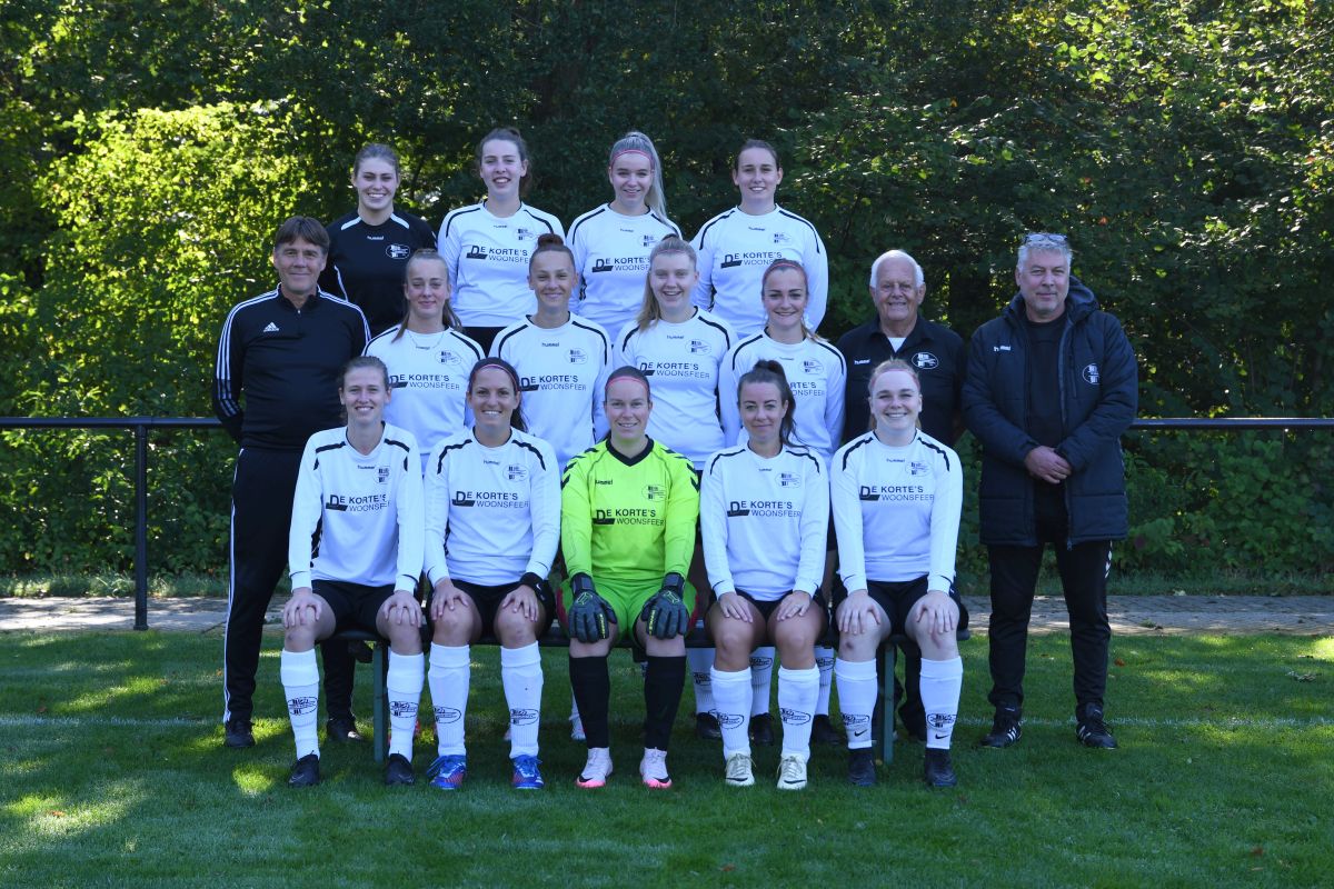 Woezik mag de aftrap nemen en zoekt meteen de aanval. Ze stormen met 6 man vooruit en creëren direct de 1e kans. Gelukkig vliegt de bal naast het doel. We zijn gewaarschuwd. Vanaf dat moment pakken we de controle en we kunnen mekaar makkelijk vinden. Na 5 minuten weet Daphne de eerste goal al te maken. Ze krijgt de bal op het middenveld aangespeeld en neemt de bal handig mee. Ze knalt de bal netjes langs de keeper het netje in. Na de goal verliezen we de controle bijna niet meer. We spelen dominant, alleen de 2-0 ontbreekt nog. Bodine en Linsey worden vaak gezocht op de flanken. Zo komen ze beide een aantal keer knap langs hun tegenstander. Helaas ontbreekt het aan scherpte voor de goal. Veel ballen vliegen naast of over het goal. Ook de keeper van Woezik staat goed op te letten en plukt er een aantal ballen mooi uit. Vlak voor rust krijgt Denice de bal vlak buiten de 16. De bal ligt voor haar linkervoet, maar ze haalt toch knap uit. Met een boogje weet ze de bal in de kruising te mikken. Eindelijk is de bevrijdende 2-0 gevallen. Je zou zeggen dat we vanaf dat moment de score moeten uitbreiden. Niets is minder waar, want Woezik weet via een counter de 2-1 binnen te schieten. Een van de weinige aanvallen die Woezik weet te creëren valt binnen. Onnodig, maar we hebben nog een helft om de score uit te breiden en de 3 punten in Laren te houden.