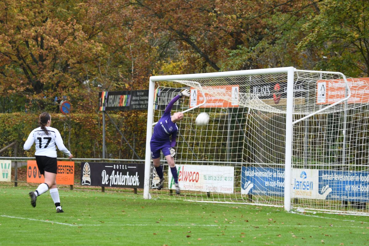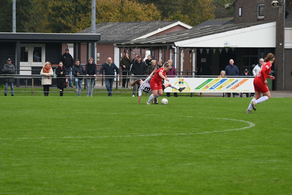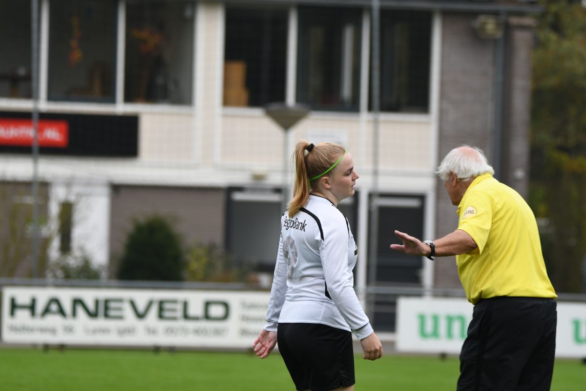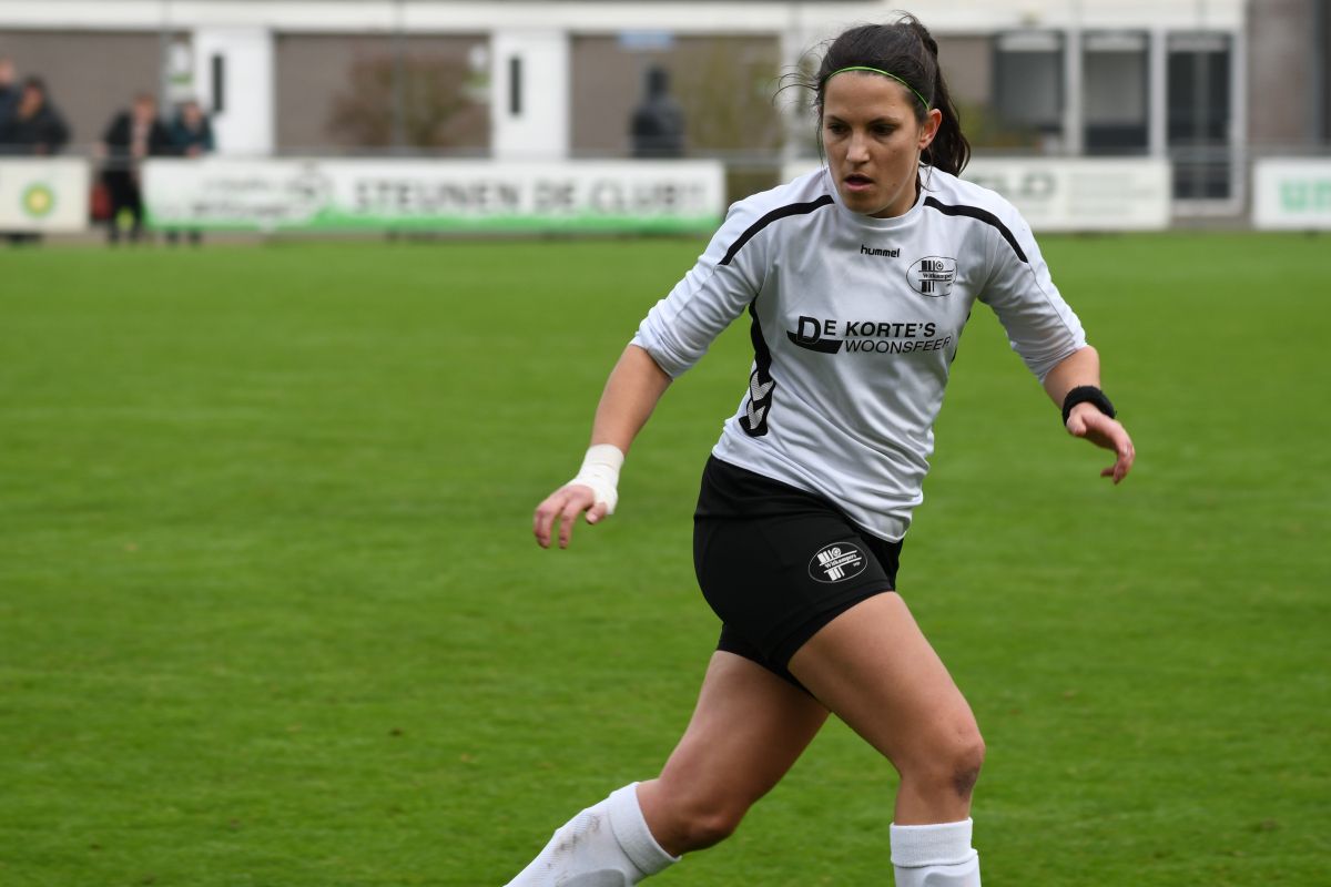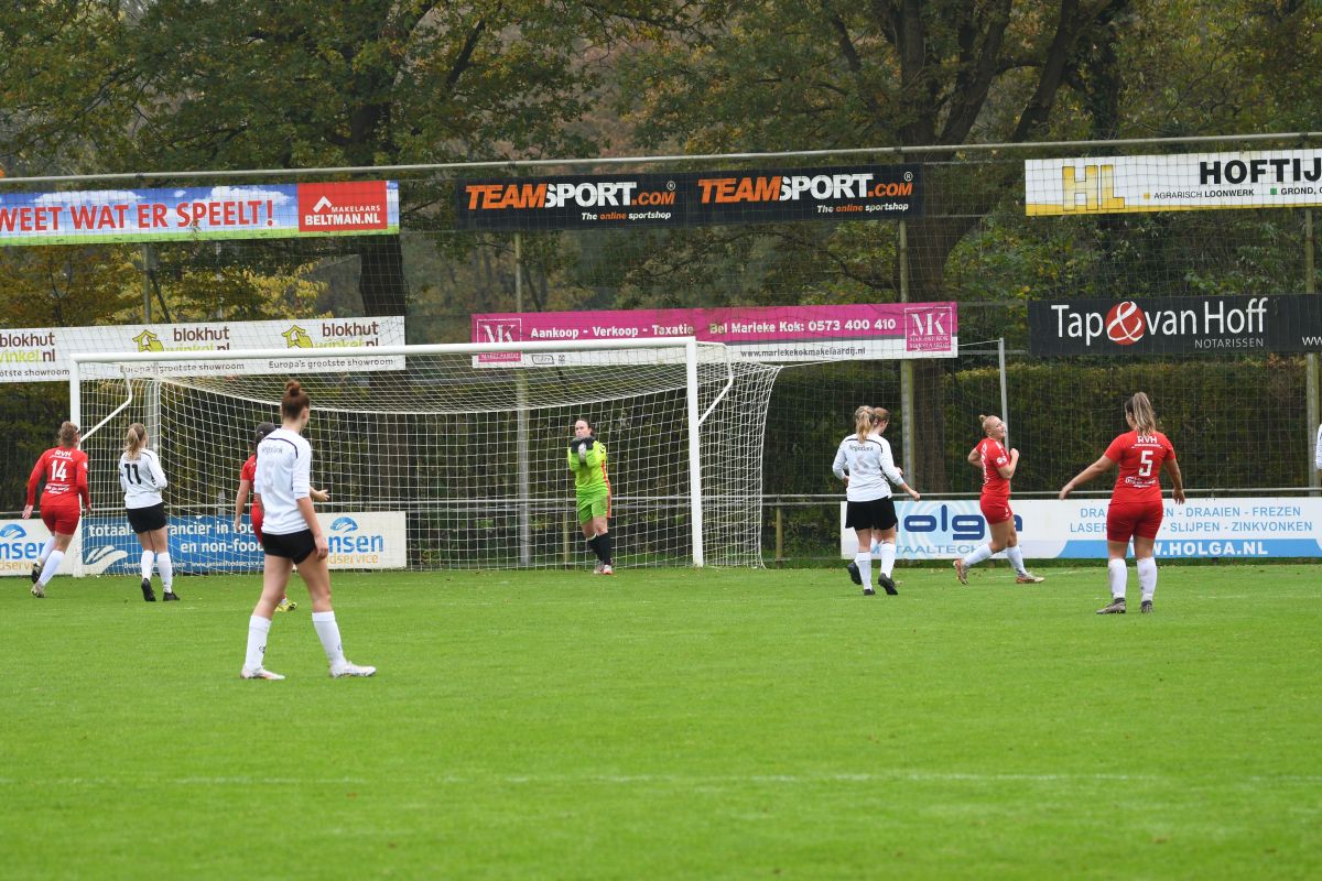 Een puntje in Laren houden zou, na het zien van de 1e helft, een prima resultaat zijn. De 2e helft beginnen we wat optimistischer. Na 10 minuten hebben Daphne en Vene op goal geschoten en krijgt Denice via een corner de kans om de bal in te koppen. Op alle 3 de inzetten heeft de keeper een antwoord. We dringen Alverna wat verder terug dan in de 1e helft. In de 65e minuut krijgen wij een vrije trap. Deze belandt bij Bodine, die haalt uit. Helaas vliegt de bal naast het goal. 10 minuten later krijgt Alverna een vrije trap. Ook deze bal belandt niet in het netje. Tess weet de bal knap uit het goal te houden. De enige echte kans die wij krijgen is uit een vrije trap in 83e minuut. Vene schiet een vrije trap vanaf een meter of 20 op de lat. Helaas staat er niemand bij de 2e paal om de bal in het goal te werken. Alverna weet 2 minuten later met een lange bal nog wat gevaar te stichten, maar ook hier ontstaat geen echte kans. Al met al is 0-0 een terechte uitslag. We hebben geen weg weten te vinden door de sterke verdediging van Alverna. We hebben een punt in Laren weten te houden en dat is achteraf ook alles wat er in zat.