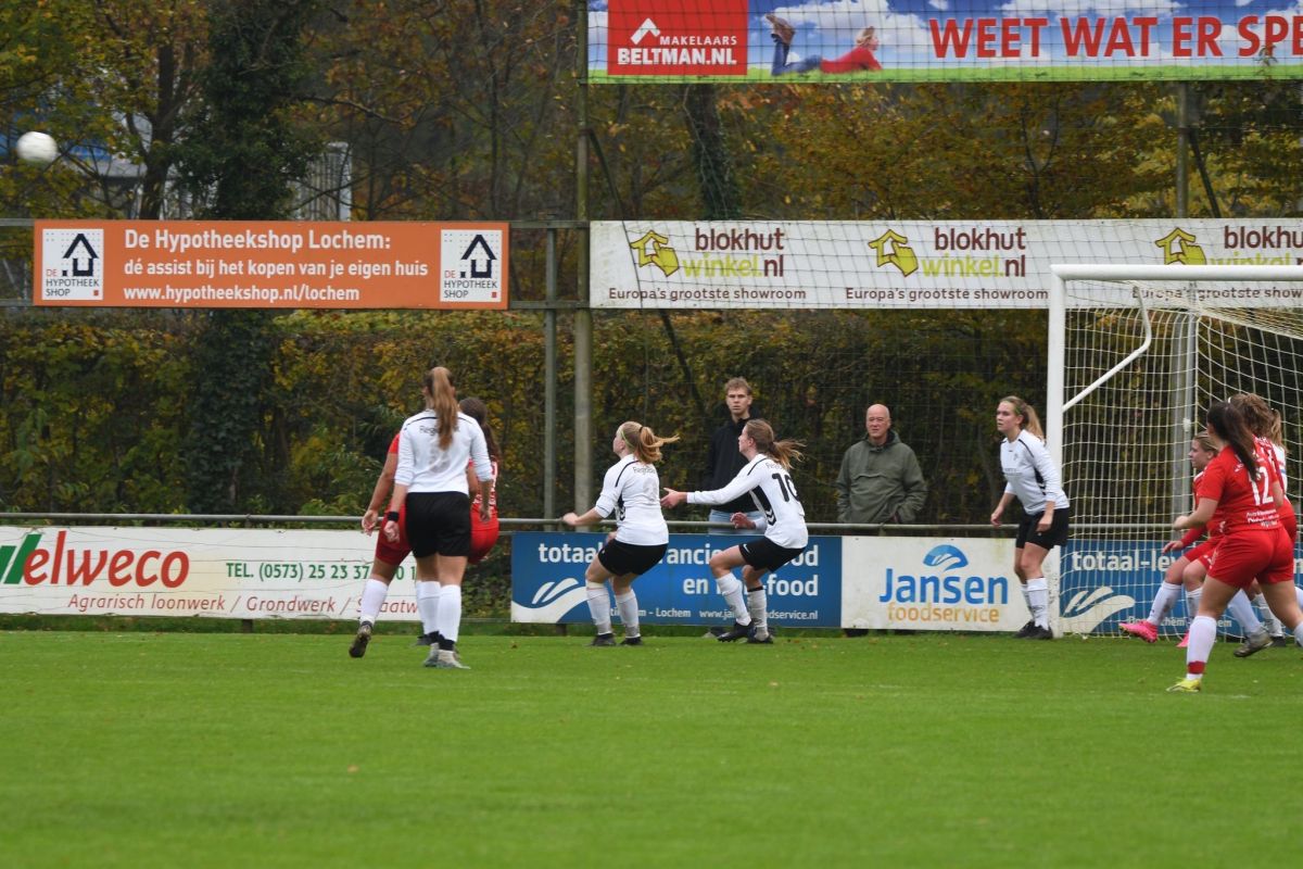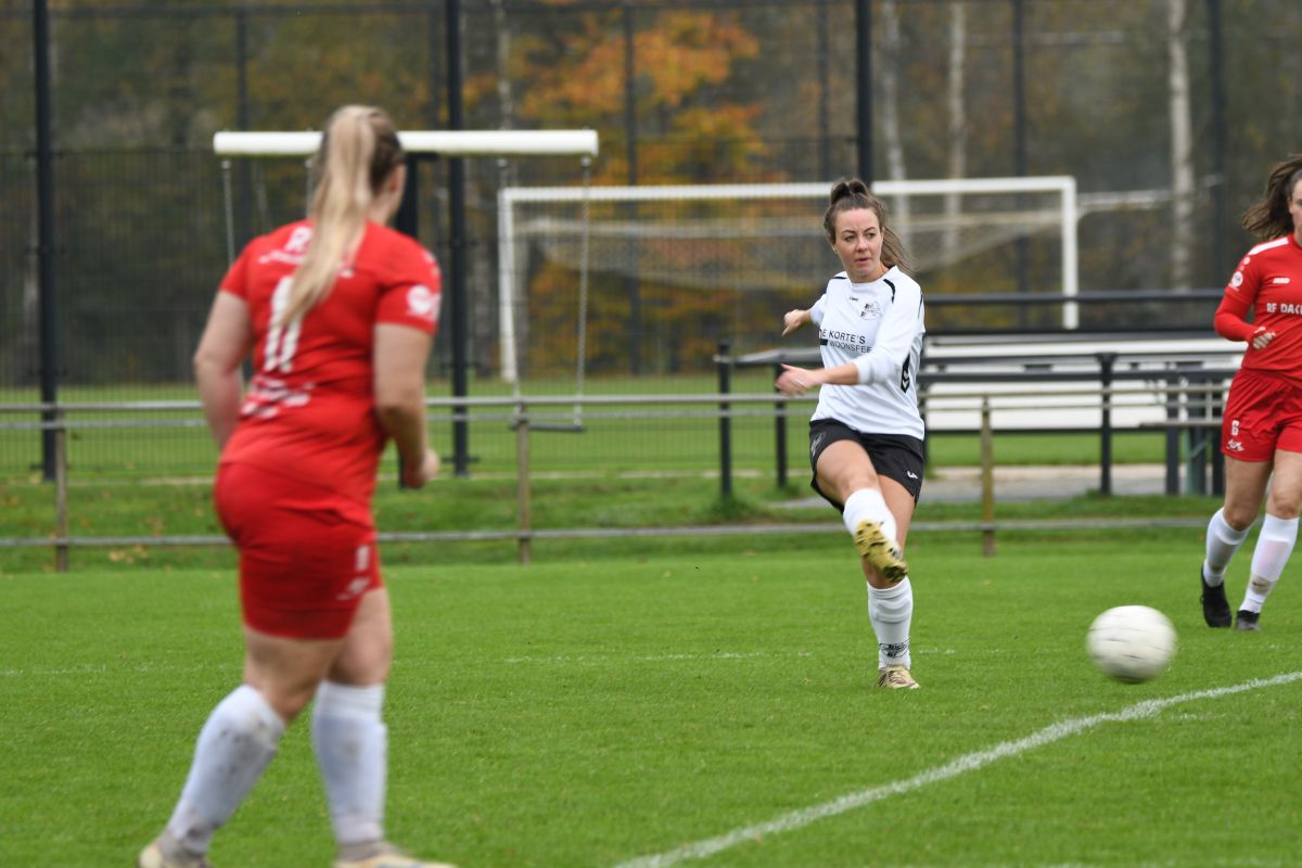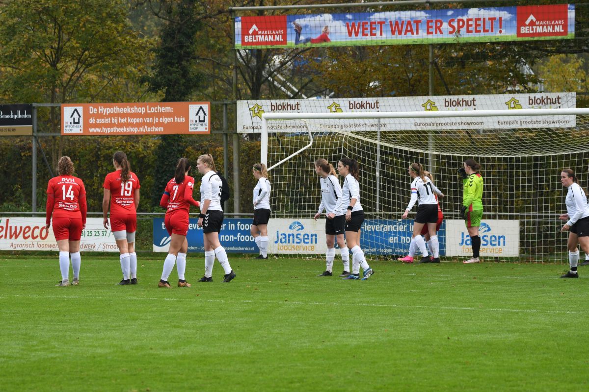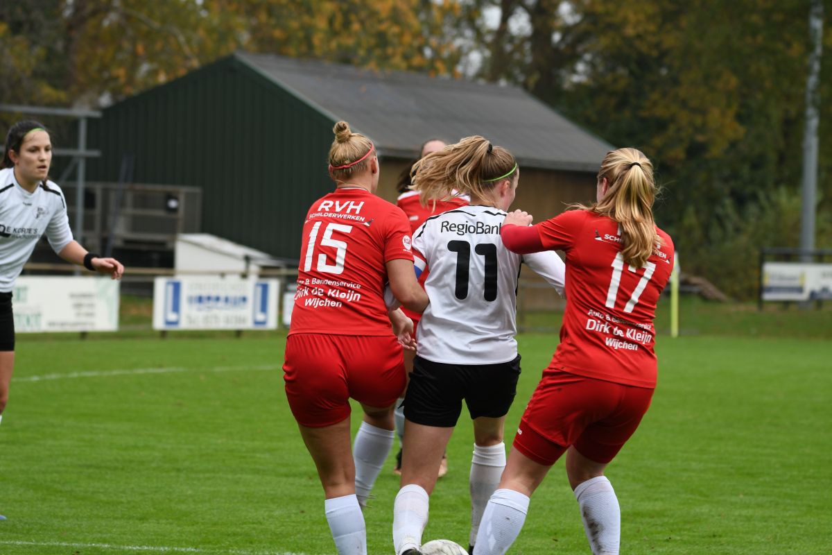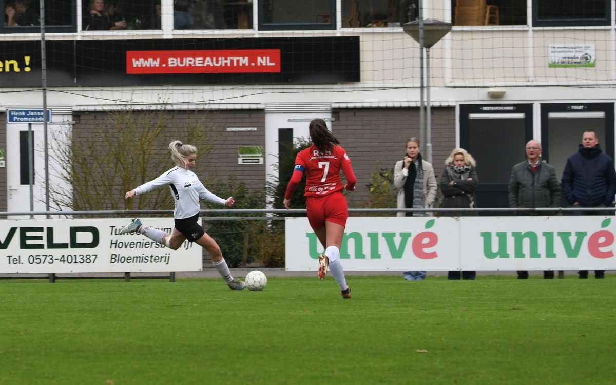 Een puntje in Laren houden zou, na het zien van de 1e helft, een prima resultaat zijn. De 2e helft beginnen we wat optimistischer. Na 10 minuten hebben Daphne en Vene op goal geschoten en krijgt Denice via een corner de kans om de bal in te koppen. Op alle 3 de inzetten heeft de keeper een antwoord. We dringen Alverna wat verder terug dan in de 1e helft. In de 65e minuut krijgen wij een vrije trap. Deze belandt bij Bodine, die haalt uit. Helaas vliegt de bal naast het goal. 10 minuten later krijgt Alverna een vrije trap. Ook deze bal belandt niet in het netje. Tess weet de bal knap uit het goal te houden. De enige echte kans die wij krijgen is uit een vrije trap in 83e minuut. Vene schiet een vrije trap vanaf een meter of 20 op de lat. Helaas staat er niemand bij de 2e paal om de bal in het goal te werken. Alverna weet 2 minuten later met een lange bal nog wat gevaar te stichten, maar ook hier ontstaat geen echte kans. Al met al is 0-0 een terechte uitslag. We hebben geen weg weten te vinden door de sterke verdediging van Alverna. We hebben een punt in Laren weten te houden en dat is achteraf ook alles wat er in zat.