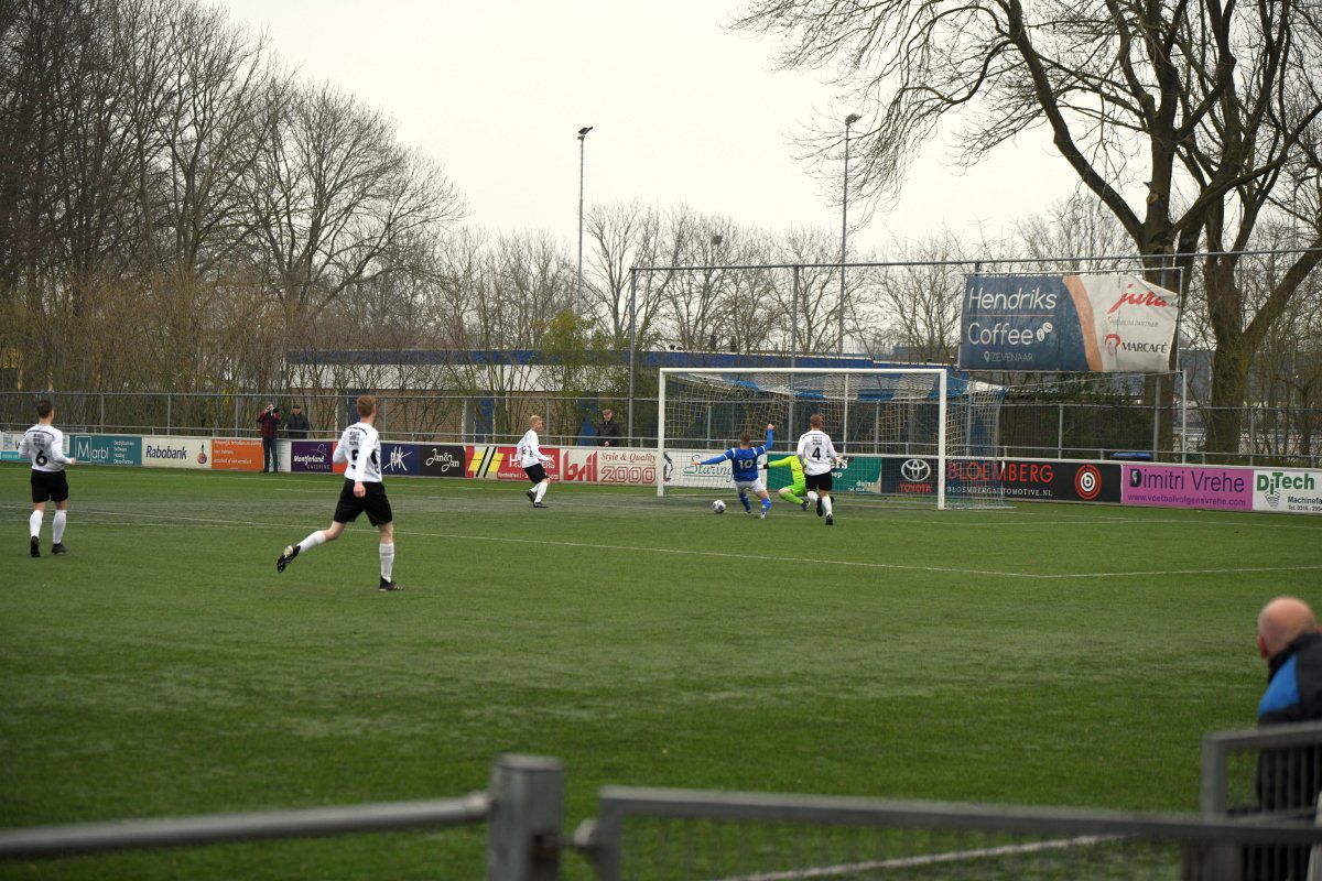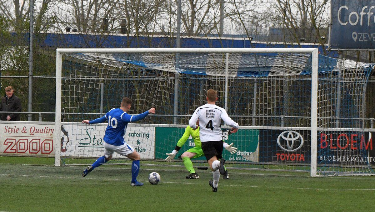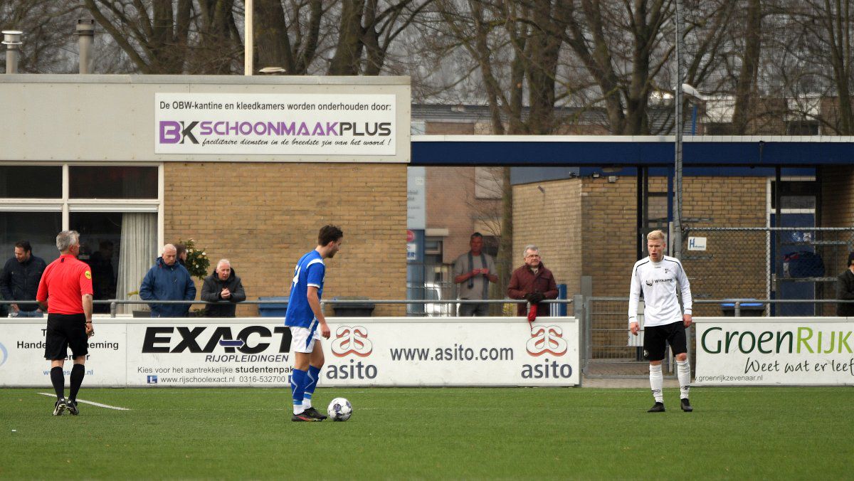 Een paar minuten later bijt OBW van zich af en lijkt één van de Zevenaarse voorhoedespelers een teenlengte tekort te komen om de 1-0 te kunnen aantekenen. De laatste twee kansen van de eerste helft zijn weer voor Witkampers, een vrije trap van Daan Hento vliegt een metertje over. Net voor rust kan diezelfde Daan Hento net niet lekker bij een bal om deze voldoende kracht mee te geven en de inzet hobbelt naast.