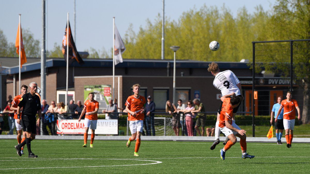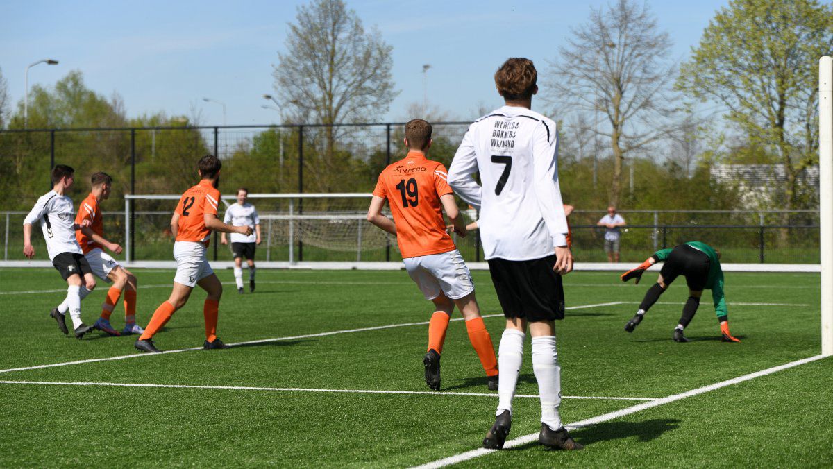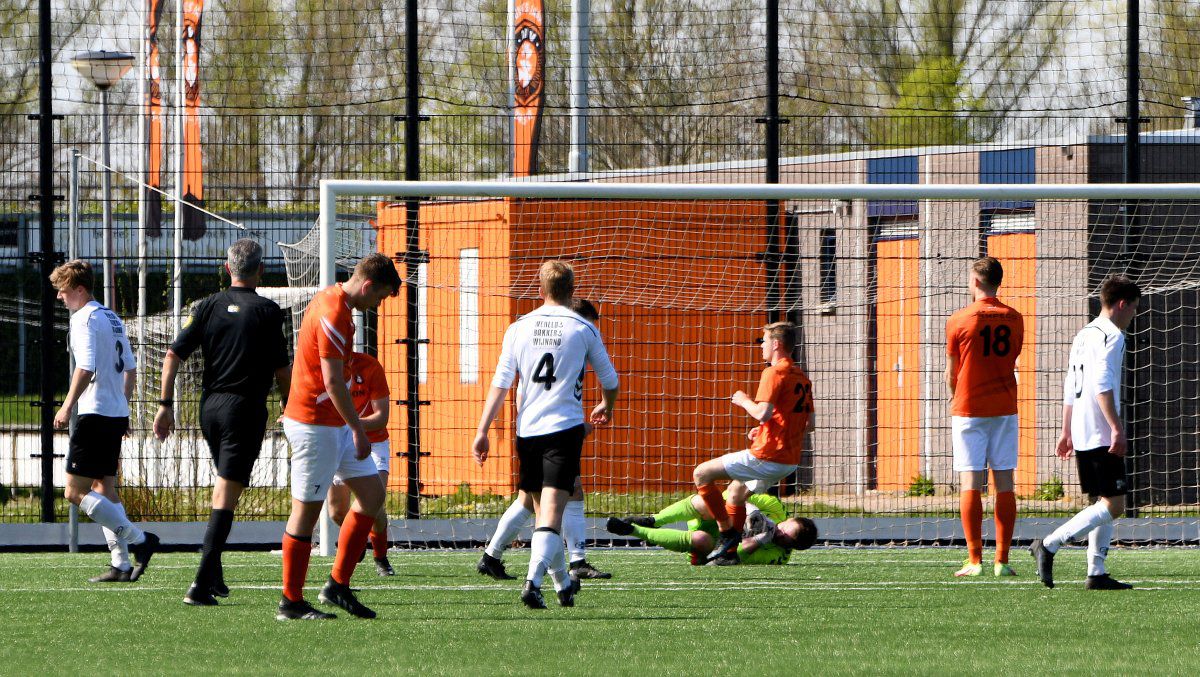 DVV probeert het verschil nog kleiner te maken en het is even zaak voor Witkampers om in deze fase niet in de problemen te komen en een goal tegen te krijgen. Eerlijk gezegd zit dat er ook niet echt in en in de slotfase komt Witkampers zelfs nog op 0-3. De doelman van DVV komt wat al te enthousiast uit en raakt met zijn handen niet de bal, maar wel het hoofd van Raoul Haijtink. Dit levert uiteraard een strafschop op, ook vanmiddag is deze klus aan Daan Hento wel besteed.