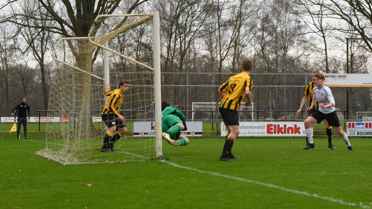 Vorige week speelde Witkampers een matige wedstrijd tegen VDZ. Vandaag spelen de Larenaren tegen de nummer een na laatst van de derde klasse B. De gasten uit Beekbergen sprokkelen de punten met moeite bij elkaar en zijn met een strijd voor handhaving bezig. Waar Witkampers in de afgelopen speelronde met moeite tot kansen kwam, is het vanmiddag na 2 minuten al bijna raak. Een snelle aanval van Witkampers waarbij de thuisploeg door het hart van de Beekbergen defensie combineert geeft hoop voor vandaag. Maar waar één zwaluw geen zomer schijnt te maken geldt dat blijkbaar ook voor één aanval. Het vervolg van de eerste helft is bijzonder matig.