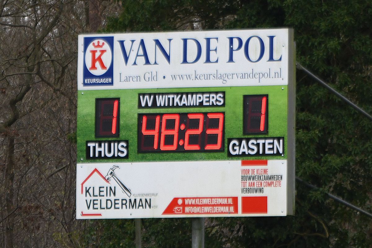 Het laatste kwartier van de wedstrijd met daarbij 14 minuten blessuretijd is chaotisch en de irritatie op het veld neemt toe. Witkampers en Beekbergen gaan meer overtredingen maken en de scheidsrechter van vanmiddag heeft opeens zijn handen vol. Zelfs nadat Witkampers met 10 man komt te staan, invaller Rick Bouwhuis ontvangt een rode kaart, volgen er mogelijkheden. Daarbij is Witkampers ongelukkig, het lukt een aantal keren net niet en zo is 1-1 het resultaat.