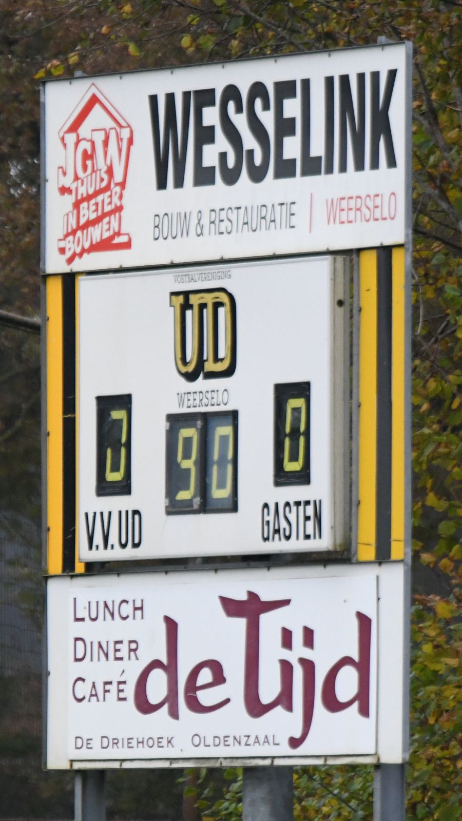 In de 65e minuut lijkt de verdiende voorsprong voor Witkampers dan wel te vallen. Uit een voorzet mag Daan Hento rustig binnenkoppen, maar helaas wordt er voor buitenspel gevlagd én gefloten. Kortom, de goal gaat niet door. Het blijft 0-0. UD Weerselo lijkt genoegen te gaan nemen met een punt. Misschien ook wel ingegeven door het feit dat er nog twee spelers van de thuisploeg geblesseerd uitvallen. In de blessuretijd wordt UD Weerselo nog wel gevaarlijk via een aantal dode spelmomenten en zit het voor Witkampers niet tegen. Ook daar had zo maar nog een goal kunnen vallen. Volgende week speelt Witkampers weer een thuiswedstrijd, tegen Wijhe'92.
