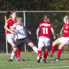 Het was te merken dat ’t Zand VR1 een preek had gehad in de rust, want zij kwamen scherp uit de kleedkamer. Meteen in de eerste minuut na rust werden zij gevaarlijk door een vrijetrap, maar dit leverde geen goal op. Zij kregen meer balbezit dan in de eerste helft en konden daardoor ook meer voetballen. VR1 voetbalden daarin tegen de eerste 10 minuten als los zand. Toch kwam VR1 er nog een aantal keer uit. Na een steekbal van Josien kreeg Daphne een goede kans om te scoren, maar haar schot met links miste kracht om de tegenstander pijn te doen. Vijf minuten daarna lag de bal helaas in het netje aan de andere kant en keek VR1 tegen een 1-0 achterstand aan. Toch bleef VR1 knokken. In de 75e minuut kregen zij een vrij trap, maar deze werd weggewerkt door de tegenstander. Doordat Carmen naast de spits ging spelen voorin om meer druk naar voren te geven, werd er ook ruimte weggegeven achterin. Dit resulteerde erin dat de tegenstander nogmaals wist te scoren in de 83e minuut en keek VR1 tegen een 2-0 achterstand met nog zo’n 10 minuten op de klok (!). VR1 bleef vechten als een team en daardoor werd twee minuten na de 2-0 de 2-1 gemaakt door Tessa na een voorzet van Mignot. Weer twee minuten later schoot Tessa net over. VR1 zette vol druk naar voren en speelde voor alles of niets. Iedereen voelde dat er meer te halen was hier in Tilburg. VR1 verdiende ook zeker meer dan een nederlaag na het getoonde spel. En ja, drie keer is dan scheepsrecht. In de 90e minuut wist Tessa met haar derde poging nogmaals het net te vinden door een mooie draaibal over de keepster: 2-2! Hierdoor nam VR1 een punt mee naar Laren vanuit Tilburg.