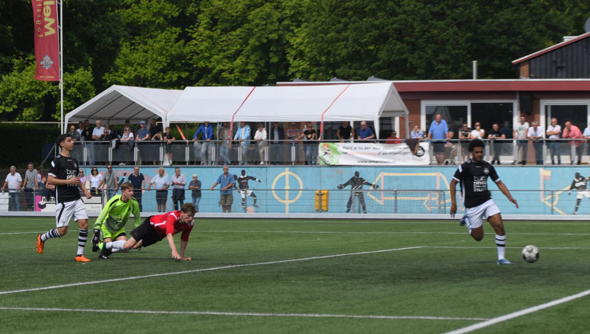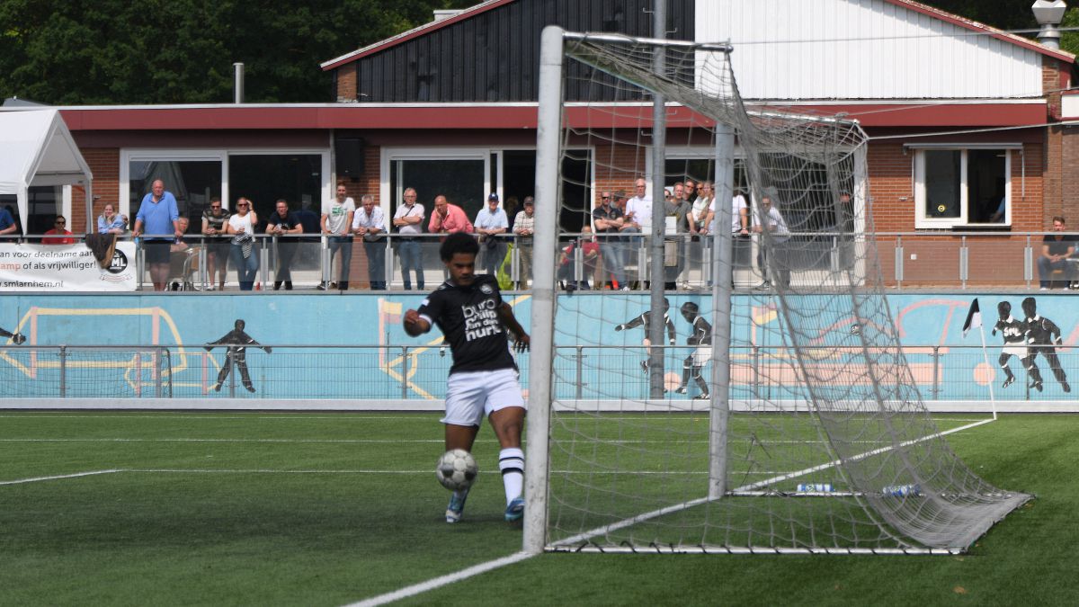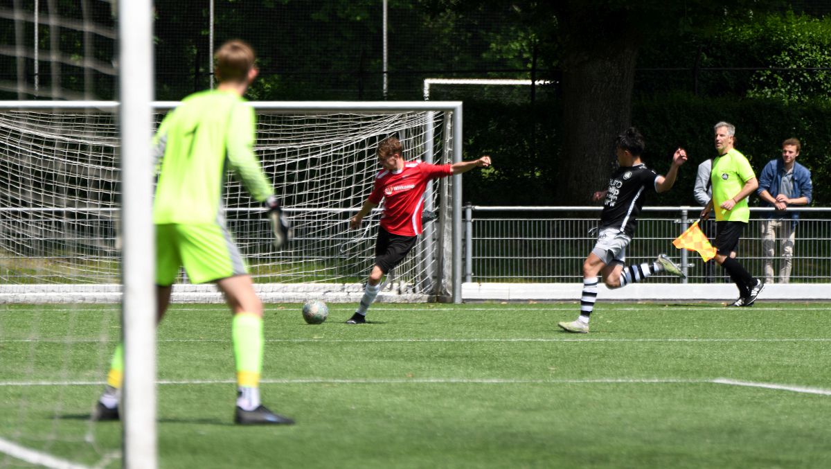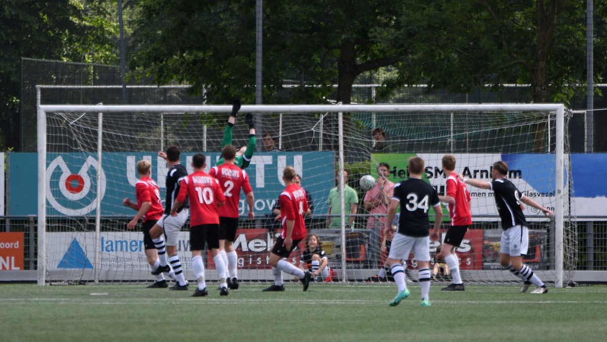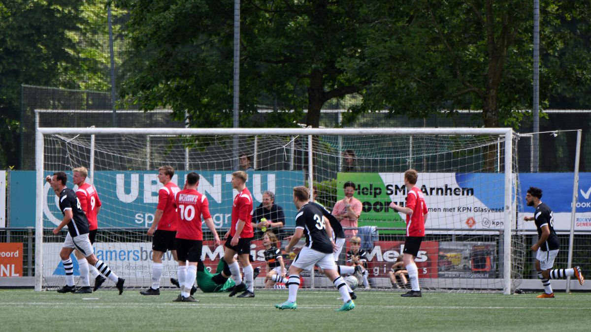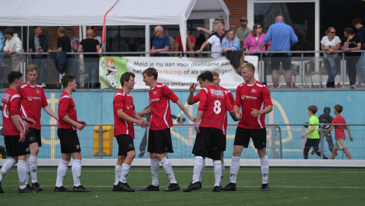 Witkampers begint ook overtuigend aan de tweede helft. De Larenaren zijn sterker en SML komt er niet echt meer uit. Net voordat het eerste uur van deze wedstrijd erop zit, valt de 1-2. Een hoge voorzet wordt door Jordy Woestenenk goed aangenomen en in de verre hoek binnengeschoten. Een knappe goal die nog meer vertrouwen geeft op een goede afloop. SML moet risico gaan nemen en uit zo'n risicovol moment valt ook de 1-3. Een lange bal vanuit de laatste linie van Witkampers wordt opgevangen door Christian Beuzel en samen met Colin Stegeman begint hij aan een sprint van 40 meter richting het Arnhemse doel. Christian legt oog in oog met de keeper de bal netjes af op Colin en een overwinning lijkt nu bijna zeker. De thuisploeg probeert er nog een slotoffensief uit te persen, maar dit komt eigenlijk niet van de grond. Witkampers blijft eenvoudig overeind én bewaart het mooiste voor het laatst. De doelman van SML staat in balbezit van zijn eigen team vrij ver voor zijn doel en dat heeft Bastian Beuzel blijkbaar gezien. Net over de middenlijn helemaal aan de rechterzijlijn schiet hij met een enorme boog de bal binnen. Na deze kers op de taart is de wedstrijd afgelopen. Volgende week zoals gezegd nog één competitiewedstrijd en dan weten we ook hoe het (mogelijke) vervolg van dit seizoen eruit gaat zien.
