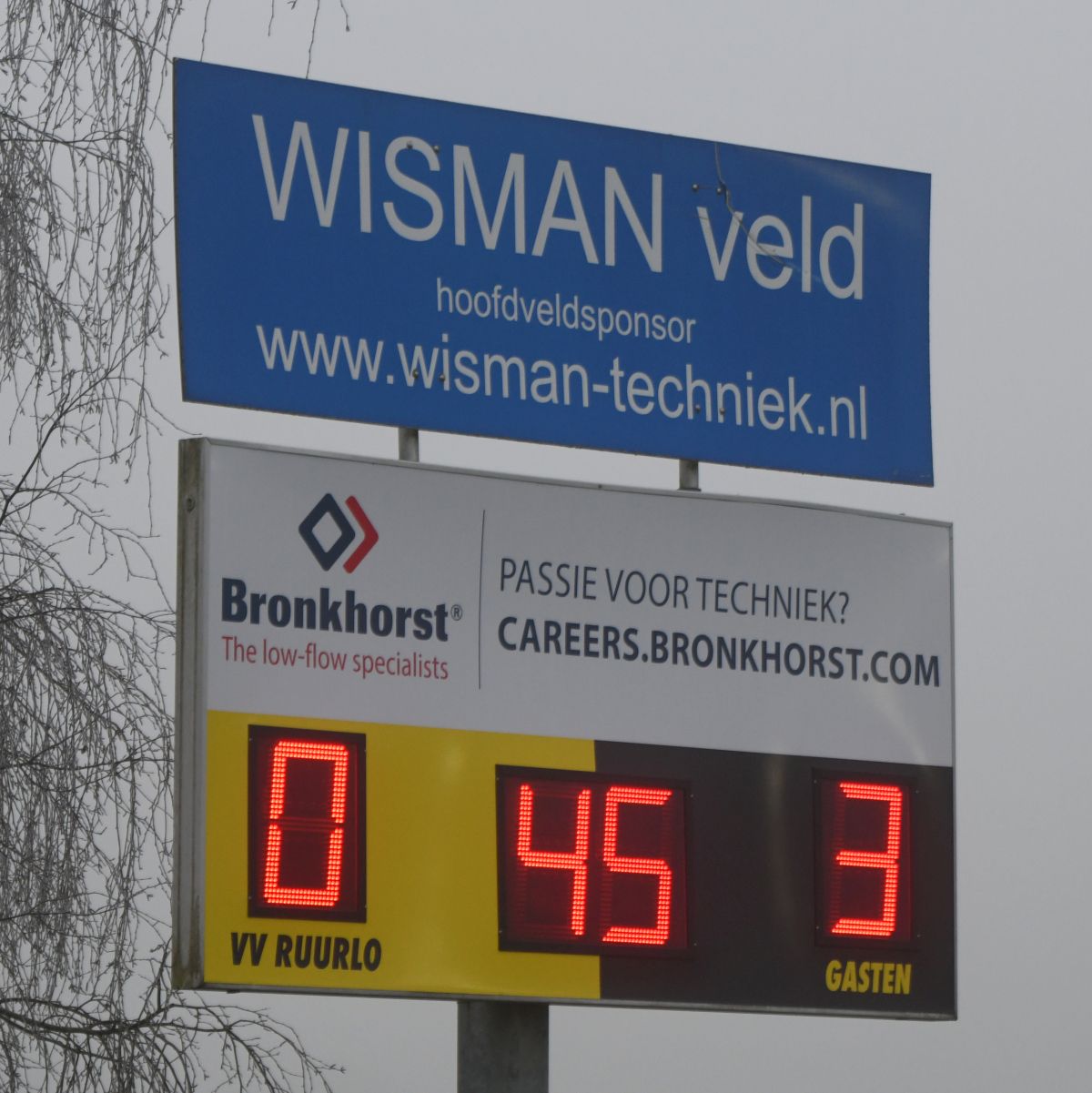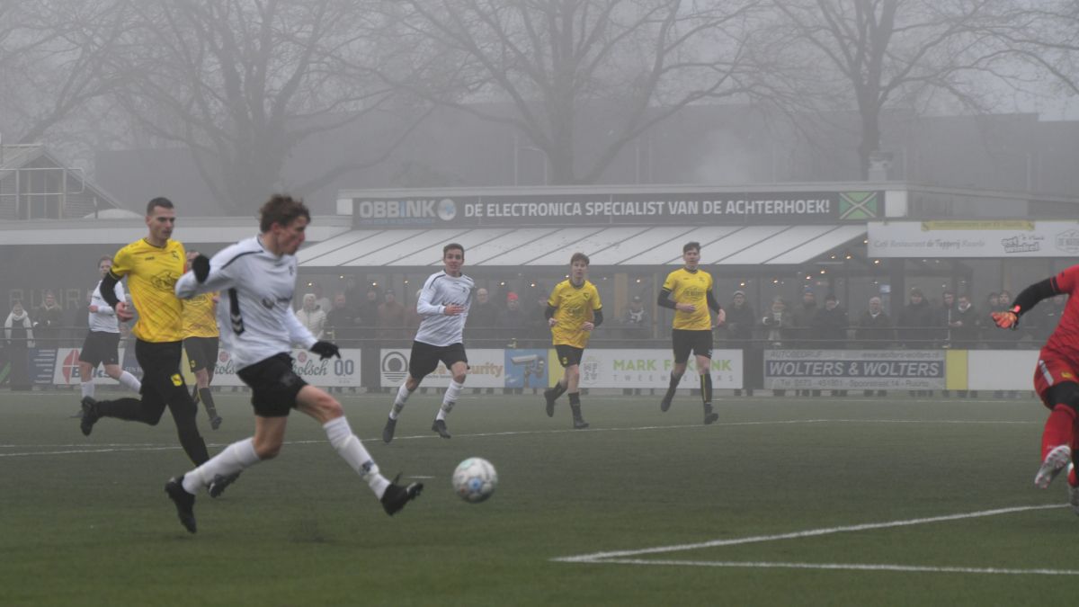 In de openingsfase van de wedstrijd kijken beide teams de kat een beetje uit de boom. Witkampers lijkt iets meer balbezit te hebben, maar Ruurlo is zeker geen ongevaarlijke tegenstander. Bijna lijken de zwart-witten een kadootje te mogen uitpakken. Als Ruurlo wel erg relaxed opbouwt en de bal zo maar voor de voeten van Colin Stegeman terechtkomt. Helaas vliegt zijn inzet net naast en blijft het voorlopig gelijk. Ruurlo had dit schrikmomentje misschien wel nodig, want de thuisploeg komt beter in de wedstrijd. Zoals eigenlijk al het hele seizoen staat het verdedigend bij de Larenaren prima en keept Joost Pakkert opnieuw een sterke wedstrijd. Uit een van de spaarzame kansen voor Witkampers in de eerste helft is het wel raak. Een bal die al dan niet bewust doorschiet richting de rand van het zestienmetergebied wordt door Bram Rekers mooi beheerst in de lange hoek geschoten. Een mooie opsteker voor Witkampers. Veel Larens gevaar is er in de eerste helft verder niet. Ruurlo krijgt nog een paar mogelijkheden.