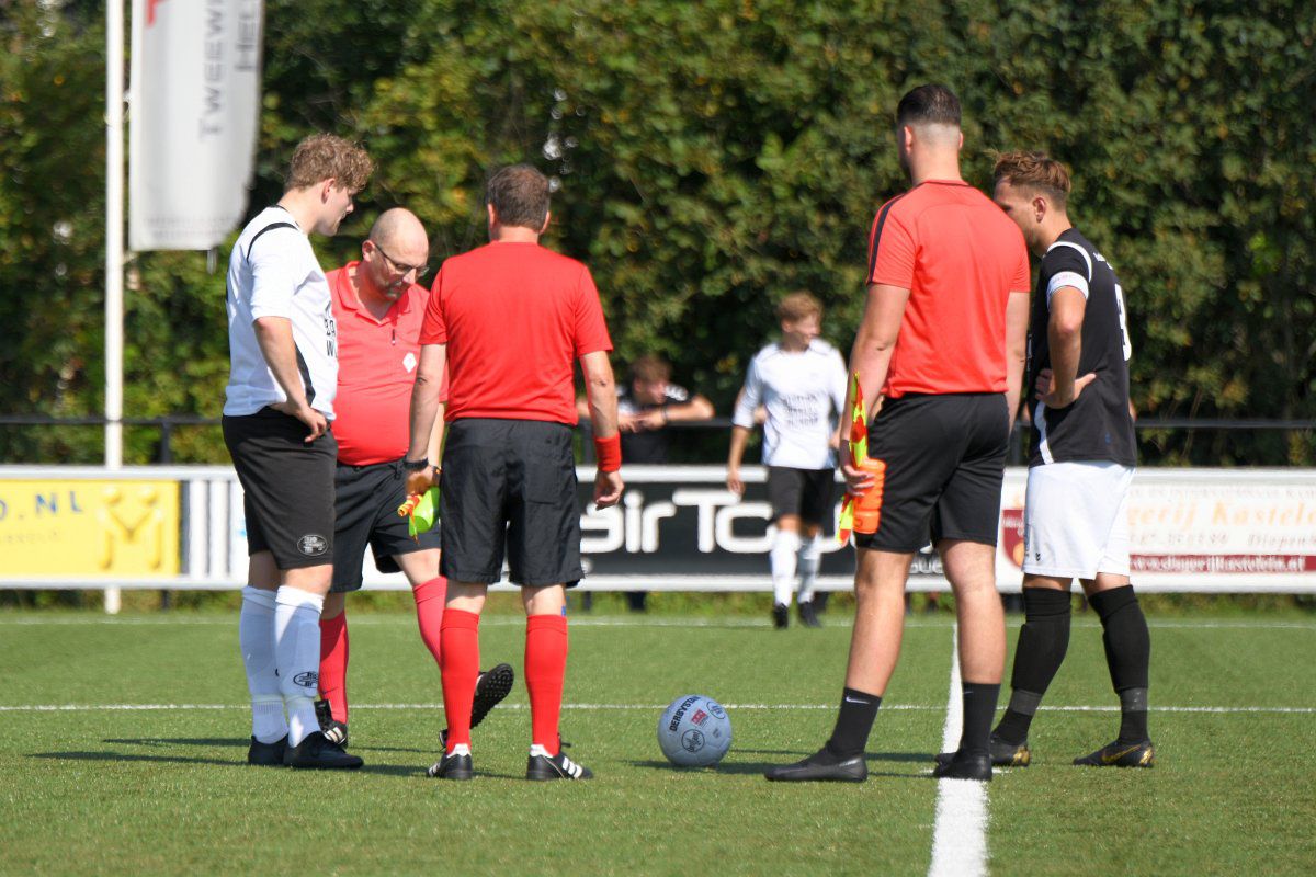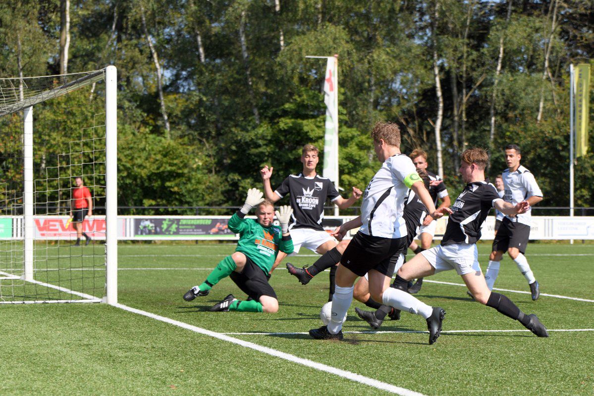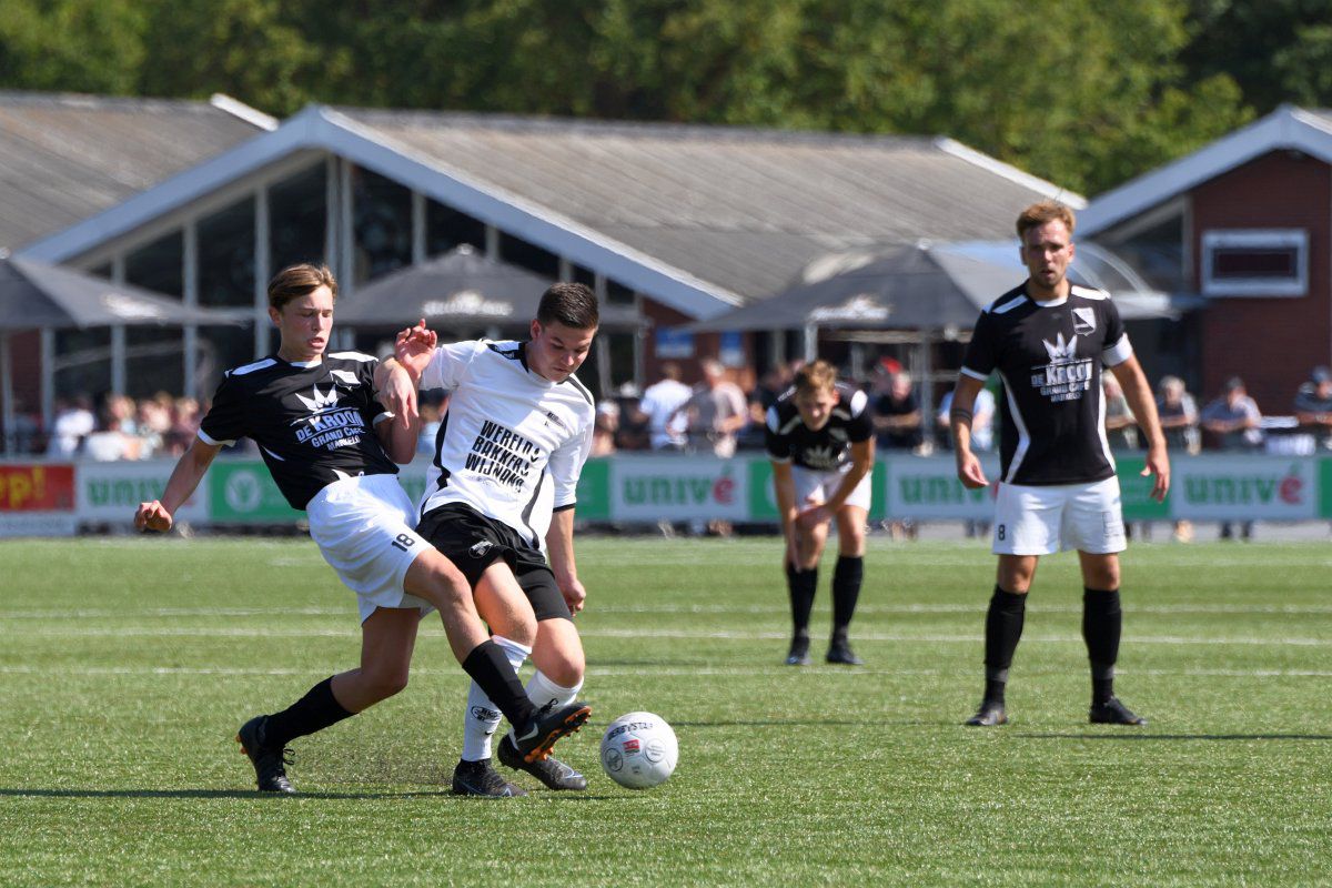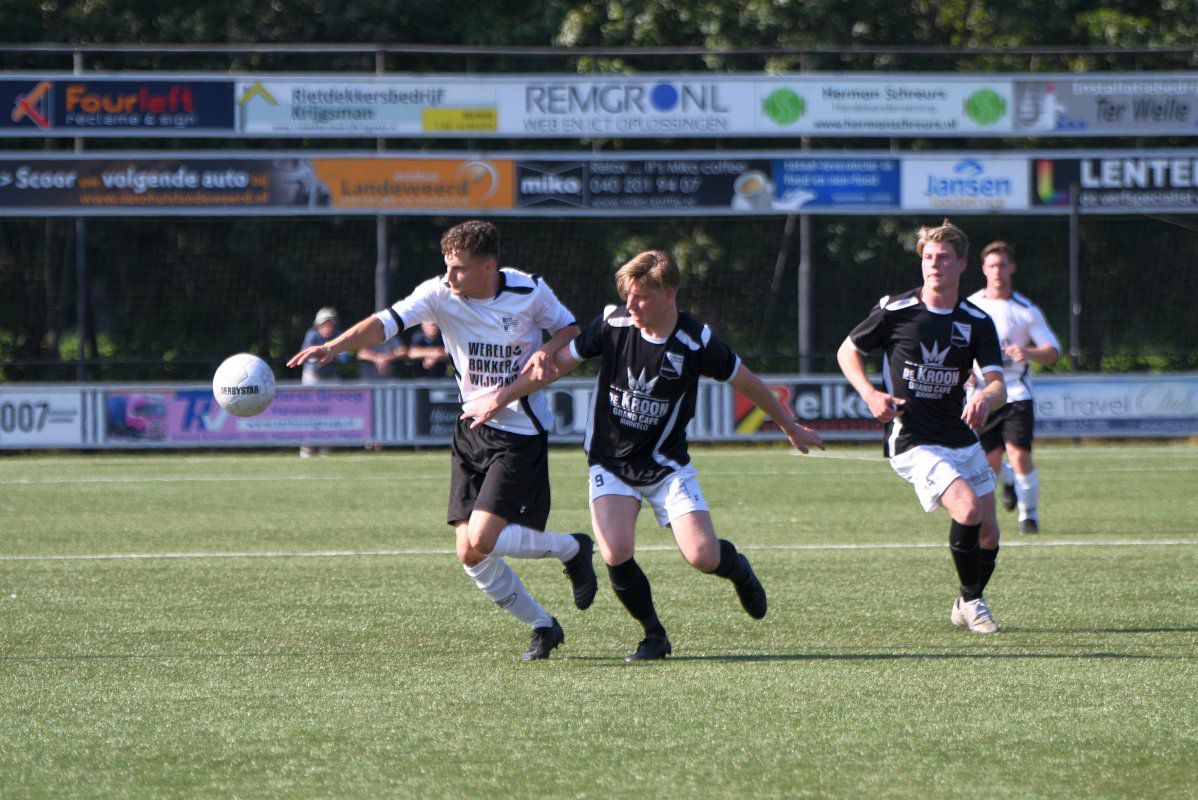 Markelo, 5 september 2021, Markelo – Witkampers (0-1) 0-1 Bijna een jaar geleden, op 11 oktober 2020 speelde Witkampers haar laatste officiële wedstrijd van het afgebroken seizoen 2020-2021. Omdat deze wedstrijd zonder publiek werd gespeeld zullen de meeste supporters uit Laren hun team nog langer niet in actie hebben gezien. Dit is langs de lijn te zien, er zijn, zeker voor een eerste bekerwedstrijd, best veel toeschouwers uit Laren. Niet alleen de toeschouwers hebben er wel zin in, Markelo en Witkampers laten in het eerste kwartier zien ook wel trek te hebben in weer eens een écht treffen in plaats van een oefenwedstrijd. Een van de eerste gevaarlijke momenten voor het Markelo doel levert gelijk een Larense treffer op. Jordy Woestenenk geeft vanaf de rechterkant een voorzet richting de verre hoek en de Markelo defensie inclusief de keeper is druk in de weer met Daan Hento. Maar omdat de voorzet wel erg scherp is zwaait deze binnen in de verre hoek en staat Witkampers op voorsprong. Soms zorgt een vroege voorsprong voor een leuk vervolg van een eerste helft, vanmiddag is dit echter niet het geval. Vanaf de drinkpauze in de 22e minuut gaat er aan beide kanten veel mis. Zowel Markelo als Witkampers komen wat slordig en onzorgvuldig over met veel balverlies tot gevolg. Dit zorgt er ook voor dat het tempo nooit echt lekker in de wedstrijd komt en het ook niet erg verheffend is om naar te kijken. Net voor rust krijgt Witkampers via Raoul Haijtink een kans om de voorspong te vergroten maar zijn inzet gaat net naast. In de tweede helft is hetzelfde spelbeeld te zien. Witkampers krijgt af en toe een kans en Markelo wordt maar zelden gevaarlijk. Na iets meer dan een uur spelen wordt Daan Hento in stelling gebracht om de 0-2 binnen te tikken, maar ook deze kans wordt niet benut en daardoor blijft de voorsprong minimaal. Na nog een drinkpauze krijgt Markelo een eventueel slotoffensief niet van de grond. Witkampers is af en toe gevaarlijker door met iets directer spel de snelle voorhoede te bedienen. De grootste kans in de slotfase is wederom voor Witkampers. Niels Saaltink schiet oog in oog met de Markelo doelman de bal keihard op de lat en zo blijft het tot het einde in elk geval qua stand nog spannend. Deze kans blijkt ook gelijk de laatste van de wedstrijd te zijn, Markelo probeert het nog wel maar komt niet tot een grote kans en Witkampers wint haar eerste bekerwedstrijd van het seizoen 2021-2022