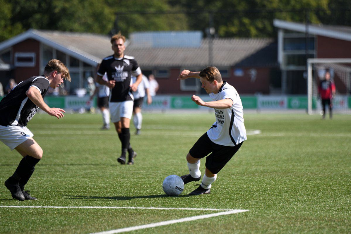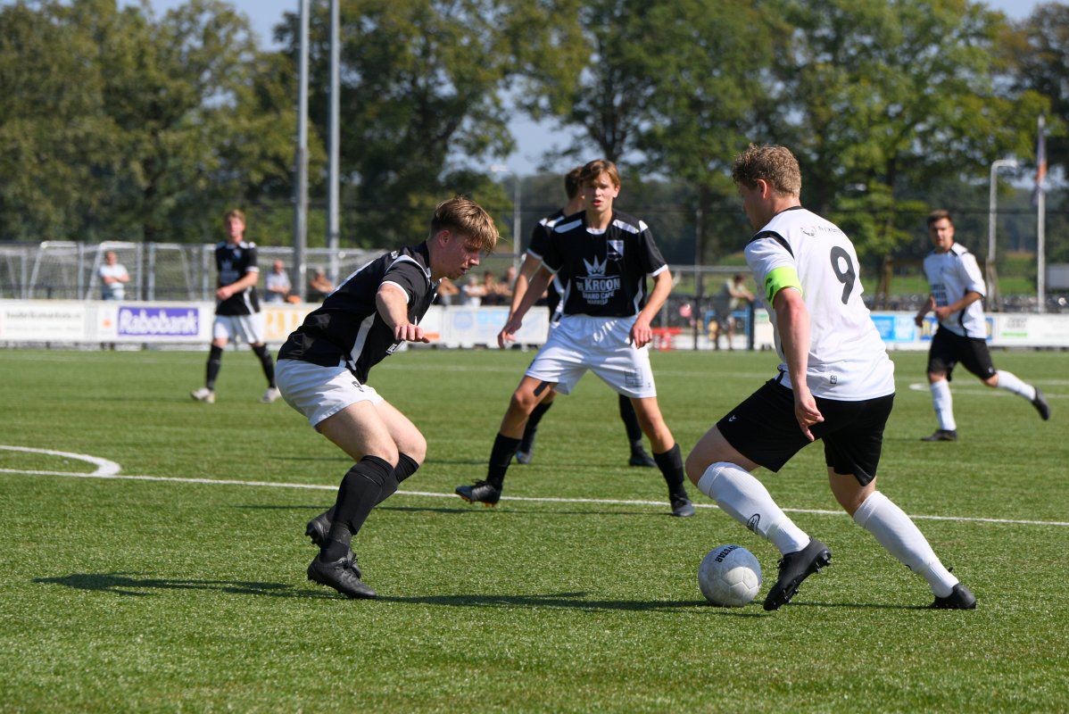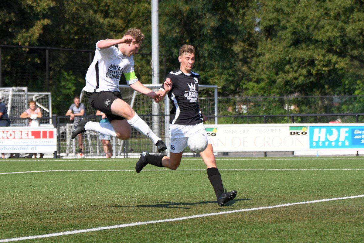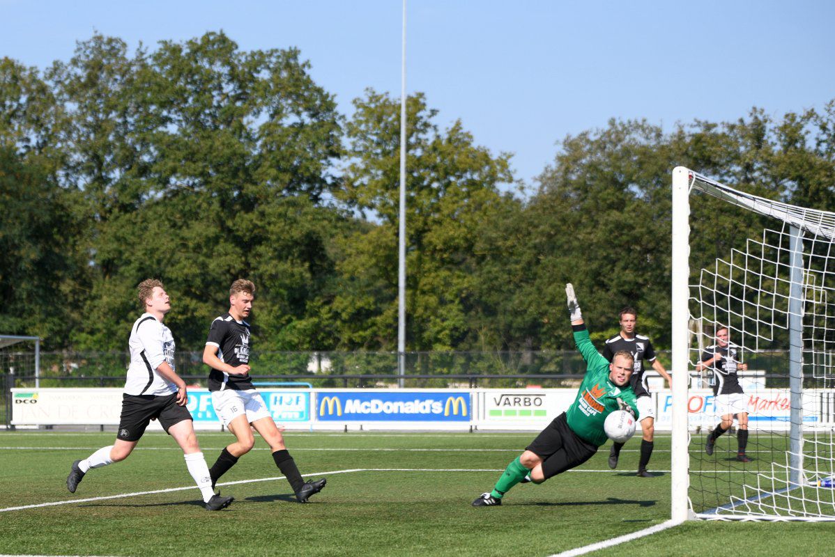 Markelo, 5 september 2021, Markelo – Witkampers (0-1) 0-1 Bijna een jaar geleden, op 11 oktober 2020 speelde Witkampers haar laatste officiële wedstrijd van het afgebroken seizoen 2020-2021. Omdat deze wedstrijd zonder publiek werd gespeeld zullen de meeste supporters uit Laren hun team nog langer niet in actie hebben gezien. Dit is langs de lijn te zien, er zijn, zeker voor een eerste bekerwedstrijd, best veel toeschouwers uit Laren. Niet alleen de toeschouwers hebben er wel zin in, Markelo en Witkampers laten in het eerste kwartier zien ook wel trek te hebben in weer eens een écht treffen in plaats van een oefenwedstrijd. Een van de eerste gevaarlijke momenten voor het Markelo doel levert gelijk een Larense treffer op. Jordy Woestenenk geeft vanaf de rechterkant een voorzet richting de verre hoek en de Markelo defensie inclusief de keeper is druk in de weer met Daan Hento. Maar omdat de voorzet wel erg scherp is zwaait deze binnen in de verre hoek en staat Witkampers op voorsprong. Soms zorgt een vroege voorsprong voor een leuk vervolg van een eerste helft, vanmiddag is dit echter niet het geval. Vanaf de drinkpauze in de 22e minuut gaat er aan beide kanten veel mis. Zowel Markelo als Witkampers komen wat slordig en onzorgvuldig over met veel balverlies tot gevolg. Dit zorgt er ook voor dat het tempo nooit echt lekker in de wedstrijd komt en het ook niet erg verheffend is om naar te kijken. Net voor rust krijgt Witkampers via Raoul Haijtink een kans om de voorspong te vergroten maar zijn inzet gaat net naast. In de tweede helft is hetzelfde spelbeeld te zien. Witkampers krijgt af en toe een kans en Markelo wordt maar zelden gevaarlijk. Na iets meer dan een uur spelen wordt Daan Hento in stelling gebracht om de 0-2 binnen te tikken, maar ook deze kans wordt niet benut en daardoor blijft de voorsprong minimaal. Na nog een drinkpauze krijgt Markelo een eventueel slotoffensief niet van de grond. Witkampers is af en toe gevaarlijker door met iets directer spel de snelle voorhoede te bedienen. De grootste kans in de slotfase is wederom voor Witkampers. Niels Saaltink schiet oog in oog met de Markelo doelman de bal keihard op de lat en zo blijft het tot het einde in elk geval qua stand nog spannend. Deze kans blijkt ook gelijk de laatste van de wedstrijd te zijn, Markelo probeert het nog wel maar komt niet tot een grote kans en Witkampers wint haar eerste bekerwedstrijd van het seizoen 2021-2022