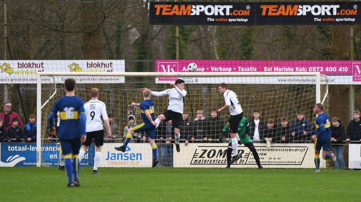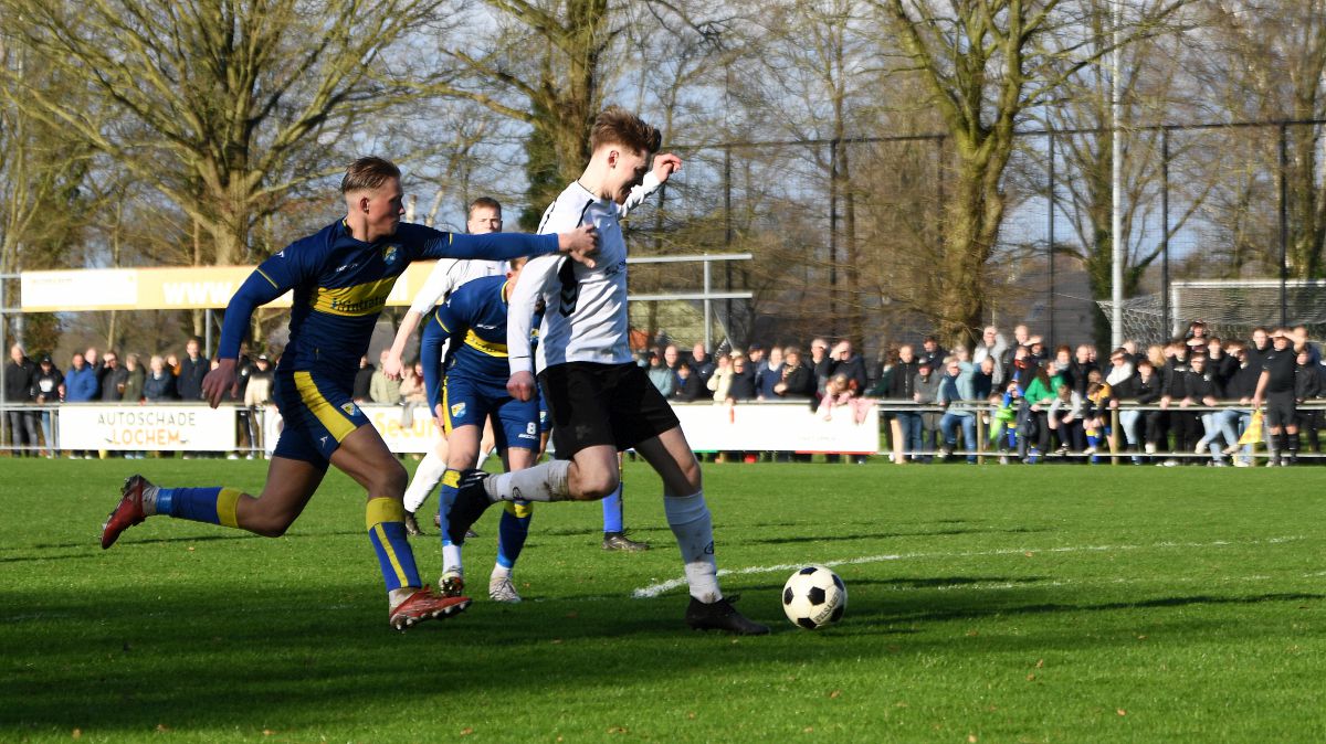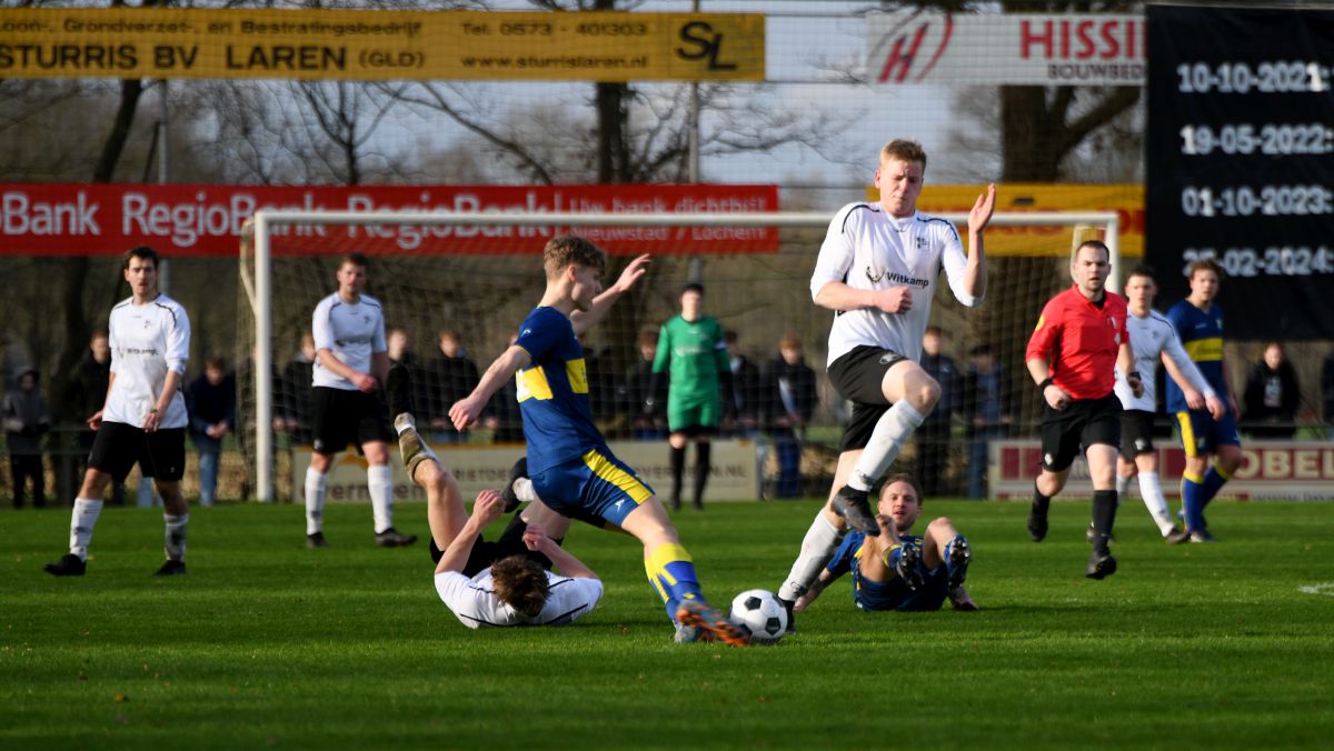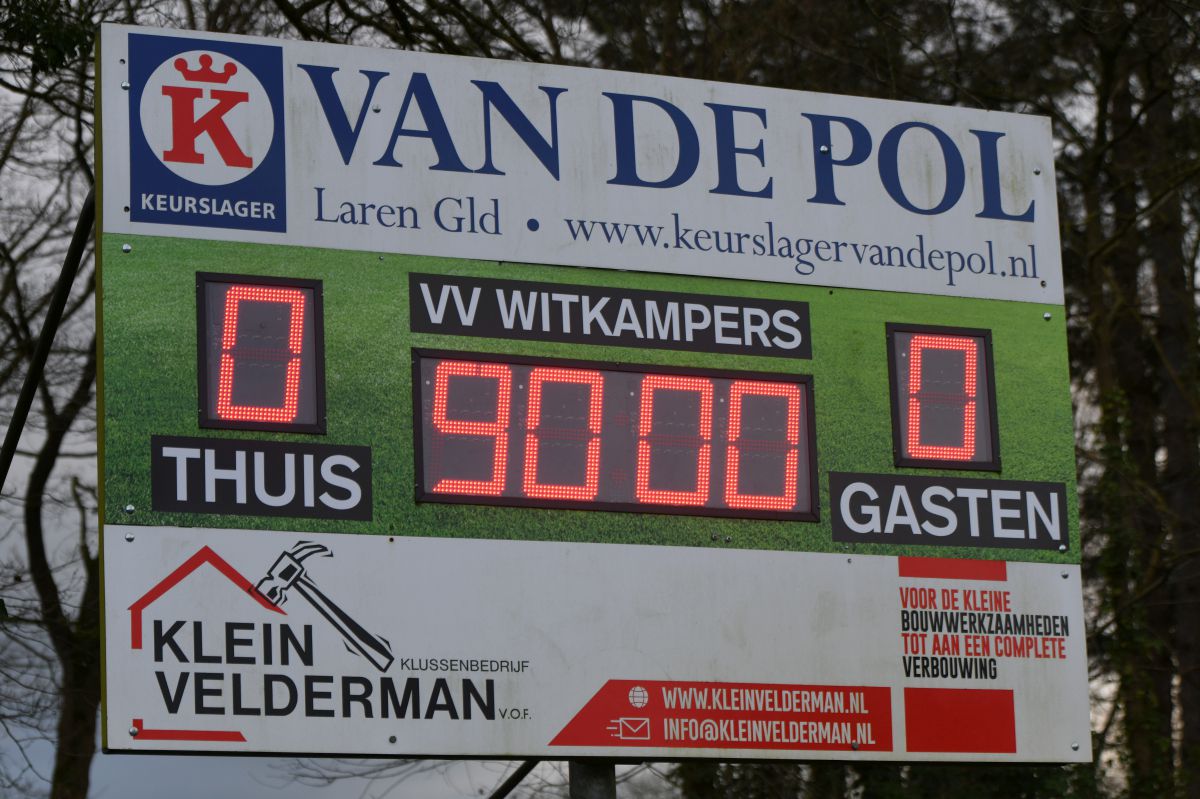 Vlak voor tijd schiet Niels Saaltink van ruimte afstand nét over en naast en ook een kopbal van Colin Stegeman komt nog op de paal terecht. Na 48 minuten in de eerste en 57 minuten in de tweede helft kan de balans worden opgemaakt. Witkampers en Sportclub Lochem speelden een boeiende en soms intense derby en houden elkaar uiteindelijk in evenwicht.