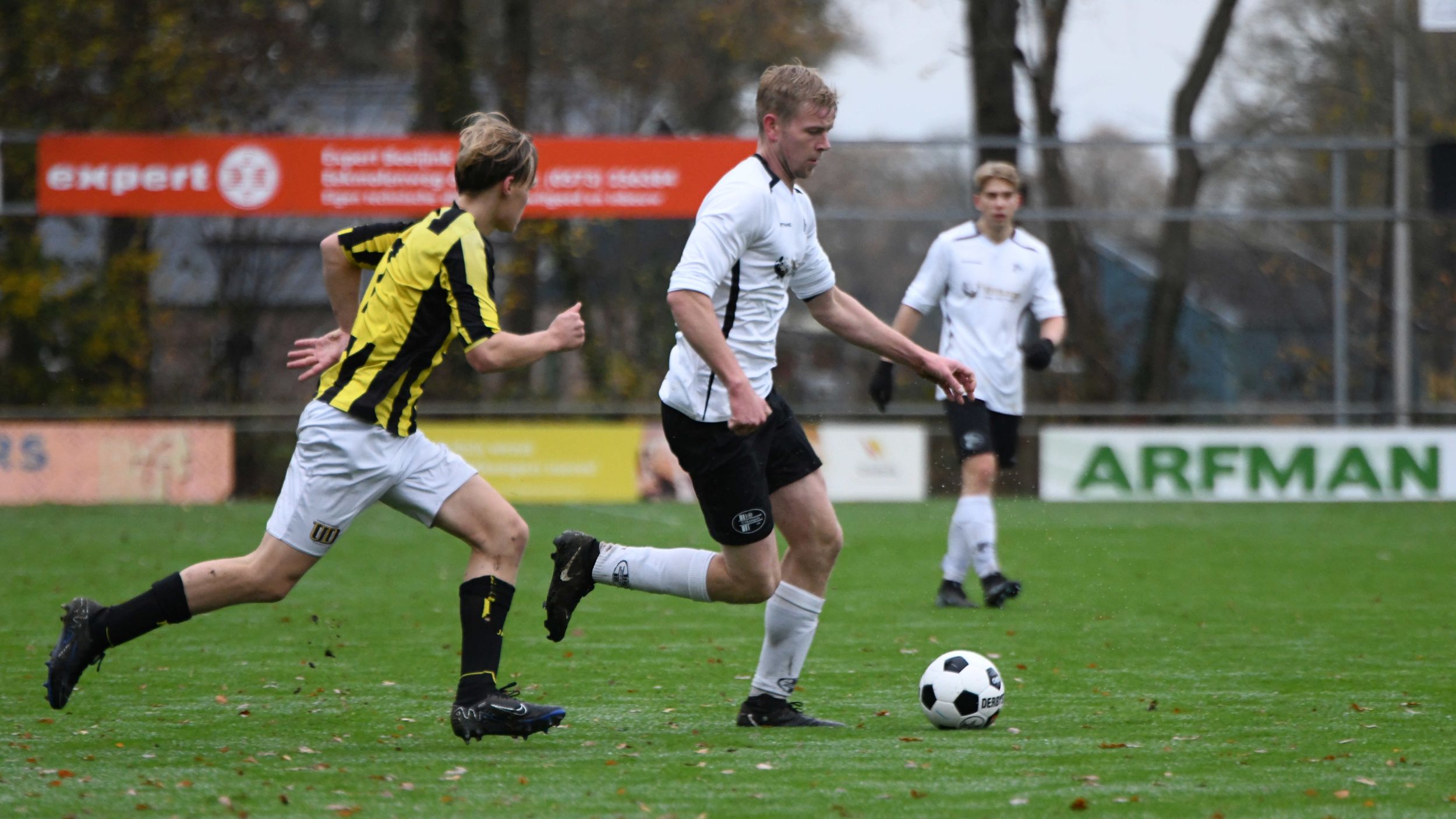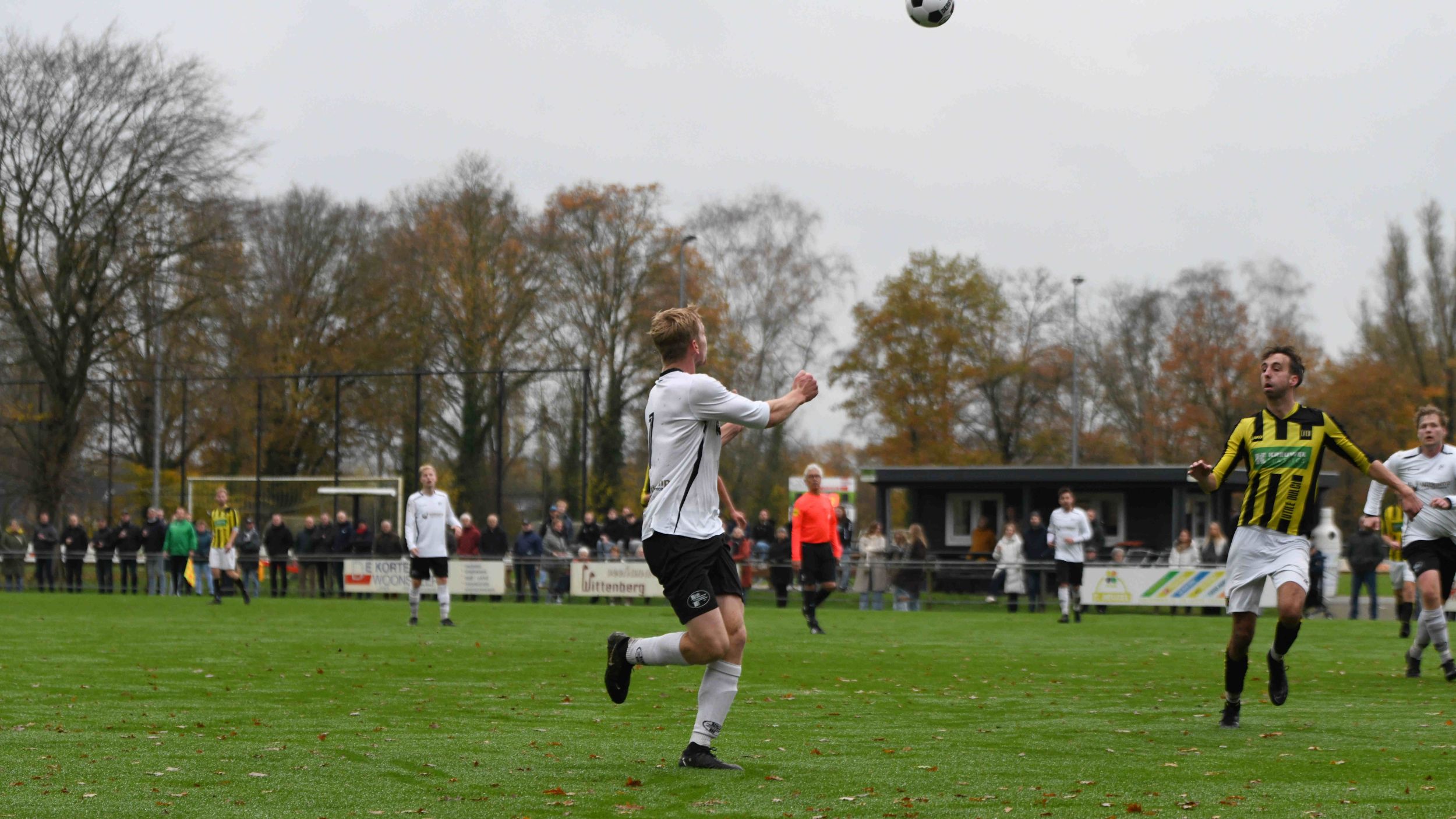 UD W neemt na deze comfortabele voorsprong wat gas terug, is nog dicht bij de 0-3 en toch begint Witkampers zich iets op te richten. In balbezit oogt de thuisploeg minder kwetsbaar dan in het eerste half uur. Na 34 minuten spelen is er een mooie aanval die uiteindelijk door Raoul Haijtink wordt binnengeschoten. De 1-2 geeft Witkampers weer hoop op een mooi vervolg van de middag. Net voor rust neemt de wedstrijd echter een onverwachte wending. De scheidsrechter van vanmiddag lijkt geblesseerd. Hij haalt de rust nog, maar een tweede helft zit er vanmiddag niet meer in.