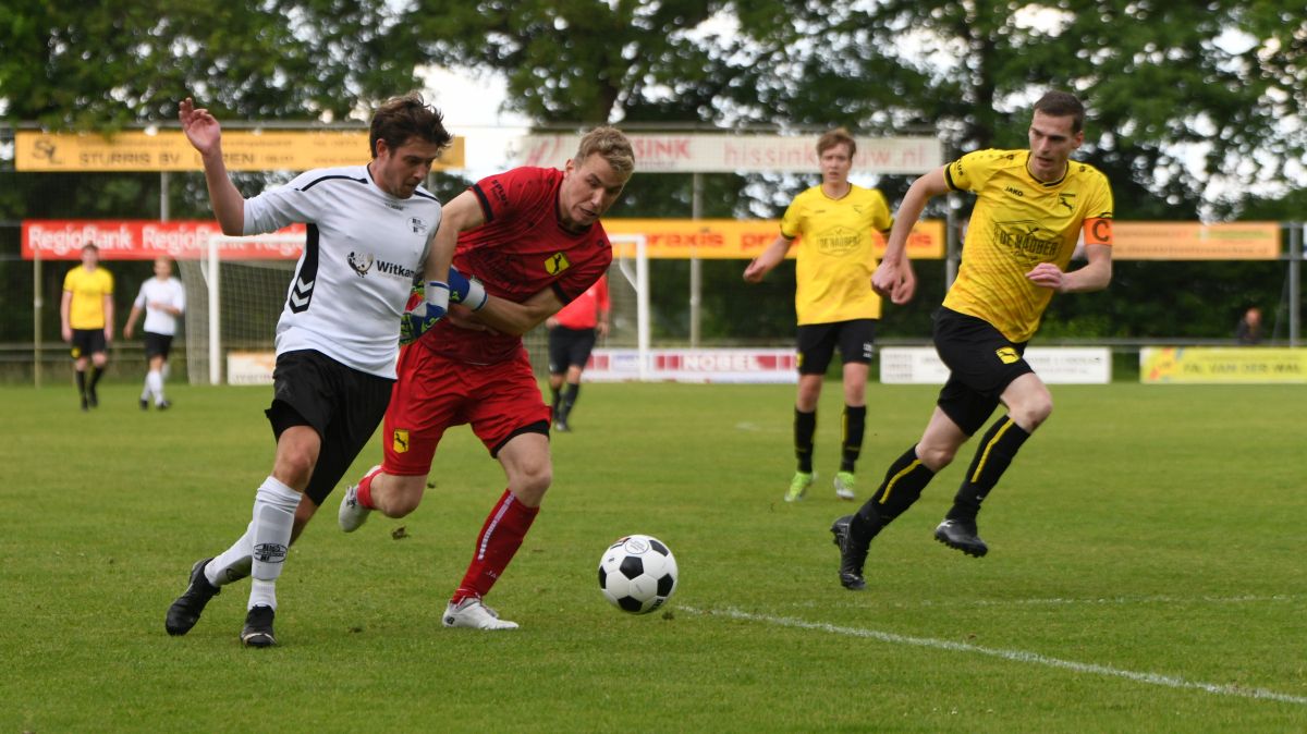 In de eerste wedstrijd na de winterstop troffen Witkampers en Ruurlo elkaar ook. In Ruurlo werd het uiteindelijk 0-3. Voor een eventuele kans op de derde periode én een zo hoog mogelijk plek op de ranglijst is de wedstrijd van vanmiddag ook een interessante. De openingsfase verloopt afwachtend. Er gebeurt nog niet heel veel voor beide doelen en zowel Ruurlo als Witkampers probeert tot een kans te komen zonder dat er grote risico's worden genomen. Niet voor het eerst dit seizoen levert de eerste echte mogelijkheid ook gelijk een Larense goal op. Net voor de twintigste minuut voetbalt Witkampers zich links achterin goed onder de druk uit. Uit de snelle tegenaanval die volgt wordt uiteindelijk Daan Hento bereikt. Hij lijkt half struikelend de bal te verliezen, maar slaagt er toch in de bal in de hoek van het Ruurlo doel te schuiven. Witkampers staat op 1-0. Na deze goal is Witkampers sterker en gaat meer het initiatief nemen. Ruurlo is echter zeker geen ongevaarlijke tegenstander. In die eerste helft lijkt een tegentreffer echt wel mogelijk en Witkampers moet goed opletten. Gelukkig wordt de marge net voor rust wat ruimer. Christian Beuzel houdt een aantal Ruurlo verdedigers bezig, speelt er één door de benen, de pass die volgt komt terecht bij Roald Straalman. Die zorgt op beheerste wijze voor de 2-0 voorsprong. Net voor rust komt Witkampers nog goed weg als een vrije trap van Ruurlo keihard op de lat terecht komt, maar uiteindelijk is de ruststand 2-0.