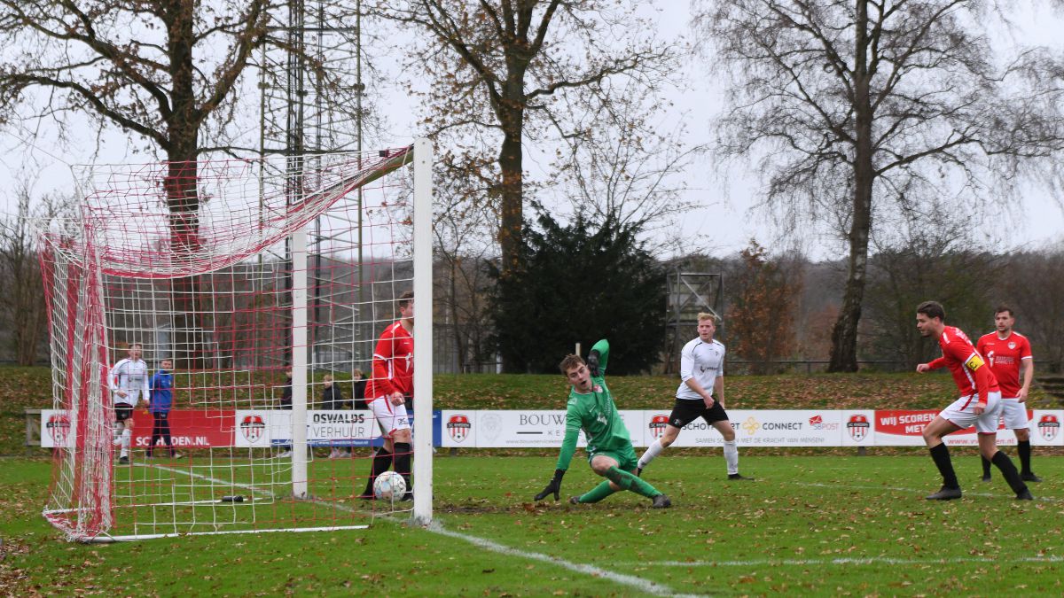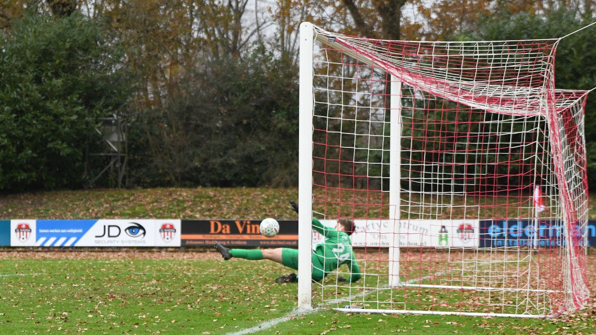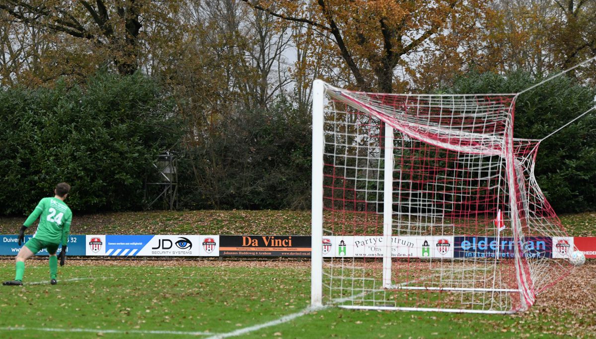 Voor rust valt ook nog de 0-2 en weer via een corner. Nu wordt de bal wat lager ingebracht. Colin Stegeman doet een mooi overstapje en Chiel Oudenampsen schuift de 0-2 binnen. Echt een fraaie goal en leuk om te zien dat ook dit soort originele varianten soms een doelpunt opleveren.