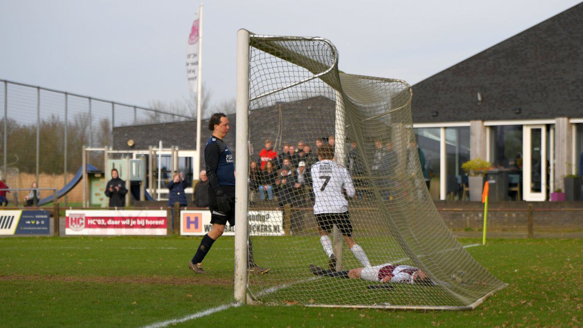 Dan volgt het tweede cruciale moment van de middag. HC03 lijkt op 3-3 te komen, de goal wordt afgekeurd en in de ophef die volgt krijgt een van de spelers van de thuisploeg ook rood.