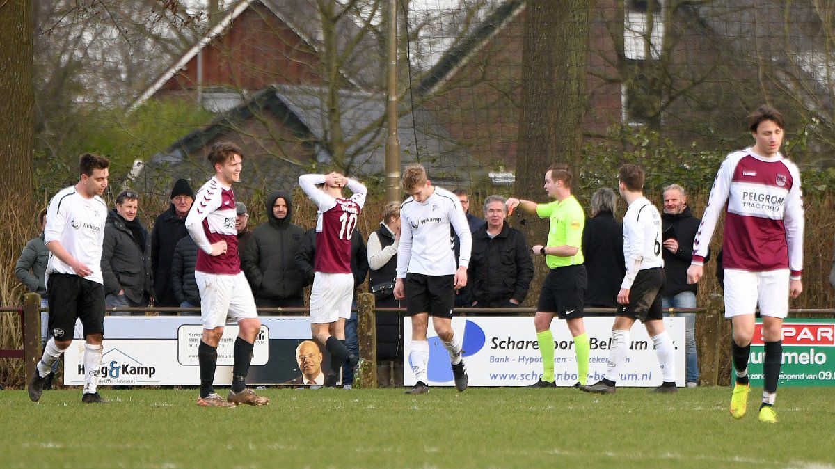 En dan, na ongeveer een uur spelen, wordt alles compleet anders. Joost Pakkert laat zich provoceren en ontvangt na een schermutseling in het doelgebied de rode kaart. Reservekeeper van vanmiddag is Jorik Mombarg, hij moet het Larense doel gaan verdedigen in een situatie die er nu toch wat minder rooskleurig uitziet.