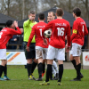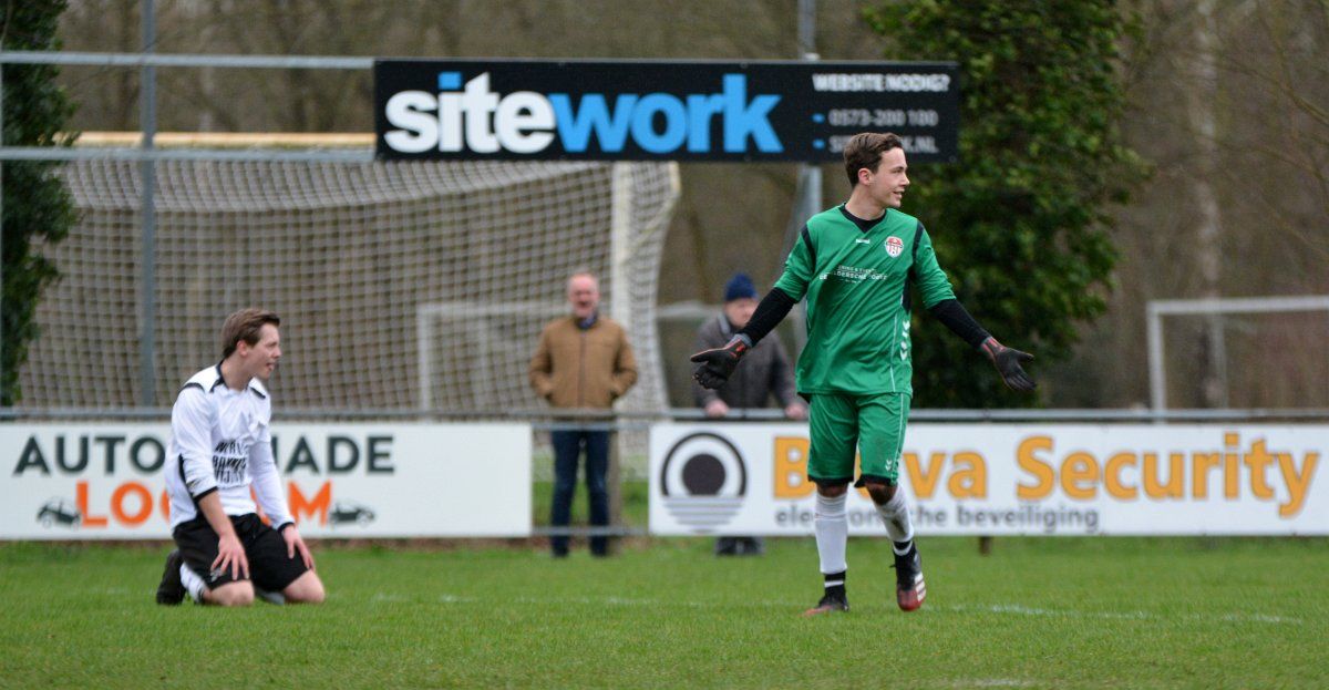 Vlak na dit moment lijkt de wedstrijd een verrassende wending te krijgen. Jordy Woestenenk wordt bedient met een dieptepass en wordt gestuit door de doelman. Waarbij iedereen uit lijkt te gaan van een rode kaart spaart de arbiter van dienst de keeper en geeft slechts geel.