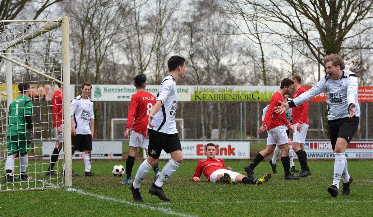 Een kwartier voor tijd valt de definitieve beslissing. Daan Hento bedient Bryan Brummelman met een slimme hakbal waarna een speler van Rheden de aanval ongeoorloofd onderbreekt. Een penalty is het gevolg welke keurig wordt binnengeschoten door Daan Hento. In de resterende speeltijd gebeurt niet veel meer en zo wordt een stormachtige middag afgesloten met opnieuw 3 punten voor Witkampers.