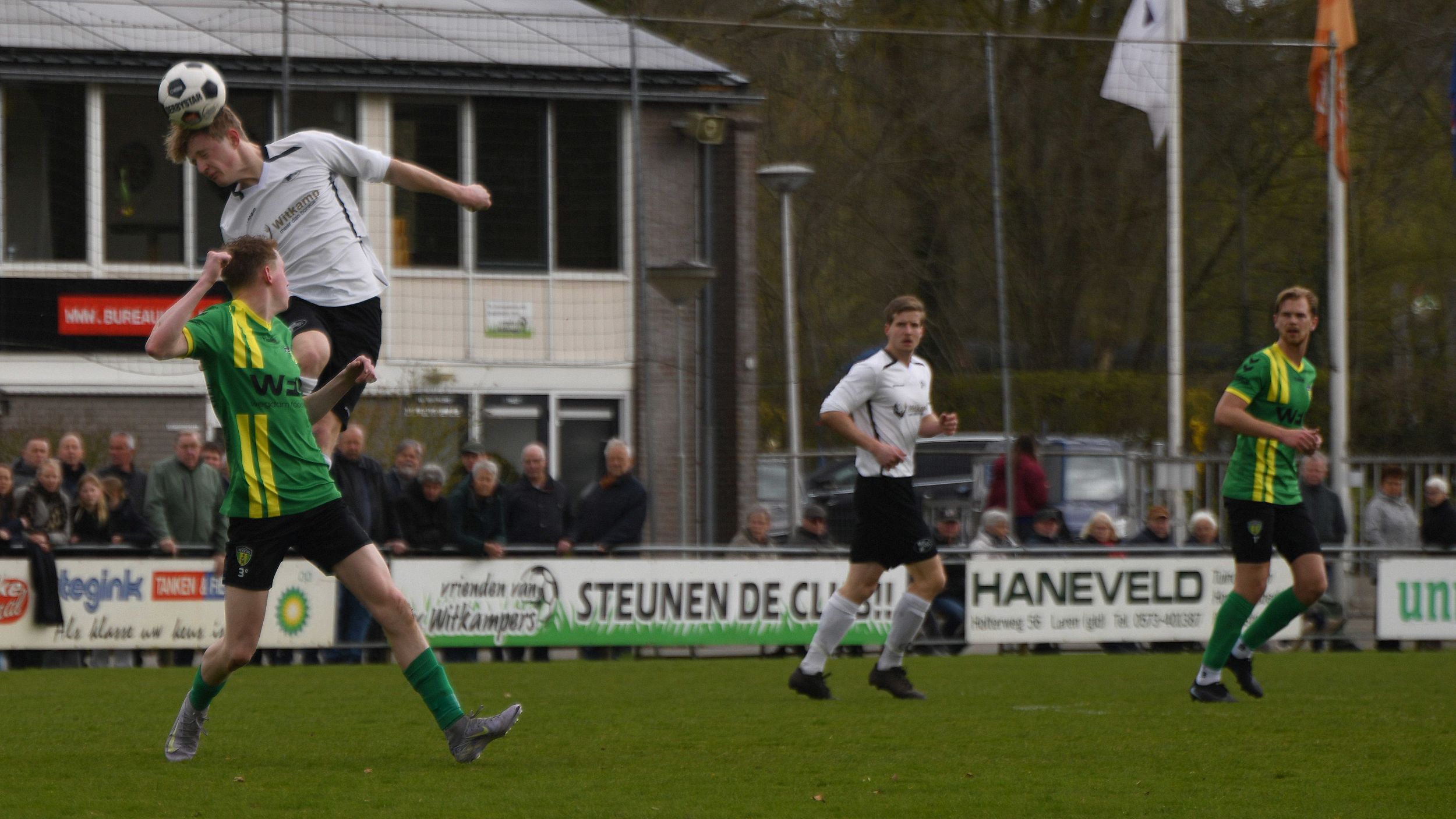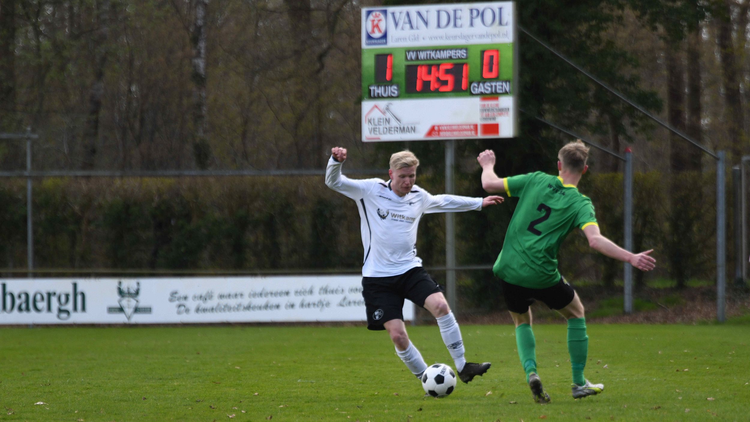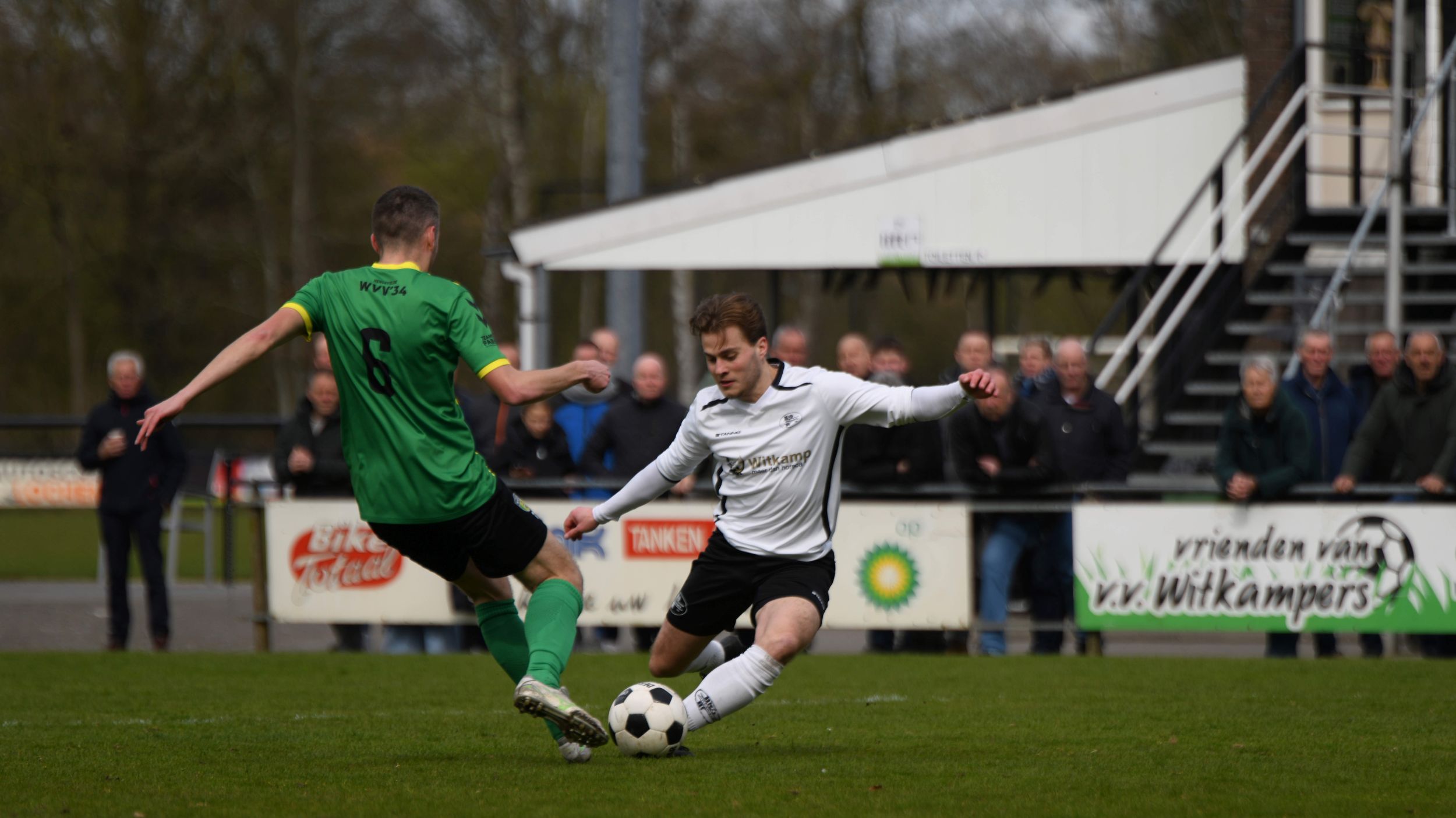 Gelukkig voor de thuisploeg is WVV’34 opnieuw niet erg overtuigend in balbezit en wordt een halve terugspeelbal goed onderschept door Colin Stegeman. Hij weet er nog één sprint uit te persen en met een mooi bekeken schot in de verre hoek valt de 2-1. Twee minuten later valt tot vreugde van het thuispubliek de beslissing. Colin Stegeman is opnieuw aan de bal, zijn breedtepass op Lucas Vermeulen is op maat en de 3-1 is een feit. Witkampers boekt vandaag een zeer belangrijke overwinning. De concurrentie op de ranglijst verspeelt punten en zo staan de Larenaren weer wat verder boven de streep. Komend weekend wordt er niet gevoetbald. Zondag 12 april reist Witkampers af naar Weerselo voor de wedstrijd tegen UD W.