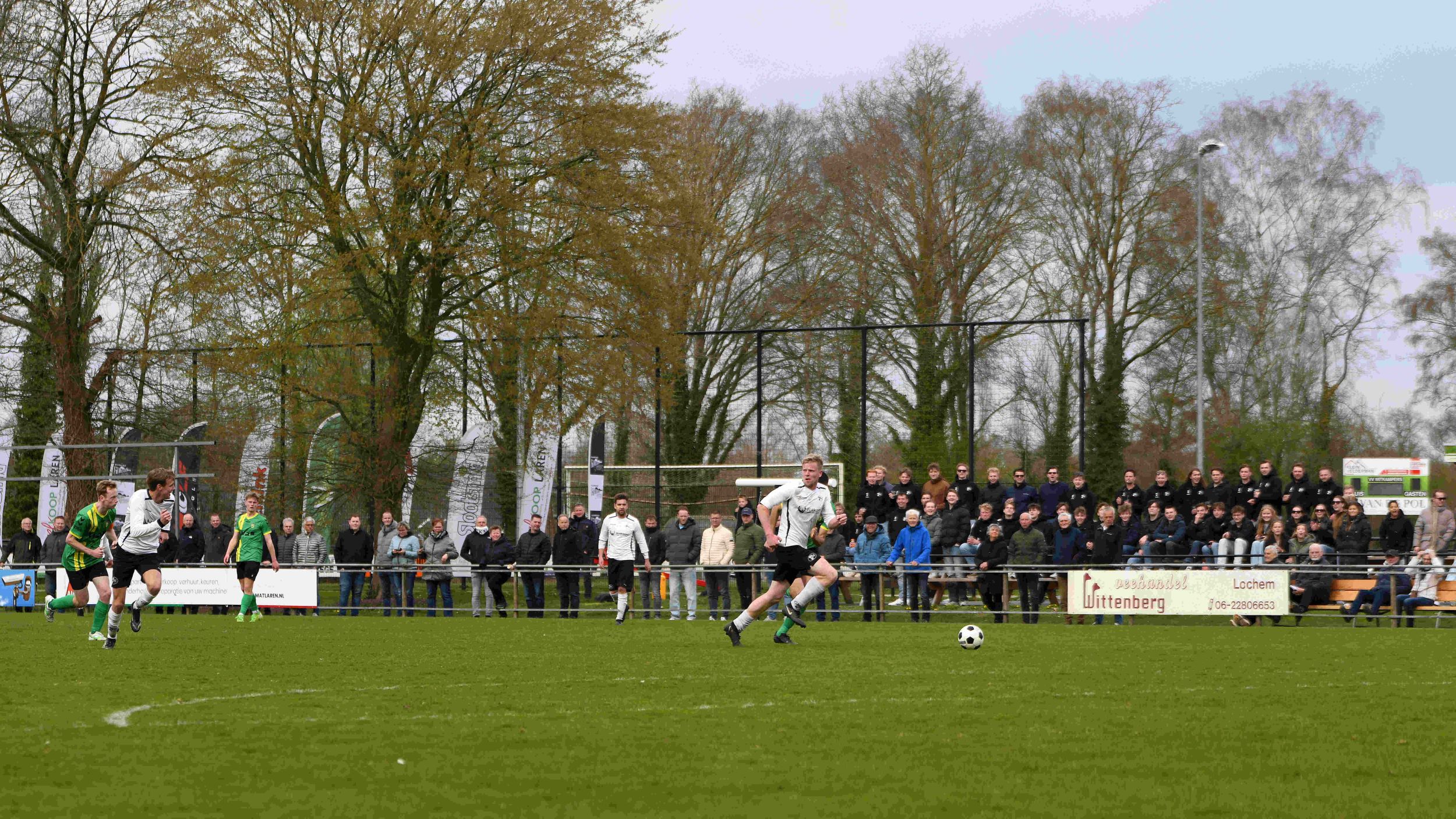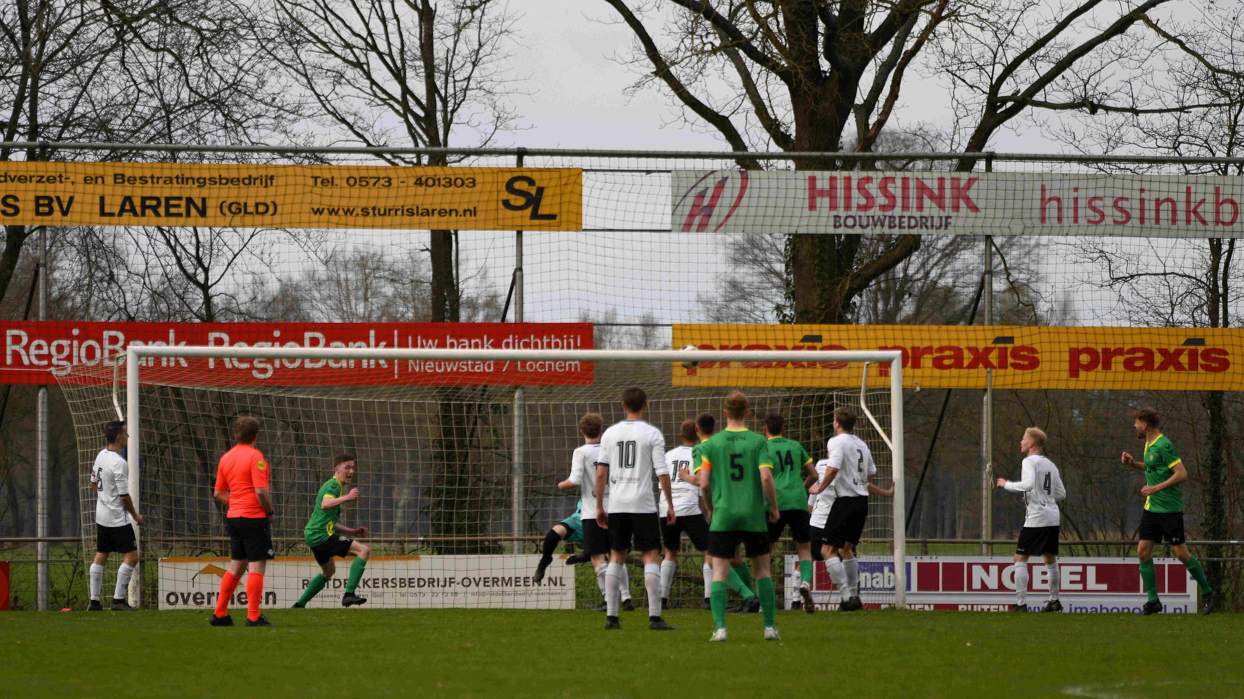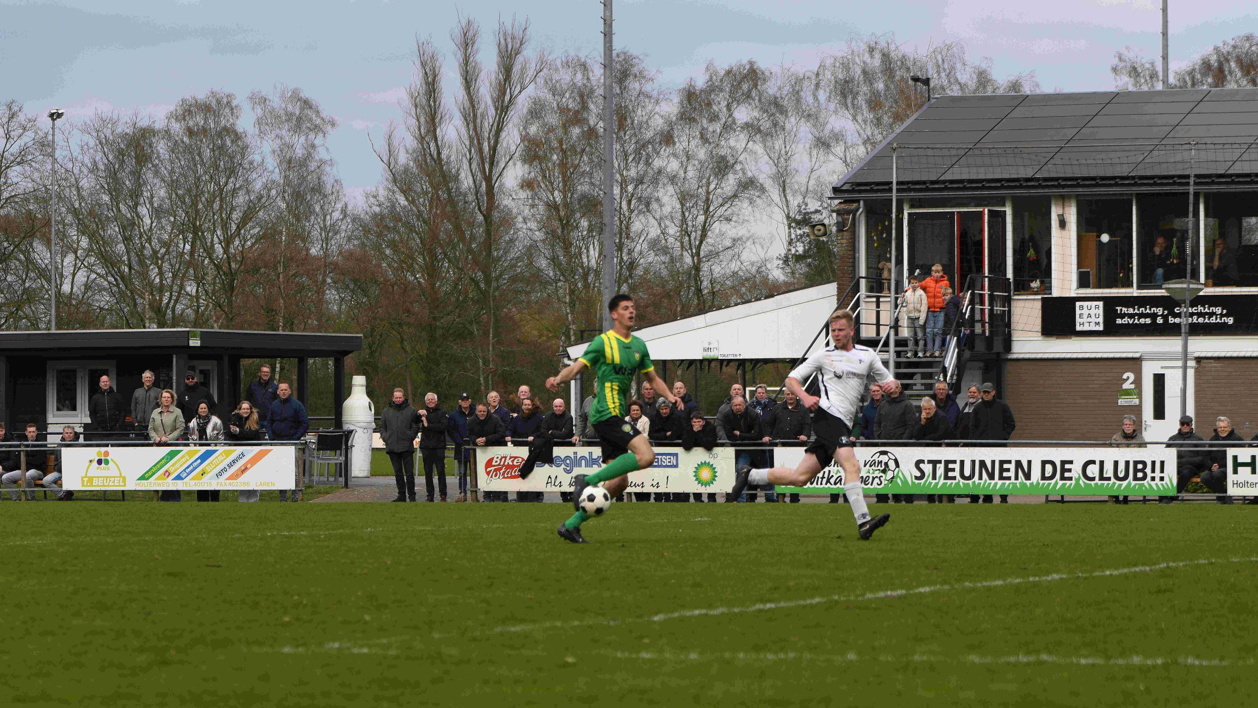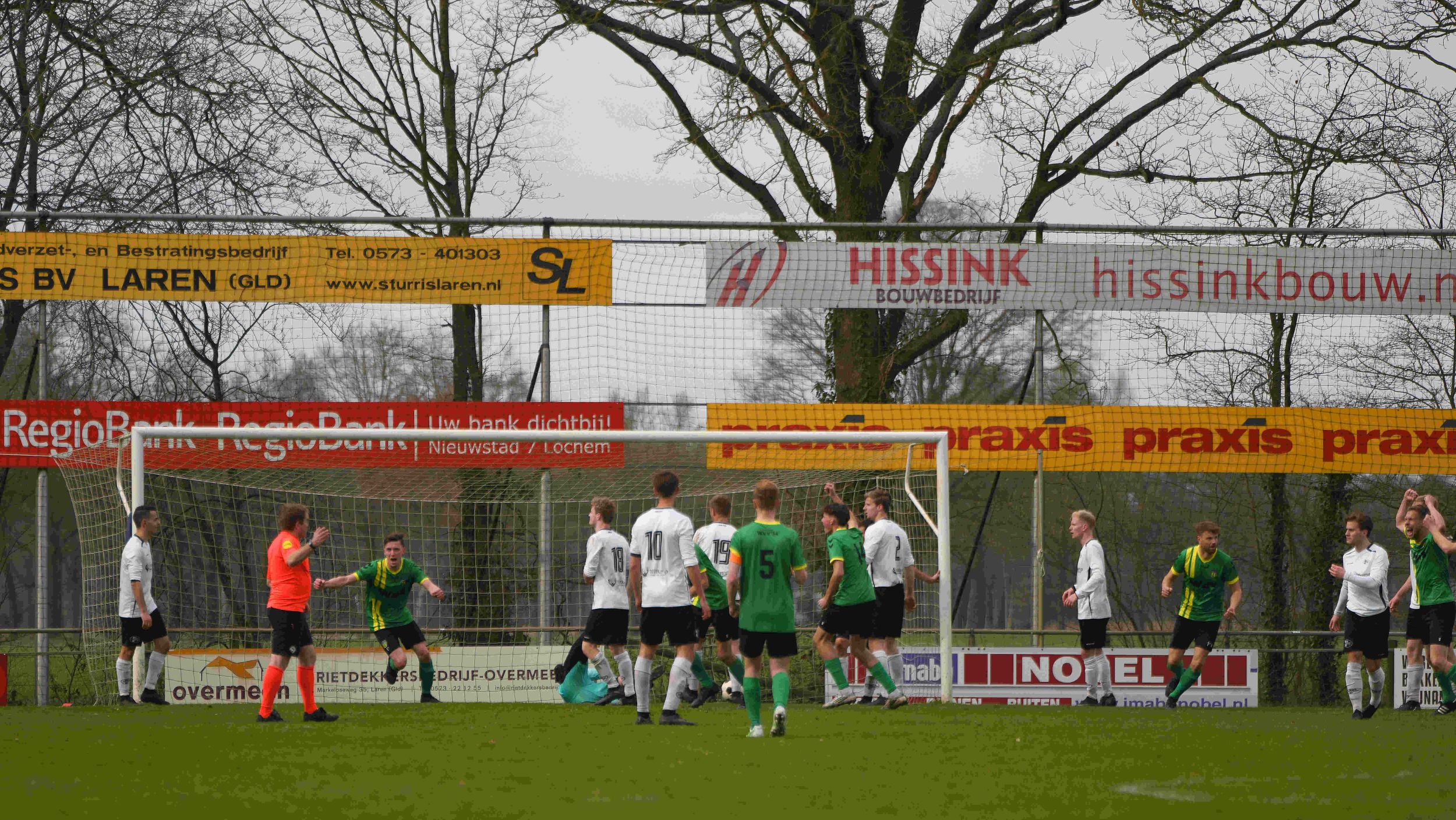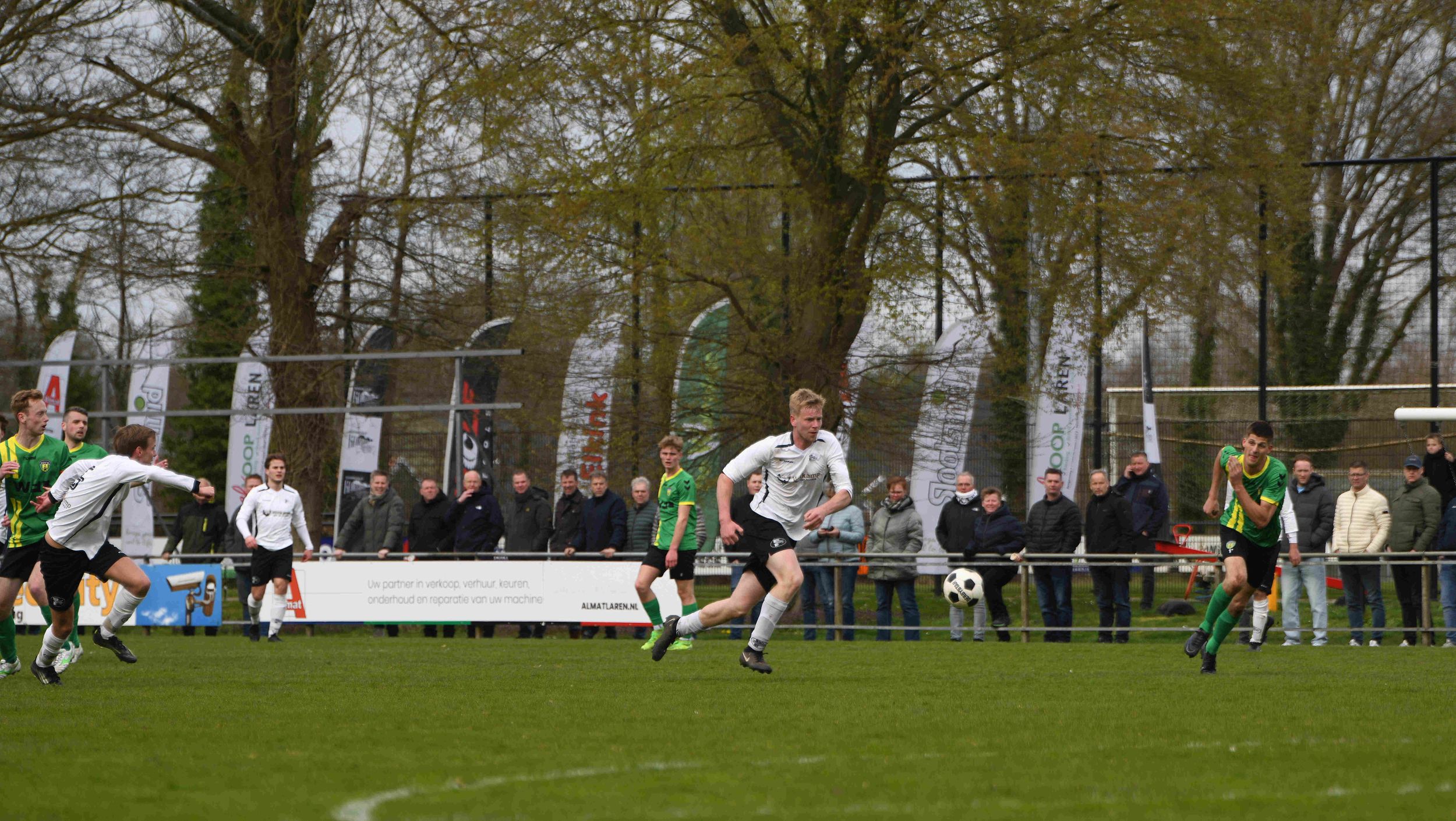 Witkampers vliegt uit de startblokken en dat komt, doordat WVV’34 in de opbouw van achteruit moeite heeft met het veld. In combinatie met goed druk zetten zorgt dit voor een bijzonder vroege voorsprong. Bryan Brummelman is zeer alert als de doelman van WVV’34 de bal wat onhandig verwerkt en hij tikt de 1-0 binnen. Een fijn begin voor de thuisploeg en de gasten uit Hengevelde hebben het in de openingsfase lastig. Witkampers op haar beurt creëert ook niet heel veel, maar is wel wat meer in balbezit. De Larenaren nemen net zoals in de heenwedstrijd in Hengevelde niet veel risico. De speelwijze van WVV’34 komt ook overeen met het eerste treffen. De gasten zijn echt heel gevaarlijk in de dode spelsituaties. Zowel bij corners als bij vrije trappen wordt de vijandelijke zestien meter vol gezet met grote en fysiek sterke spelers. Ook valt wederom op dat WVV’34 veel kleine en grote overtredingen maakt. Gelukkig heeft de scheidsrechter van vandaag hier goed het oog op.