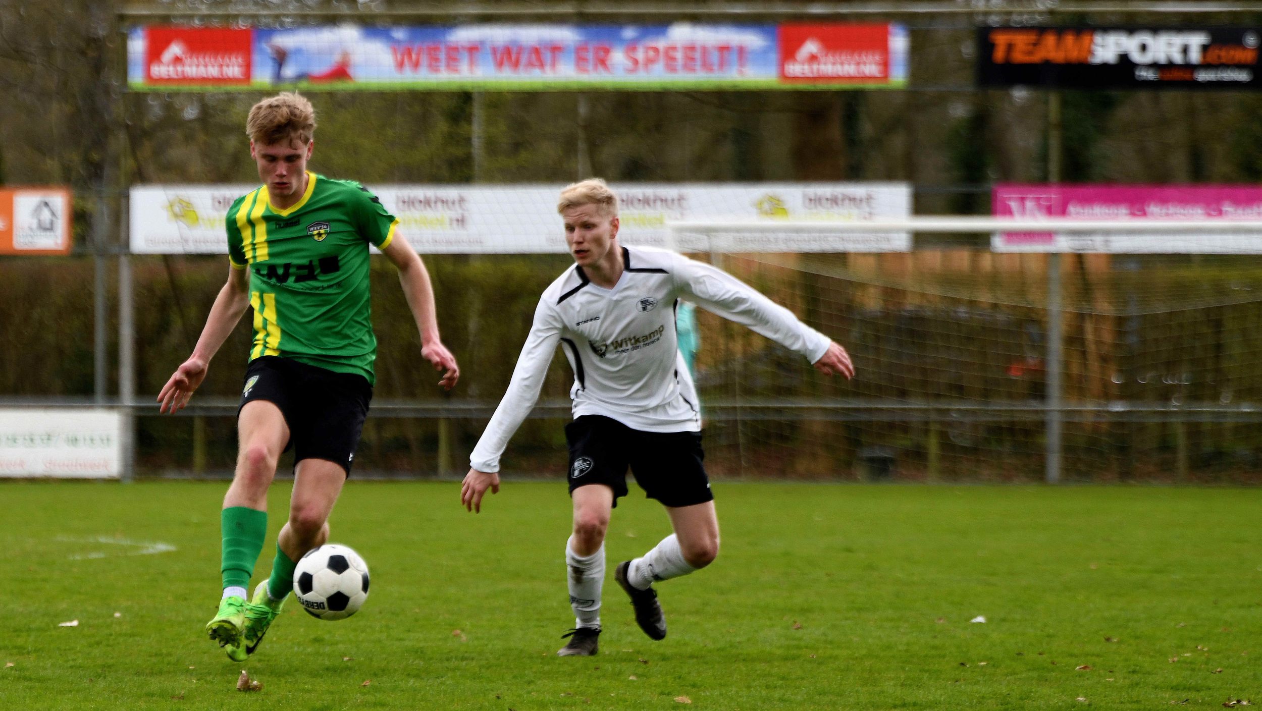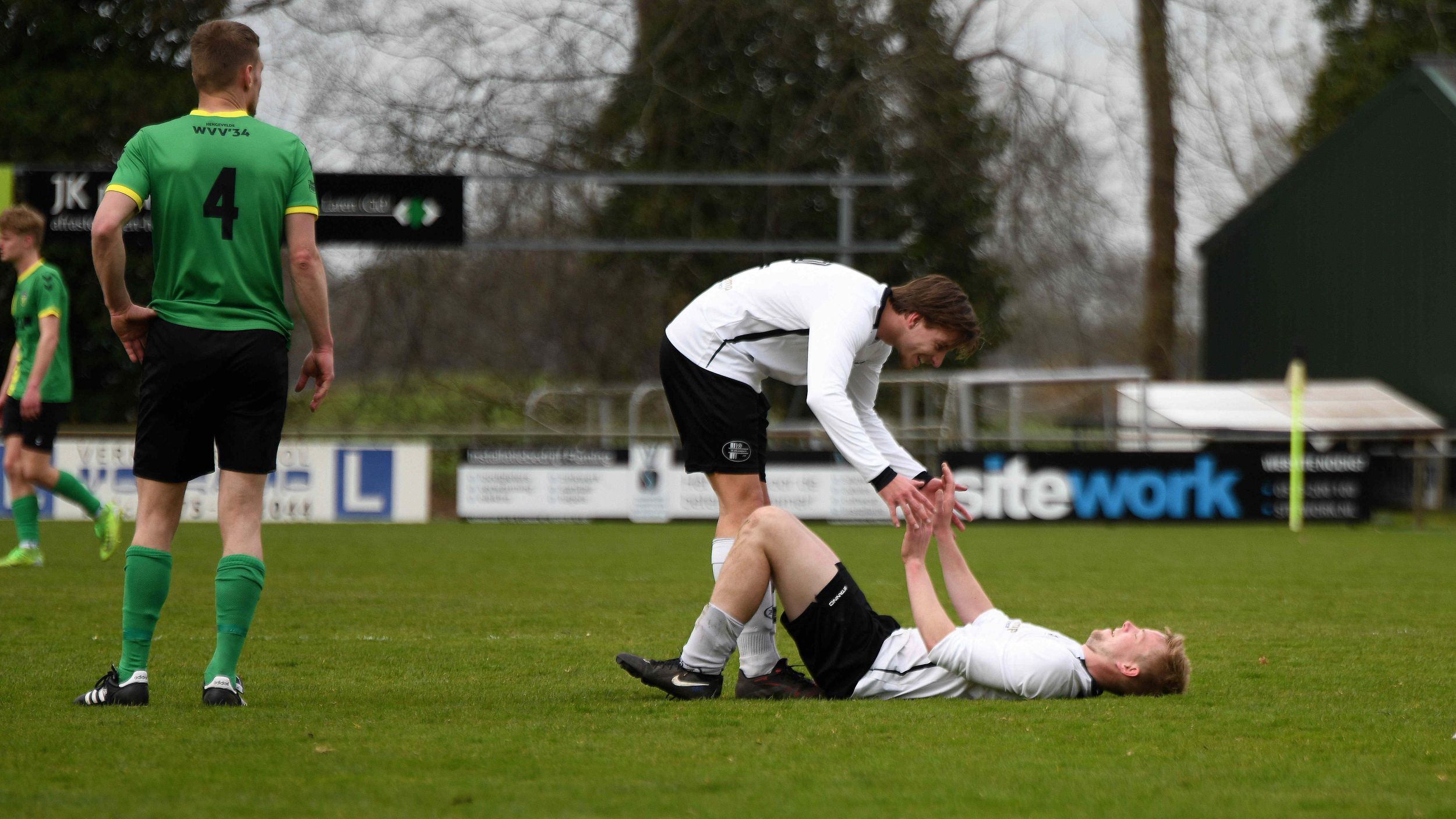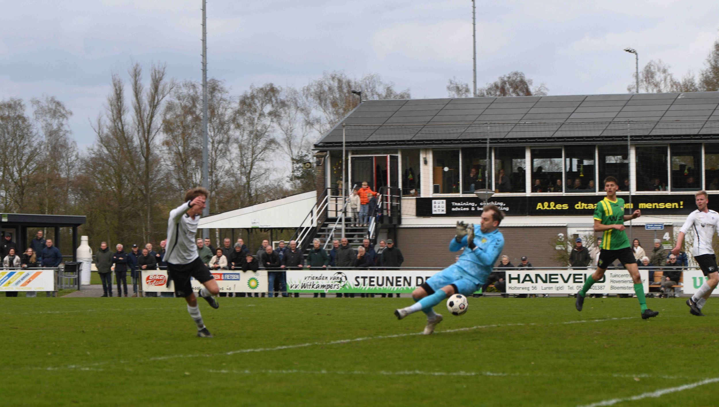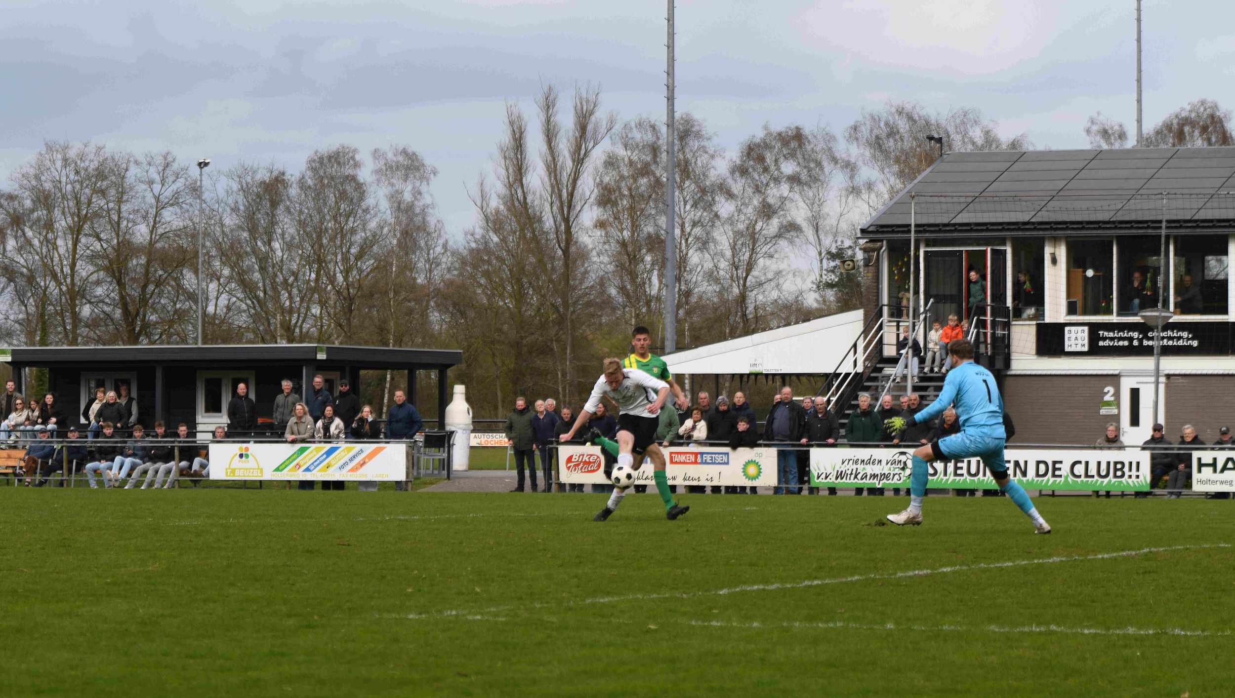 Zo kwetsbaar als de Hengevelders in de eerste helft oogden zo sterk komen zij uit de kleedkamer. Binnen een minuut spelen vliegt een hard schot op de lat en de jacht op een gelijkmaker is echt ingezet. Witkampers heeft het lastig en moet moeite doen om niet te snel een 1-1 te gaan weggeven. WVV’34 laat de opbouw van achteruit nu achterwege en gaat veel directer spelen. Witkampers krijgt iets meer ruimte voor een tegenstoot, maar het is vooral tegenhouden. Daarbij is het wel prettig dat het spel regelmatig stil ligt, want ook in de tweede helft zijn er de nodige overtredingen te zien. Toch valt de gelijkmaker, bijna vanzelfsprekend uit een corner. WVV’34 gaat op zoek naar een voorsprong en opnieuw eindigt een schot op de lat. Witkampers blijft op de been en een gelijkspel lijkt nog helemaal niet zo’n gek resultaat.