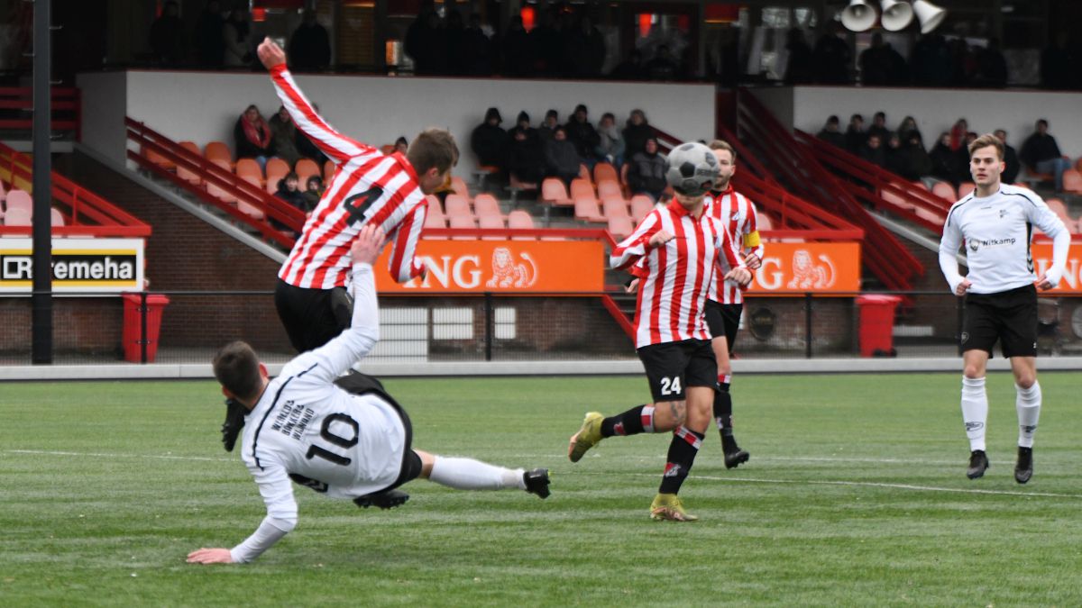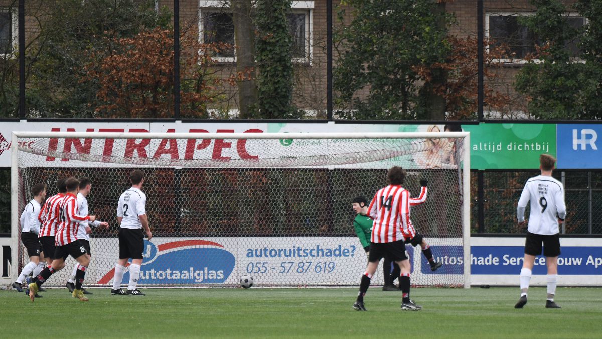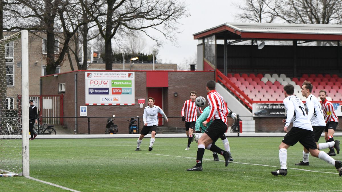 Met een 3-3 gelijkspel in Vaassen tegen KCVO struikelde Witkampers de winterstop in. Gelijk na deze korte onderbreking is er een nieuwe kans om goede zaken te doen voor de bovenste plaatsen in de derde klasse B. Dit moet dan wel gelijk gebeuren tegen de huidige nummer twee, Robur et Velocitas uit Apeldoorn. Op sportpark Kerschoten wordt gespeeld onder niet al te prettige omstandigheden. Het is een paar graden boven het vriespunt en het waait behoorlijk.