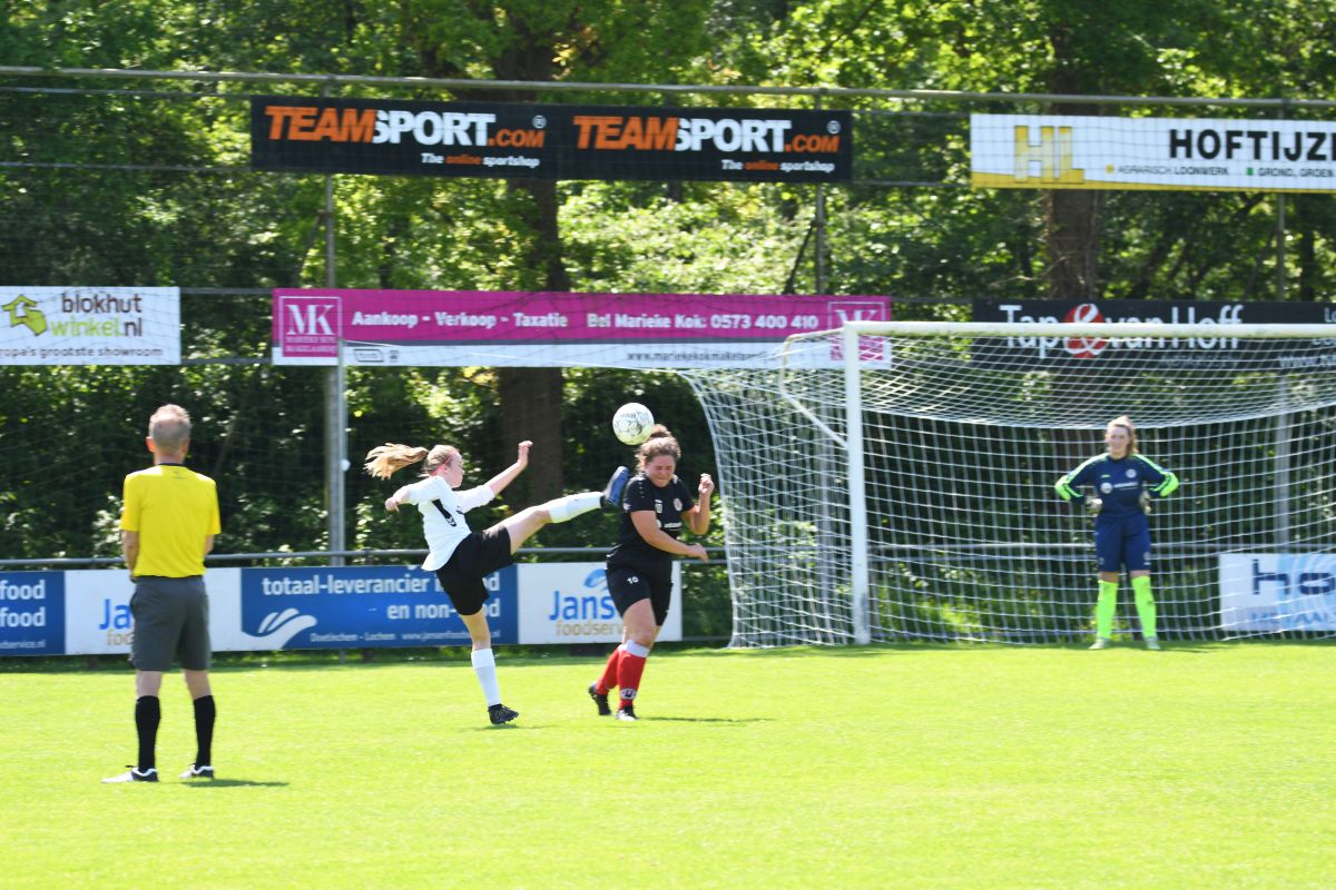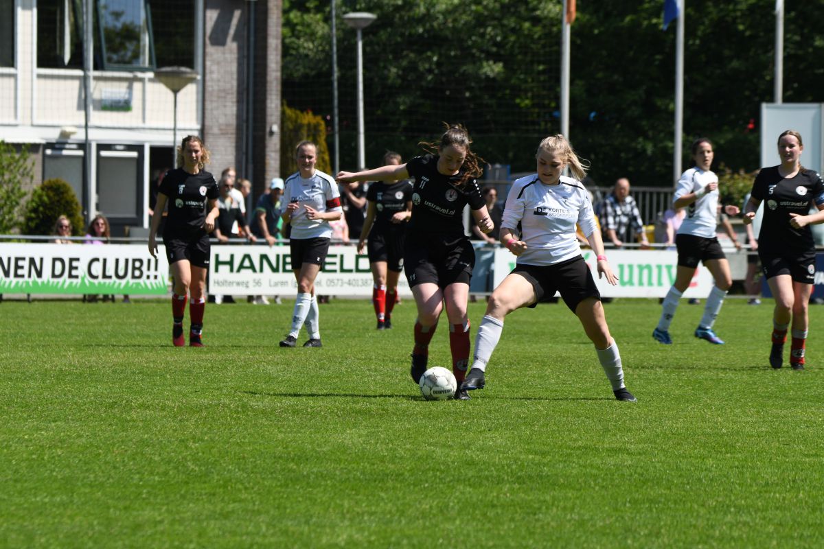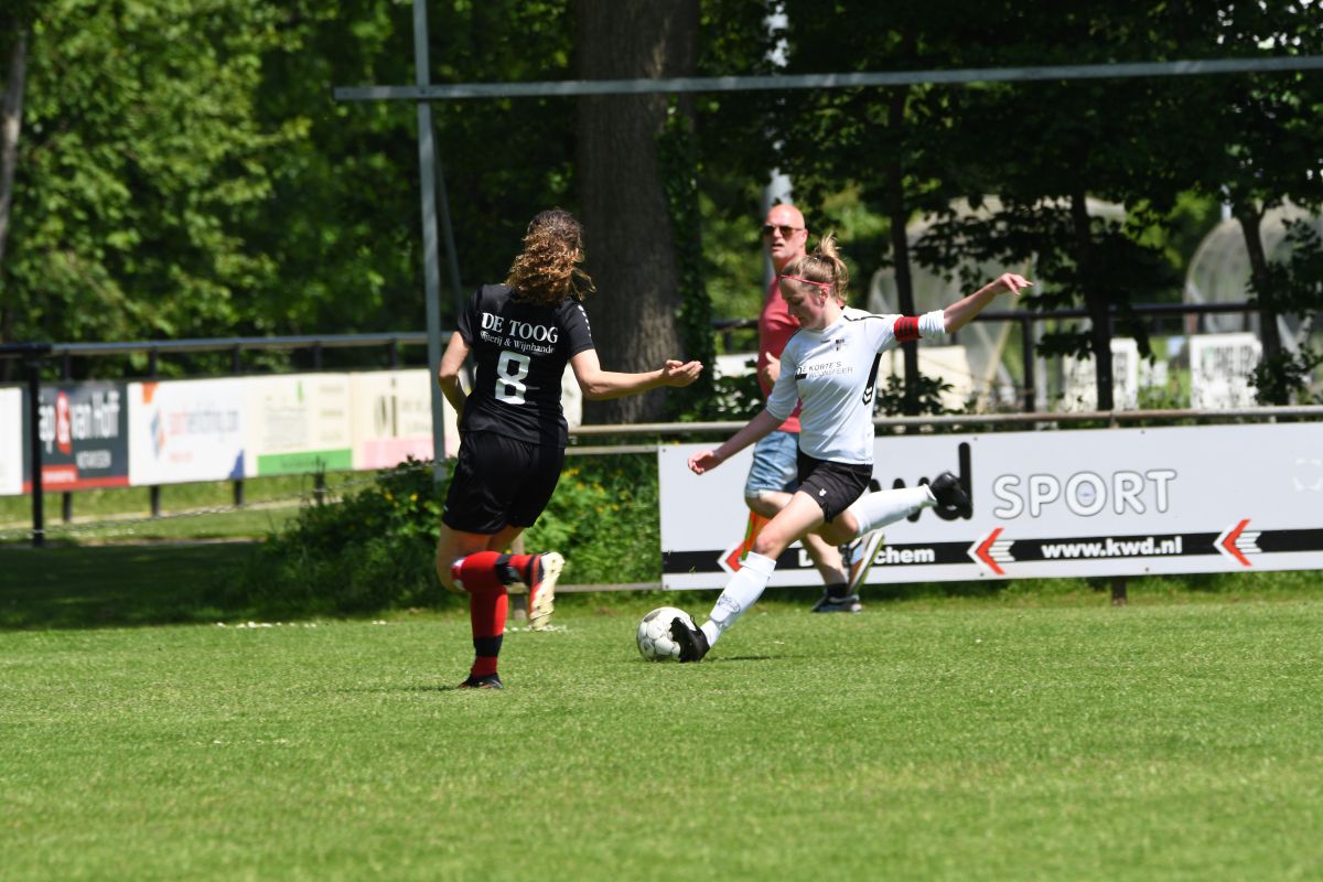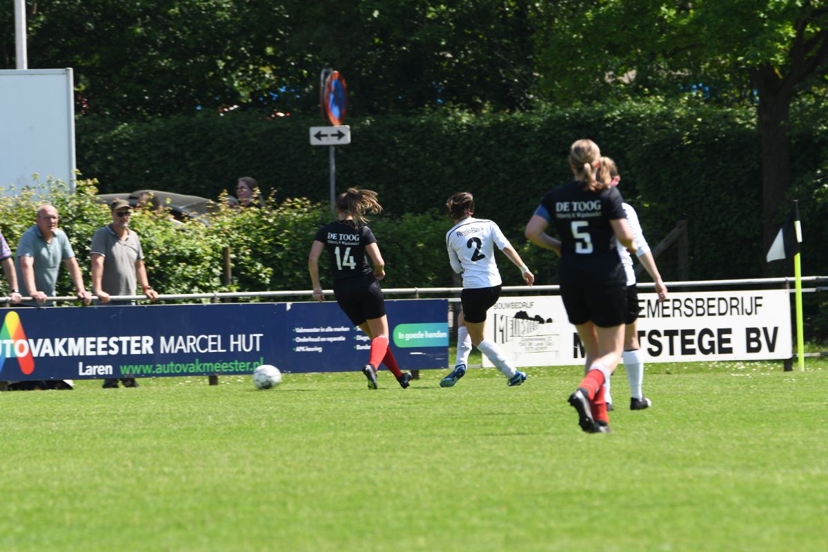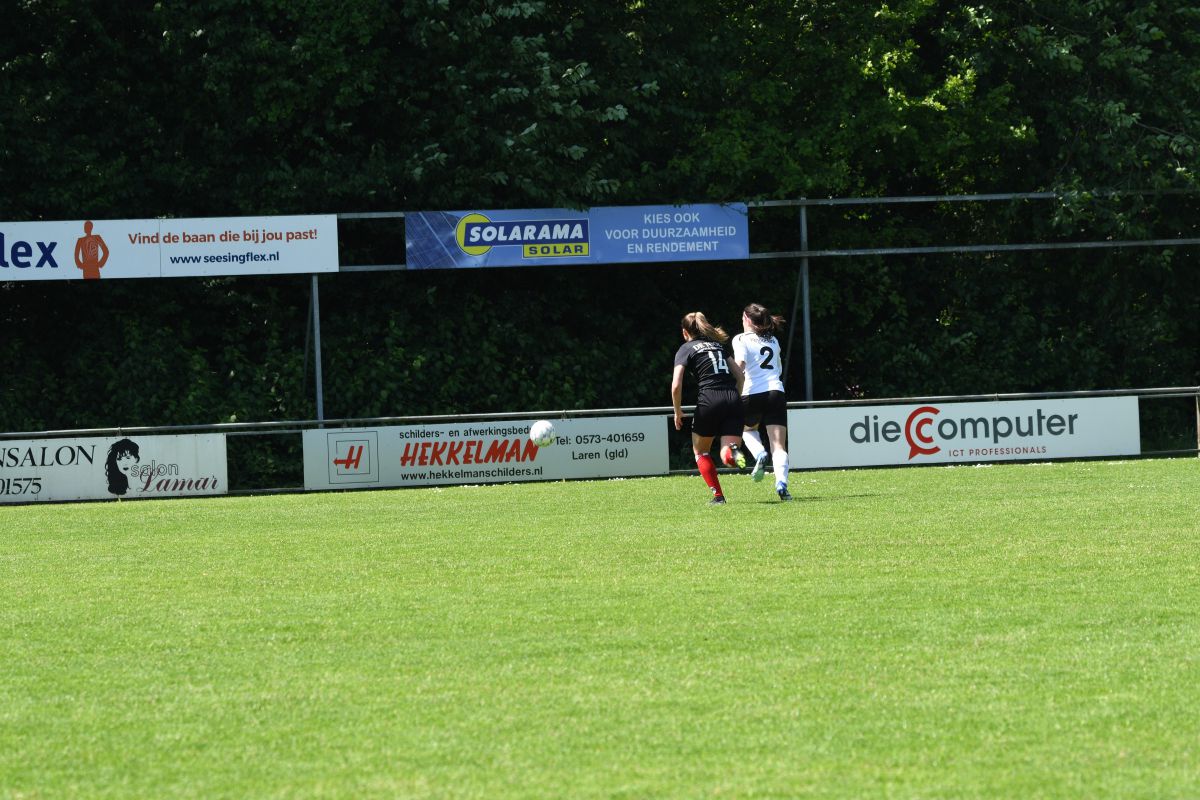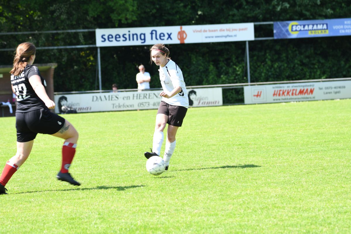 Tweede helft gaat van start. In minuut 48 een overtreding van de tegenstander op ons en met als resultaat een goede vrije trap. Maar helaas te zacht genomen door Rinus. Een grote kans blijft uit. Een paar minuten later kan Beuningse Boys vanaf de linkerkant opbouwen, de bal wordt voorgezet en kan zachtjes worden binnen getikt. Stand 1-2 na 53 minuten spelen. Nu moeten de vrouwen van Witkampers een goal maken om zichzelf veilig te spelen in de competitie. We gaan meer aanvallend spelen en dit resulteert er in dat er meer kansen worden gecreëerd. Na 60 minuten voetballen draait Daphne mooi weg in de 16 meter en wordt vervolgens onderuitgehaald, een terechte penalty, maar onze scheidsrechter denkt daar anders over. Geen strafschop voor Witkampers. In de 63e minuut krijgen wij een vrije trap op randje 16 meter. Deze wordt niet omgezet in een grote kans. In de 67e minuut zet Witkampers weer een aanval op, de bal bleef hangen en Romy kan hem over de keeper heen krijgen. GOAL!! En het staat weer 2-2. 70e minuut wissel: Sjon en Bodine erin voor Romy en Els. Ook de tweede helft kent een drinkpauze. Het worden spannende laatste 15 minuten. Wissel: Marleen erin voor Dapnhe. Beuningse Boys zet vol druk, verschillende corners volgen elkaar op. 90e minuut krijgt de uitploeg een vrije trap, deze wordt binnen gewerkt. Maar buitenspel… we komen goed weg. Nog een paar spannende minuten om te spelen. Maar de vrouwen uit Laren geven alles wat ze hebben.