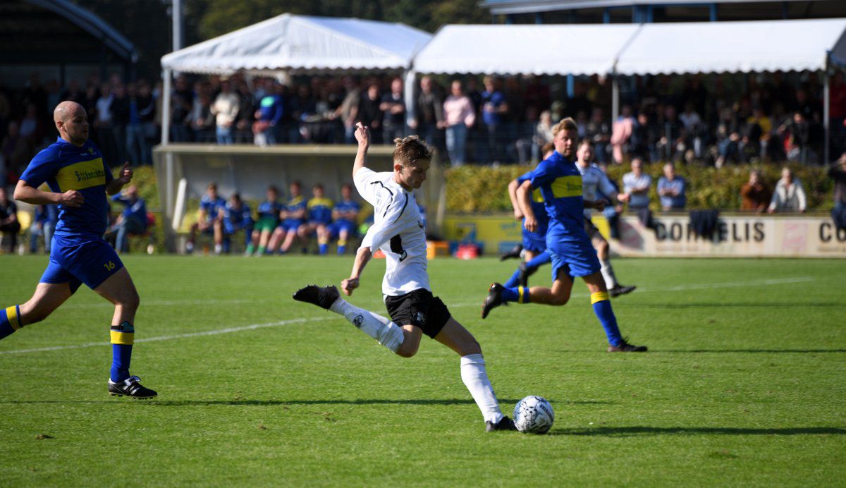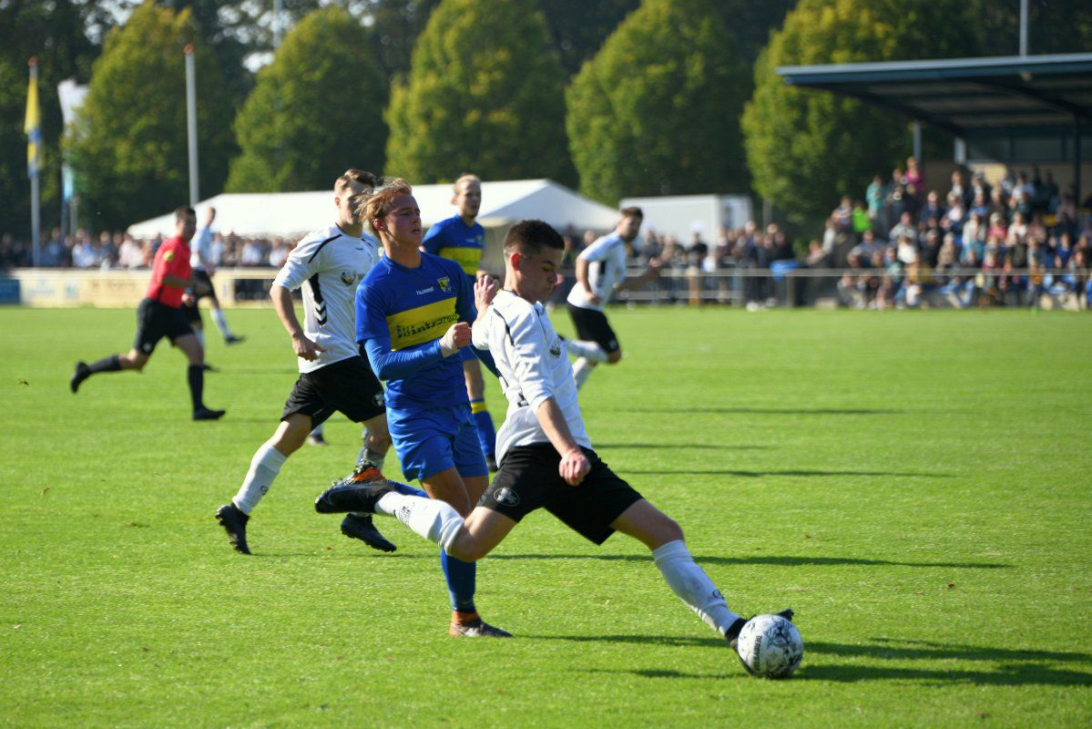 Net voor rust krijgt uitblinker van de eerste helft Christian Beuzel een flinke schop te verwerken van zijn directe verdediger. Deze mag zeker niet klagen, maar doet dit wel, dat de scheidsrechter (die overigens een prima wedstrijd fluit) het bij een gele kaart houdt.
