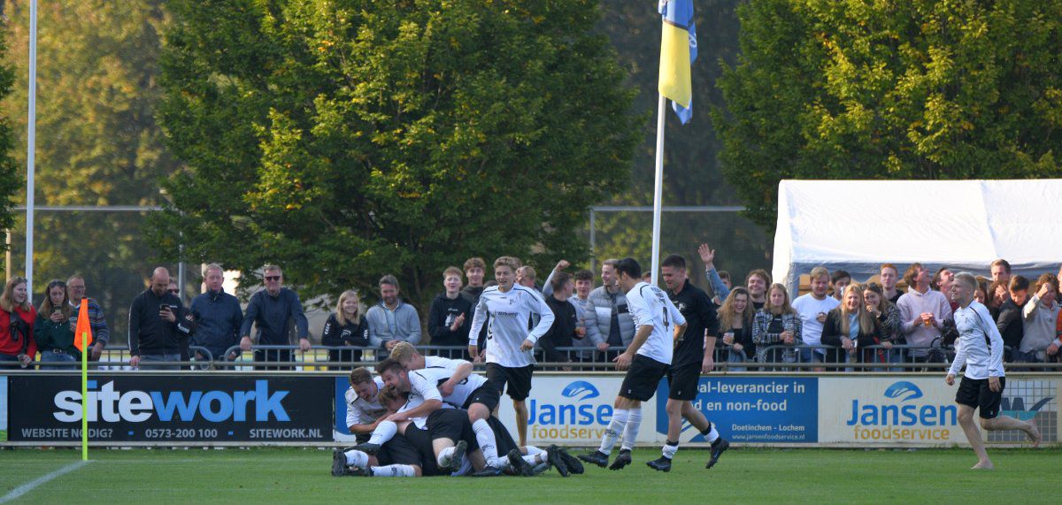 In de eerste minuut van de blessuretijd valt de definitieve beslissing. Daan Hento, die geen geweldige wedstrijd speelt, sluit de middag met een formidabele goal af. Eerst soleert hij langs ongeveer de hele Lochem defensie om vervolgens vanuit een lastige hoek keihard af te ronden, hoog in het doel. Een fraai einde van een boeiende derby met de eerste 3 punten voor Witkampers van dit seizoen.