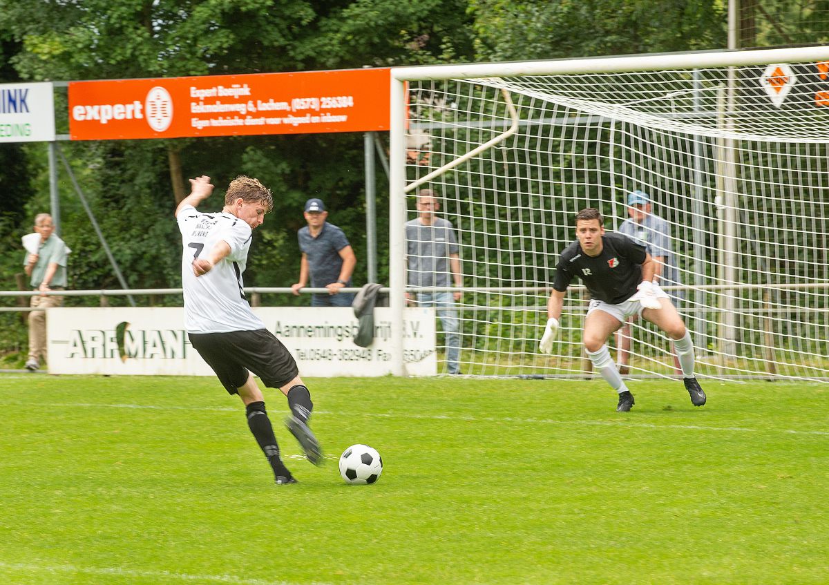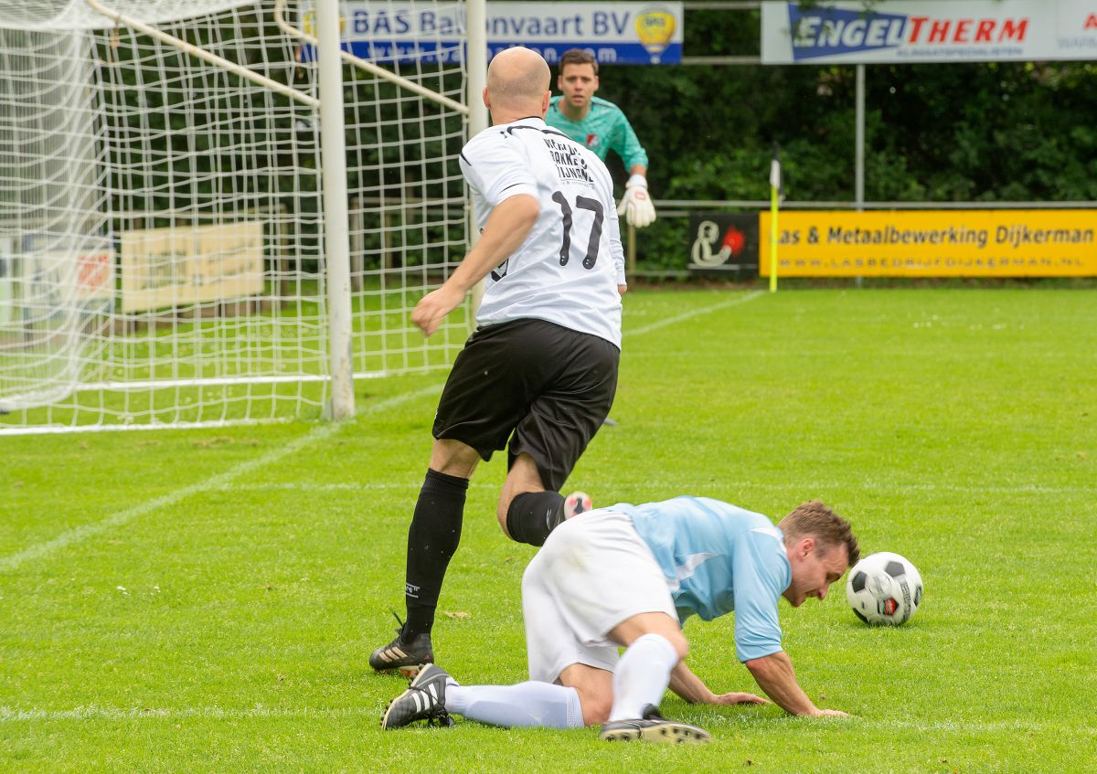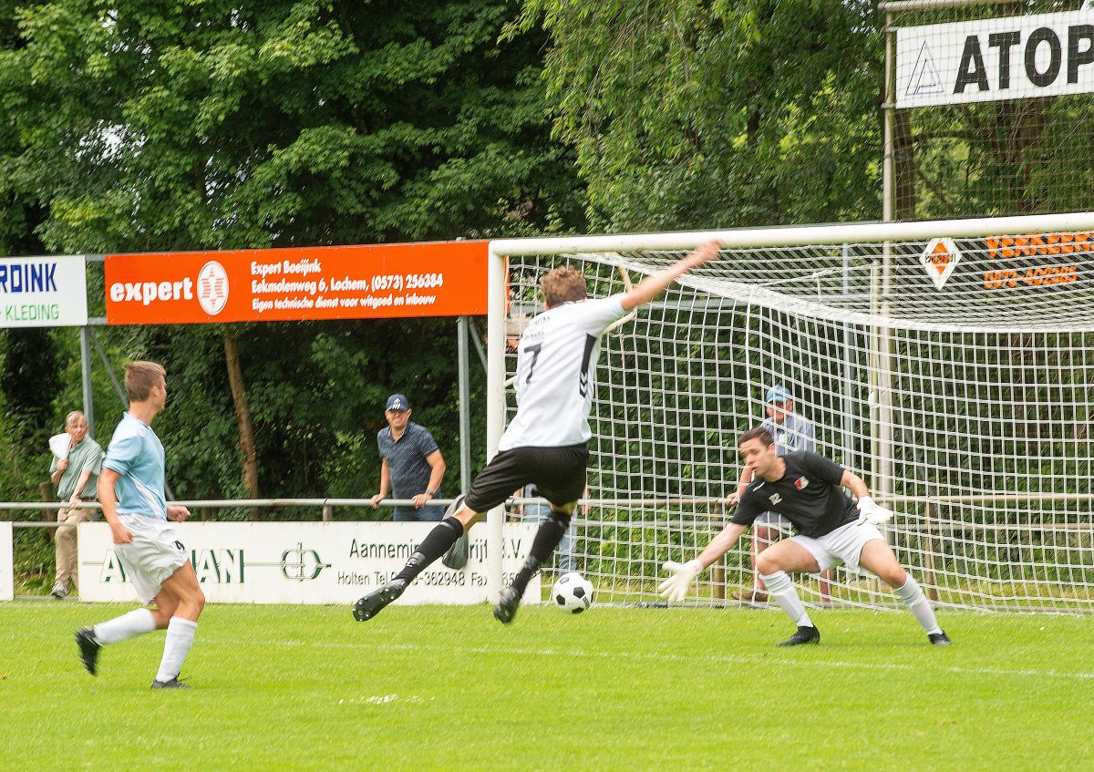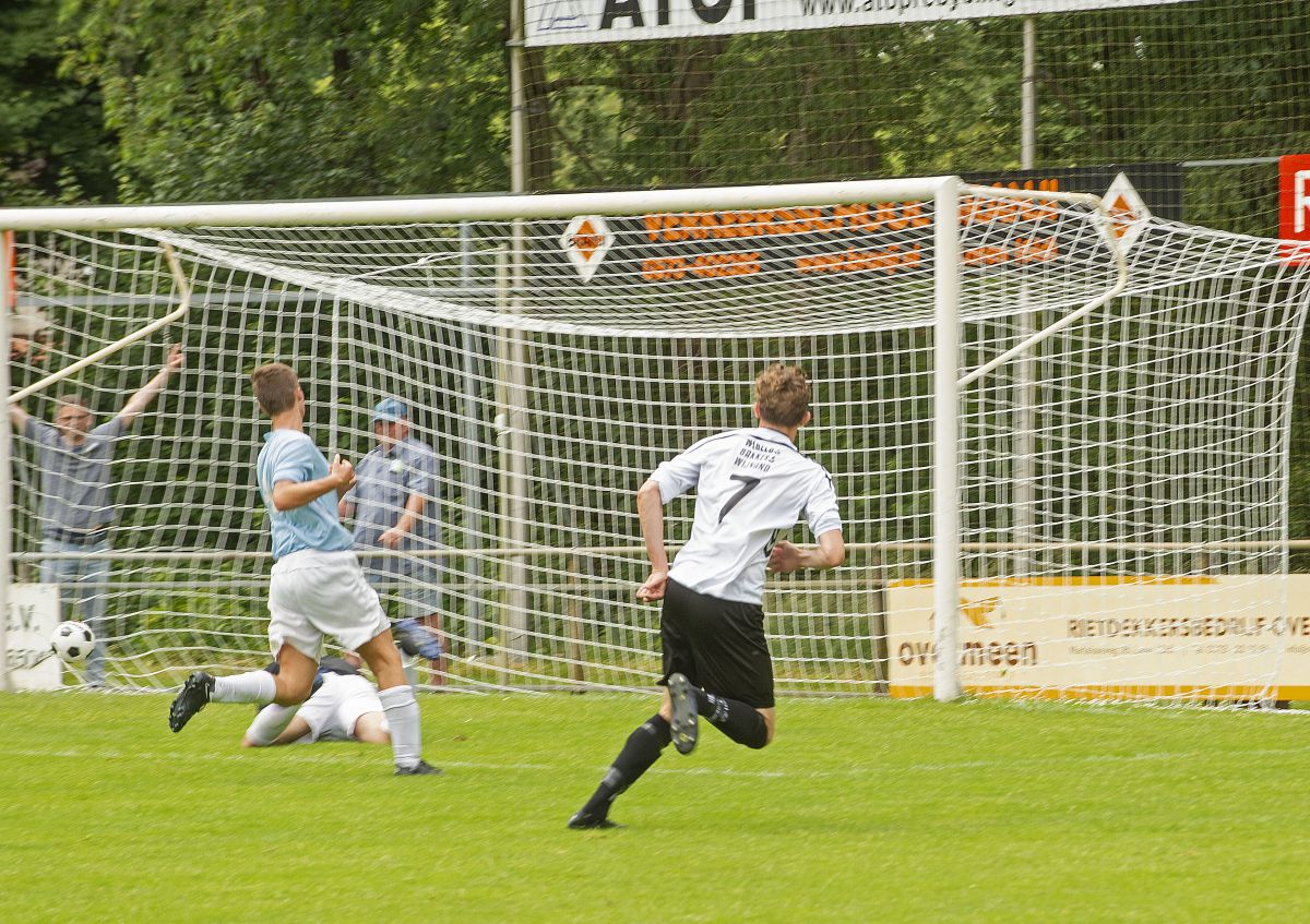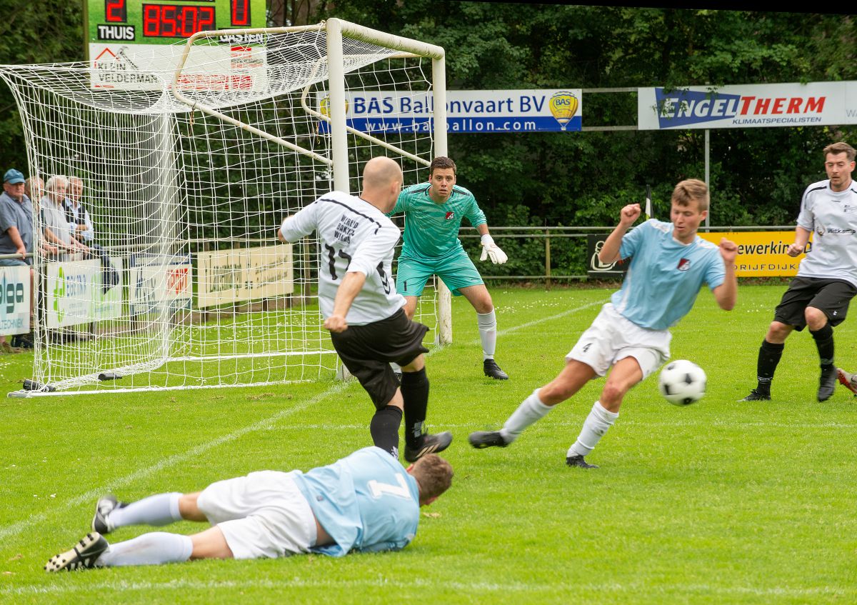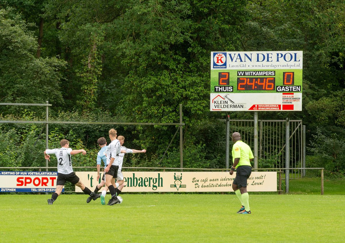 Toen beide teams elkaar troffen in januari was Robur veel effectiever dan Witkampers. Vandaag zijn het de Larenaren die bijzonder effectief omgaan met de kansen die het krijgt. Om zeker te zijn van een plek in de nacompetitie is een overwinning voor Witkampers het meest veilige scenario. Robur lijkt het allemaal wat al te makkelijk op te nemen vanmiddag en Witkampers gaat er vol voor. Na iets meer dan een kwartier spelen opent Christian Beuzel de score. Zijn schot in de verre hoek gaat heel beheerst net naast de paal binnen. Nog geen tien minuten later valt ook de 2-0. Uit een corner kopt Jur Wilgenhof de bal net voorbij de tweede paal knap binnen. Daarbij valt wel op dat de Robur defensie kwetsbaar oogt. Witkampers speelt op haar beurt een prima eerste helft, wint de meeste duels en heeft controle over de wedstrijd.