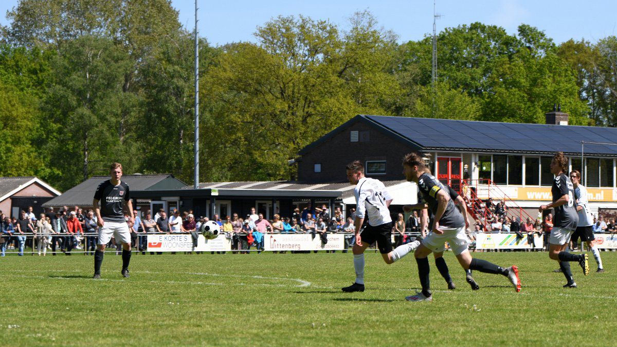 In de openingsfase lukt dit prima. Witkampers heeft het balbezit, komt tot een paar kansen en een voorsprong voelt als iets dat bijna als vanzelf moet gaan komen. Na iets meer dan een kwart wedstrijd is het dan ook zover. Via een ingooi en mooie actie mag Raoul Haijtink tekenen voor de eerste goal van de middag. Een fraaie goal van de aanvallende middenvelder en gezien het spelbeeld ook zeker een terechte voorsprong. Het volgende noemenswaardig moment is voor Witkampers minder positief. Wouter Schreibelt lijkt een wat onhandige overtreding te maken op de achterlijn maar de bal gaat wel op de stip. Deze penalty wordt benut en zo staat Witkampers wat ongelukkig weer op 1-1. De Larenaren opereren in deze fase wat nerveus en geschrokken, helemaal als HC03 een flinke kans krijgt om zelfs op voorsprong te komen. De eerste helft wordt qua kansen afgesloten door Daan Hento die een bal helaas net naast kopt.