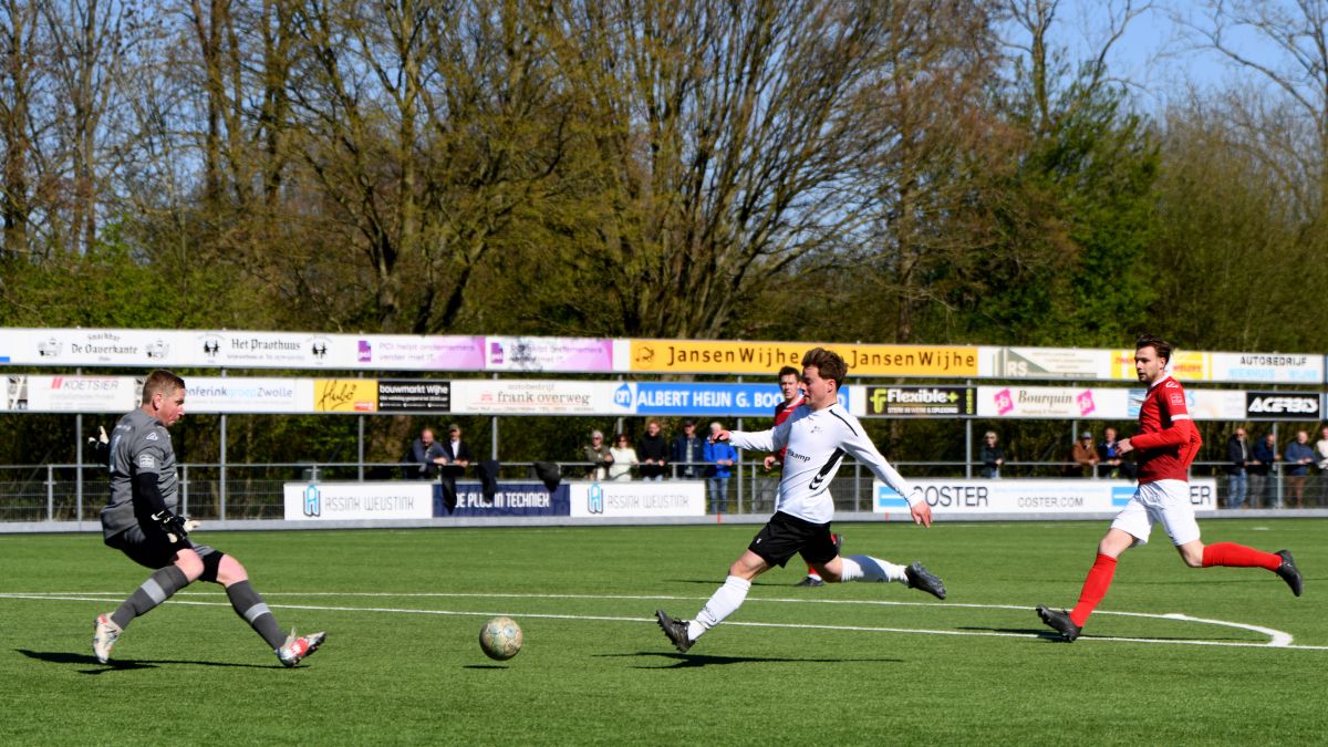 Al het harde werk van de afgelopen 72 minuten wordt een minuut later alweer bijna ongedaan gemaakt als Wijhe een bal op de lat schiet. Witkampers komt hier echt goed weg. In de minuten die volgen gaat Wijhe proberen een slotofffensief te starten. Achterin gaat de thuisploeg uiteraard één op één spelen om voorin nog iets te kunnen forceren. Hierdoor worden de ruimtes onvermijdelijk natuurlijk groter. Hier profiteert Witkampers optimaal van. Met een uittrap van Joost Pakkert wordt Rowan Brummelman weggestuurd in de diepte. Zijn inzet eindigt nog op de keeper, in de rebound stift Colin Stegeman de bal heel beheerst over de keeper, 0-2 en de beslissing lijkt gevallen. Opnieuw vlagt de grensrechter voor buitenspel, maar opnieuw neemt de scheidsrechter deze beslissing niet over. Ook in dit geval lijkt het correct. De lange bal die bij Rowan terecht kwam werd door één van de Wijhe verdedigers nog aangeraakt. In het restant van de wedstrijd komt Wijhe niet meer tot grote kansen en Witkampers kan de wedstrijd rustig uitspelen. Volgende week zondag speelt Witkampers weer een thuiswedstrijd, tegen Reunie.