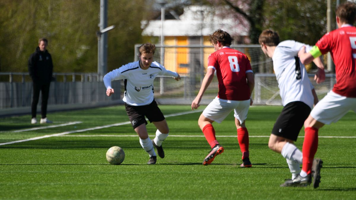 Door deze hierboven beschreven omstandigheden is het best te snappen dat beide teams afwachtend en voorzichtig aan de wedstrijd beginnen. Witkampers is optisch wat sterker, zonder enorm dominant te zijn. Wijhe probeert met name via de lange bal gevaarlijk te worden. Het lukt Witkampers in de eerste helft een paar keer om via de grond in de buurt van het doel van de Wijhe doelman te komen. De grootste Larense kans in de eerste helft is een kopbal van Daan Hento, maar helaas gaat zijn poging naast. Wijhe zet hier niet heel veel tegenover. Net voor rust komt Witkampers met de schrik vrij als een schot vanaf de rand van het zestienmetergebied net naast gaat.